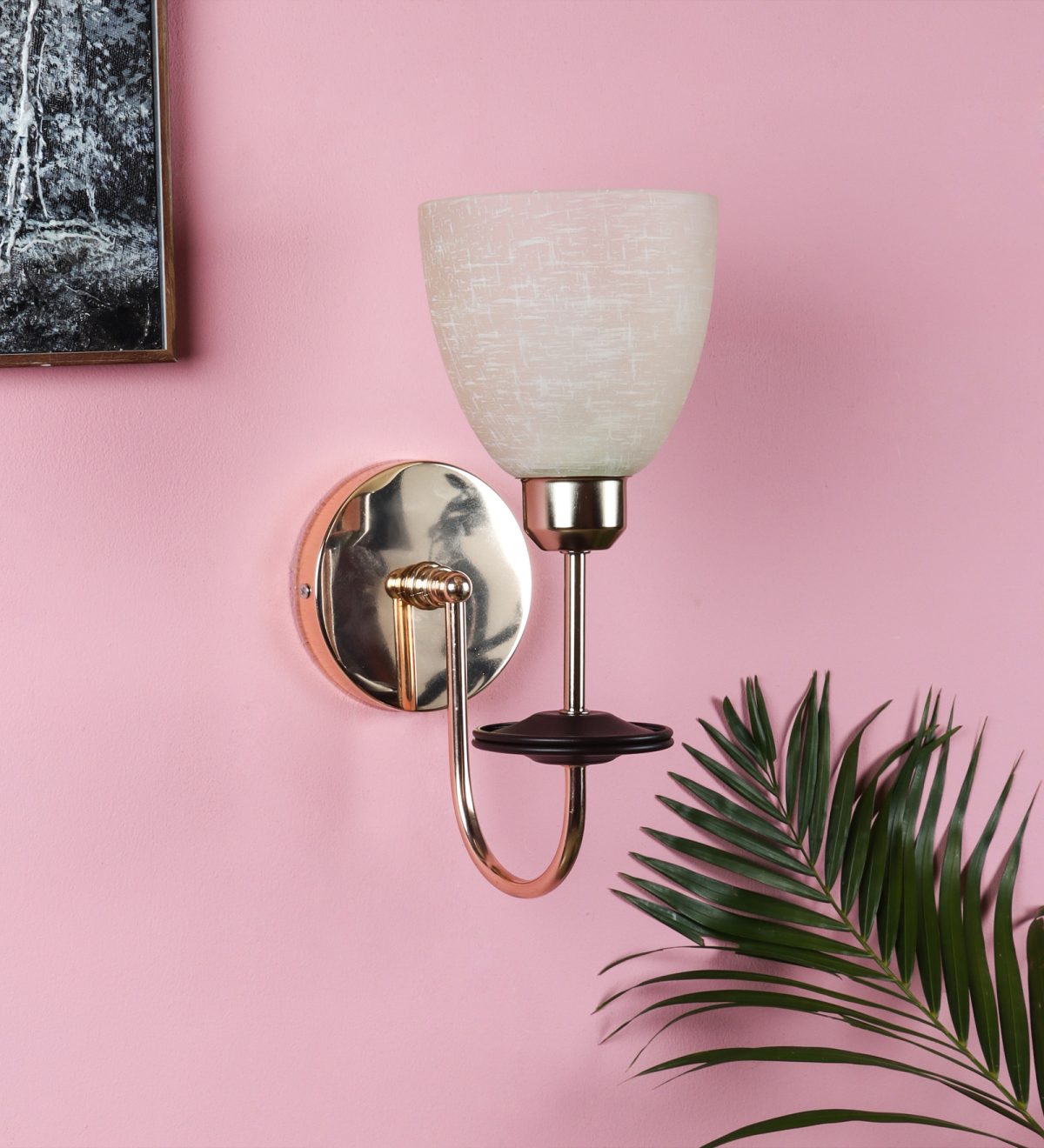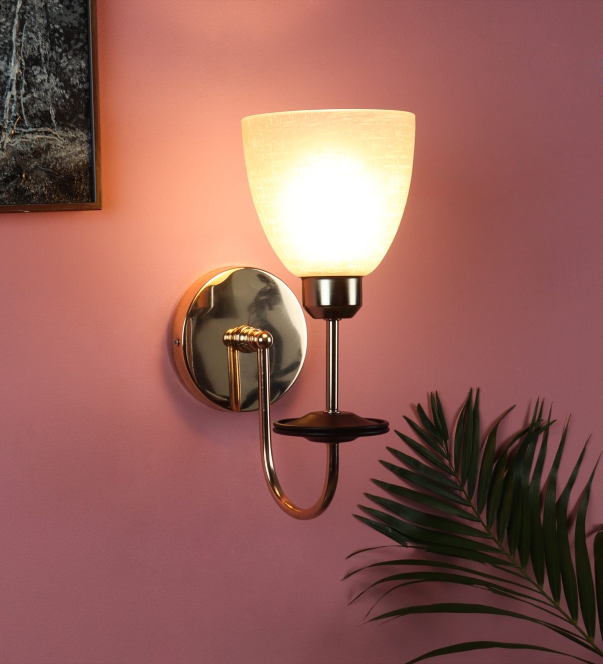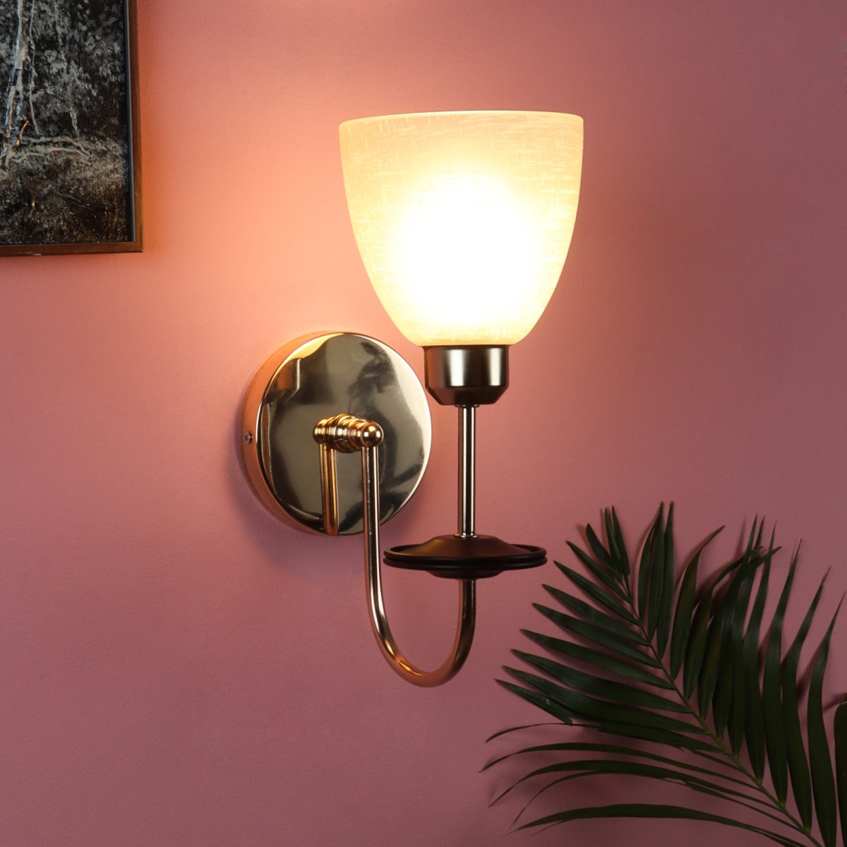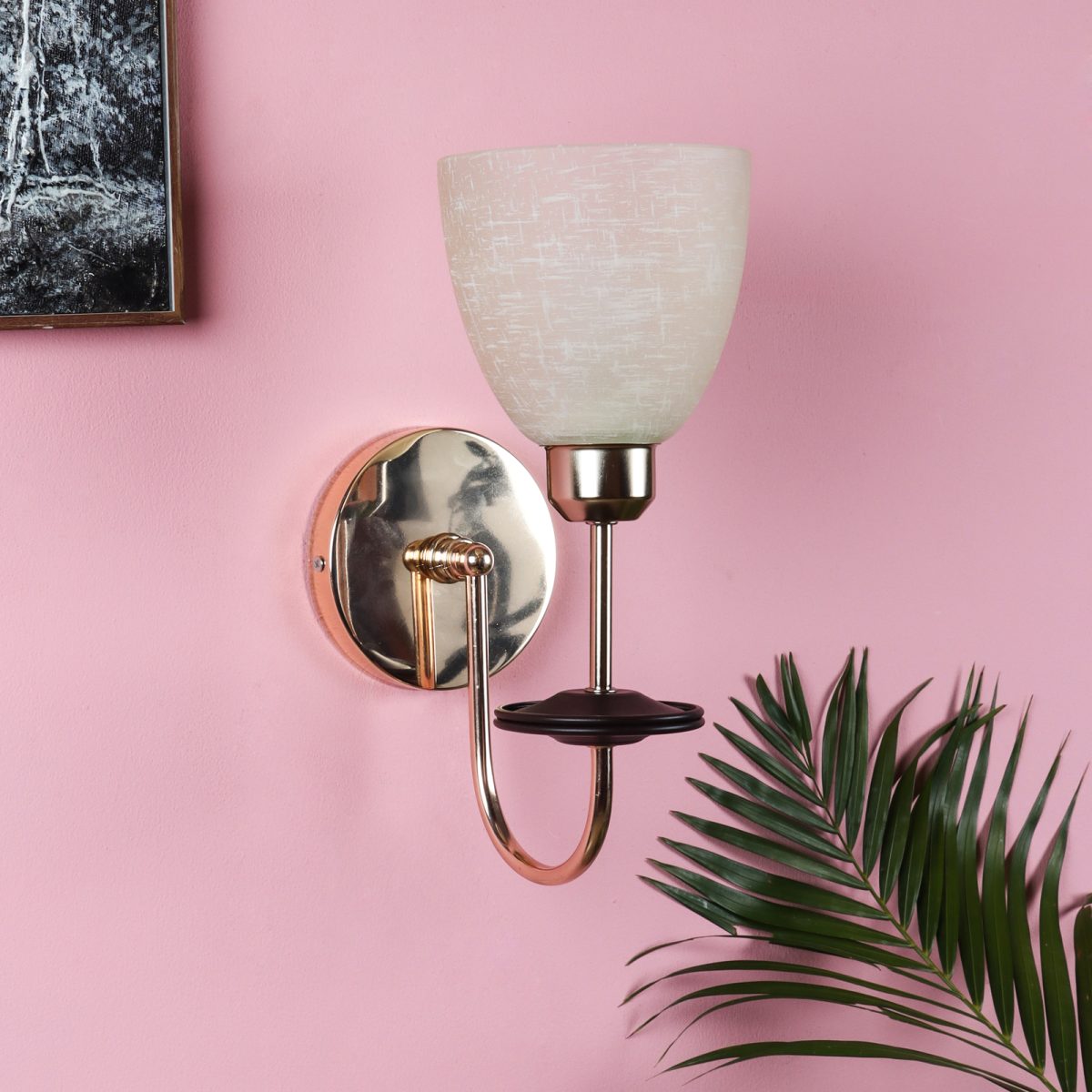 Gold modern, mild steel single wall light in white textured glass. It is maintenance free, comes with an E27 holder, only the change of lamp is required, which is available locally everywhere. Matching double wall light code – WL2714. Application includes both residential and commercial premises wherever it matches with your interiors. Can be customized as per requirement in case of bulk quantities. LAMP NOT INCLUDED.