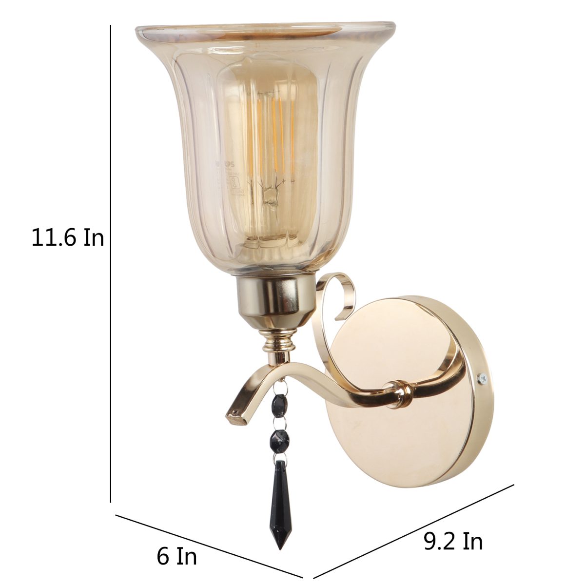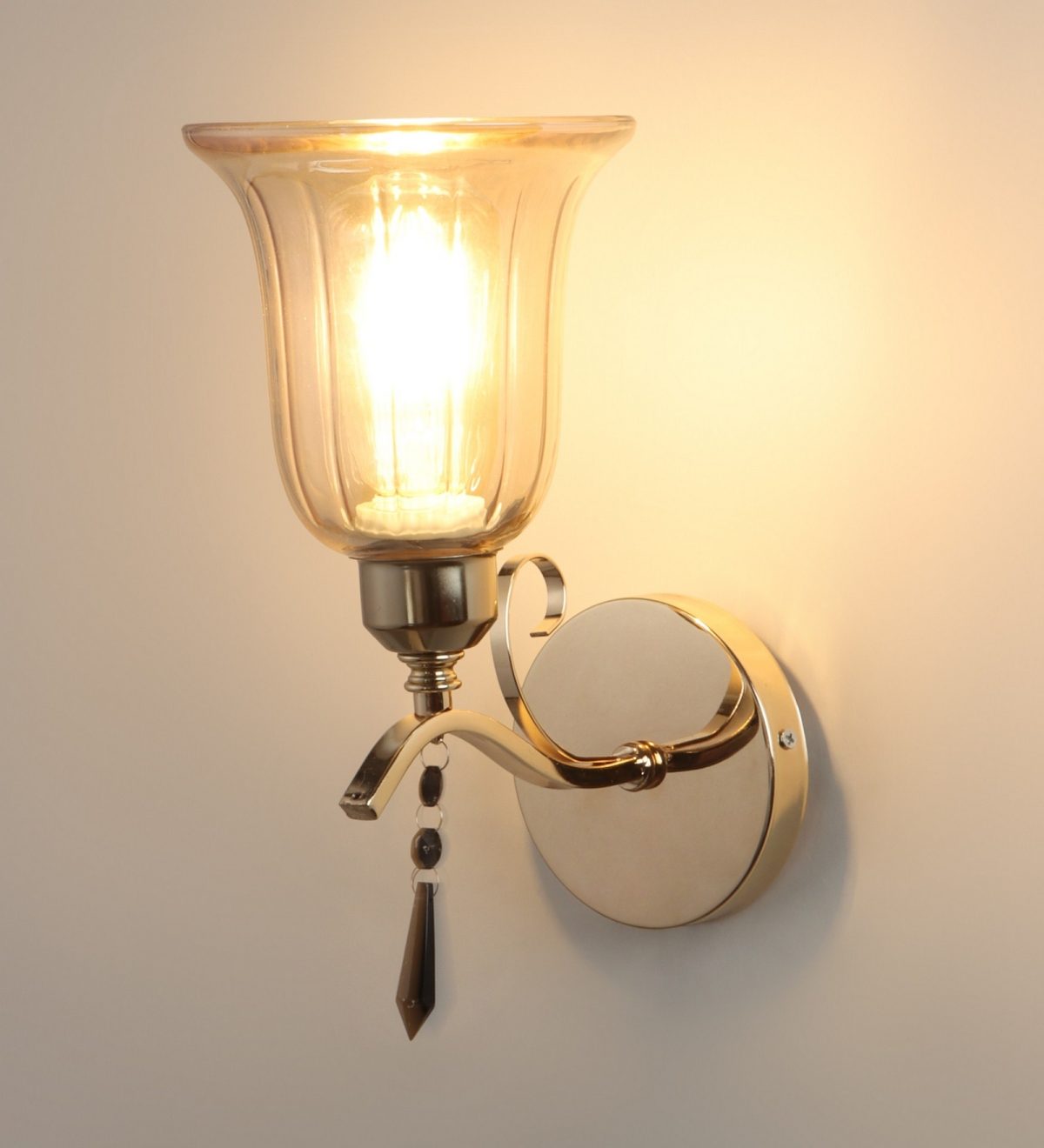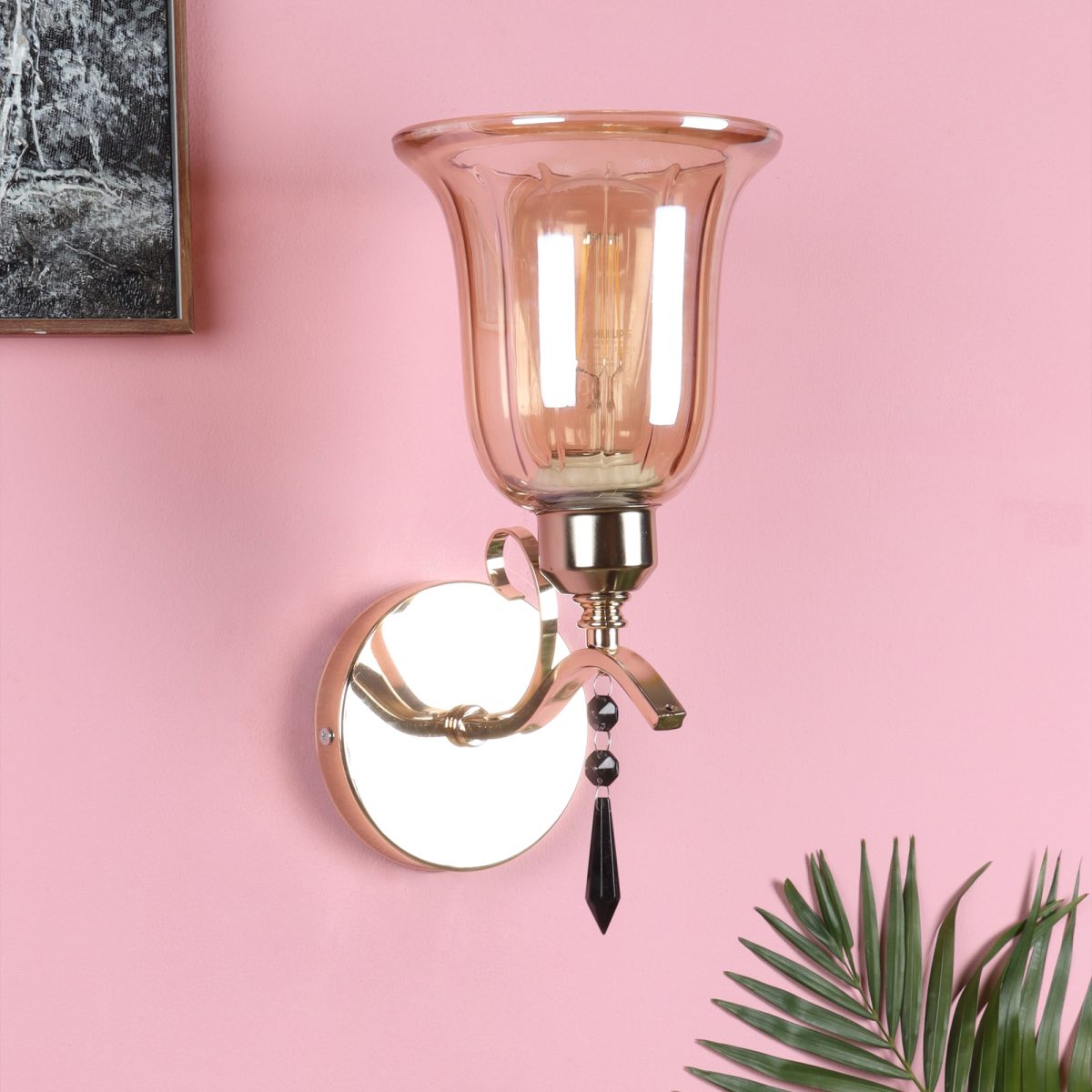 Gold finish, modern, mild steel single wall light in Champaign colored glass. It is maintenance free, comes with an E27 holder, only the change of lamp is required, which is available locally everywhere. LED filament lamp is recommended to enhance its beauty. Matching double wall light code – WL2718. Application includes both residential and commercial premises wherever it matches with your interiors. Can be customized as per requirement in case of bulk quantities. LAMP NOT INCLUDED.