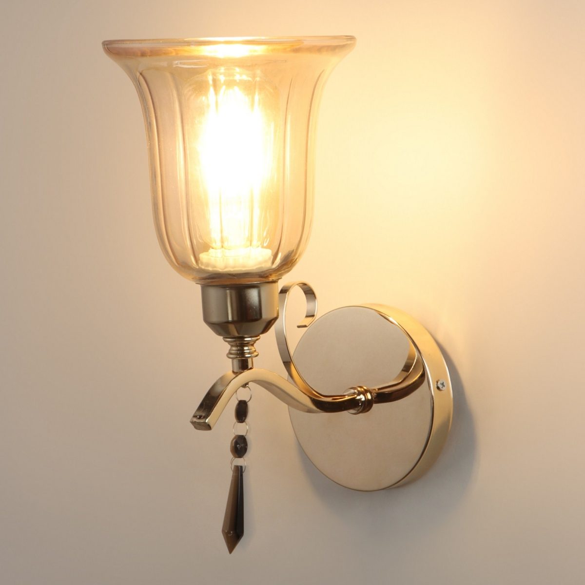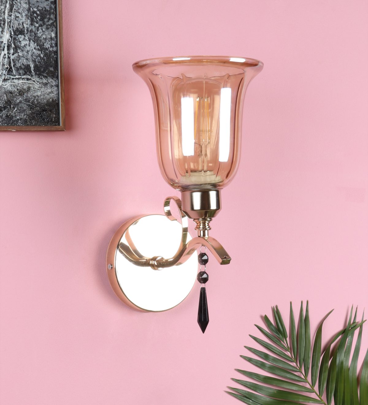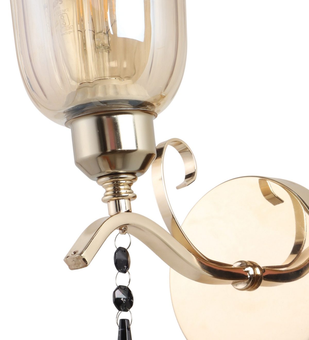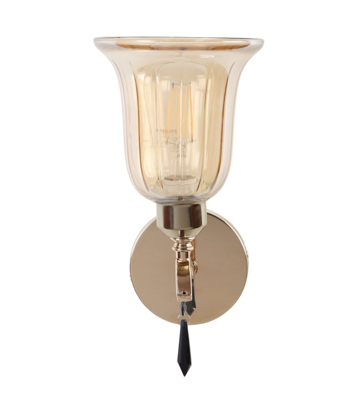 Gold finish, modern, mild steel single wall light in Champaign colored glass. It is maintenance free, comes with an E27 holder, only the change of lamp is required, which is available locally everywhere. LED filament lamp is recommended to enhance its beauty. Matching double wall light code – WL2718. Application includes both residential and commercial premises wherever it matches with your interiors. Can be customized as per requirement in case of bulk quantities. LAMP NOT INCLUDED.