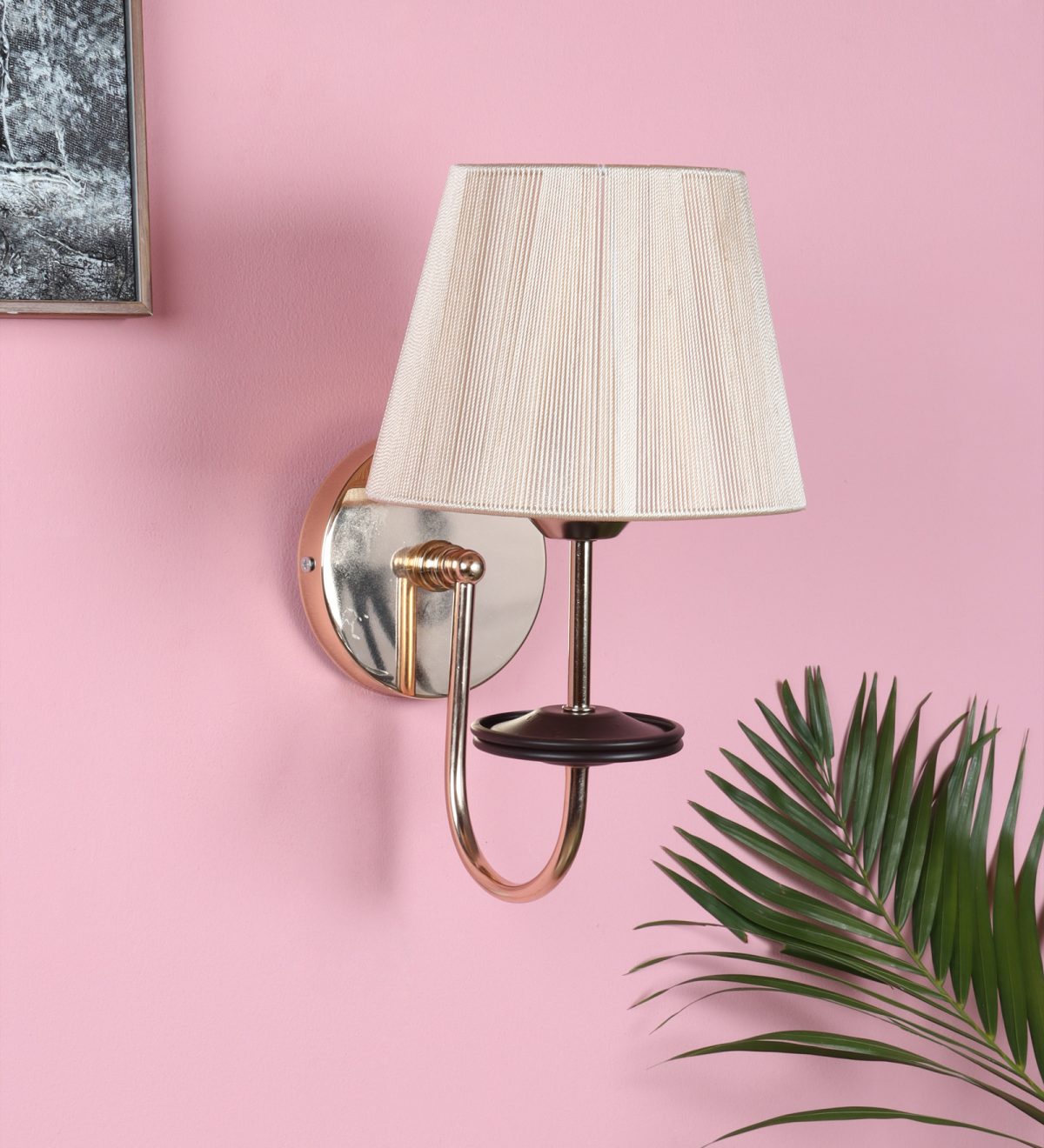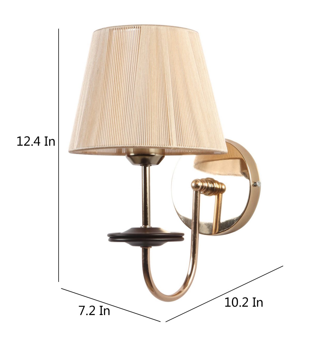 Gold finish modern single wall light with taper off white fabric shade. It is maintenance free, comes with an E27 holder, only the change of lamp is required, which is available locally everywhere. Application includes both residential and commercial premises wherever it matches with your interiors. It is ideal for installing on both sides of the bed at a low height. Ideal for hotel or guest rooms.Matching double wall light code – WL2720. LAMP NOT INCLUDED.