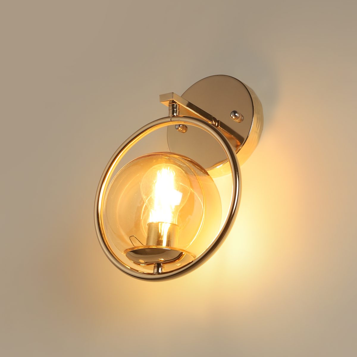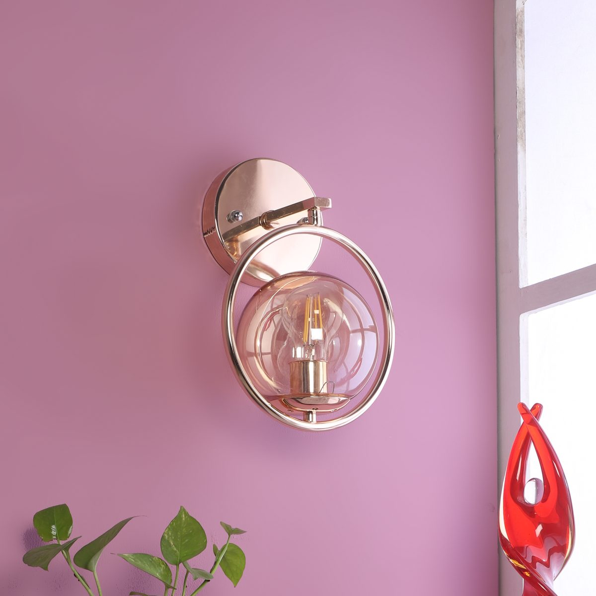 Gold finish single wall light with small round globe (doom) type Champaign coloured glass . It is maintenance free, easy to remove glass and wash it. Comes with an E27 holder, only the change of lamp is required, which is available locally everywhere. Application includes both residential and commercial premises wherever it matches with your interiors.Can be customized as per requirement in case of bulk quantities. Lamp not included.