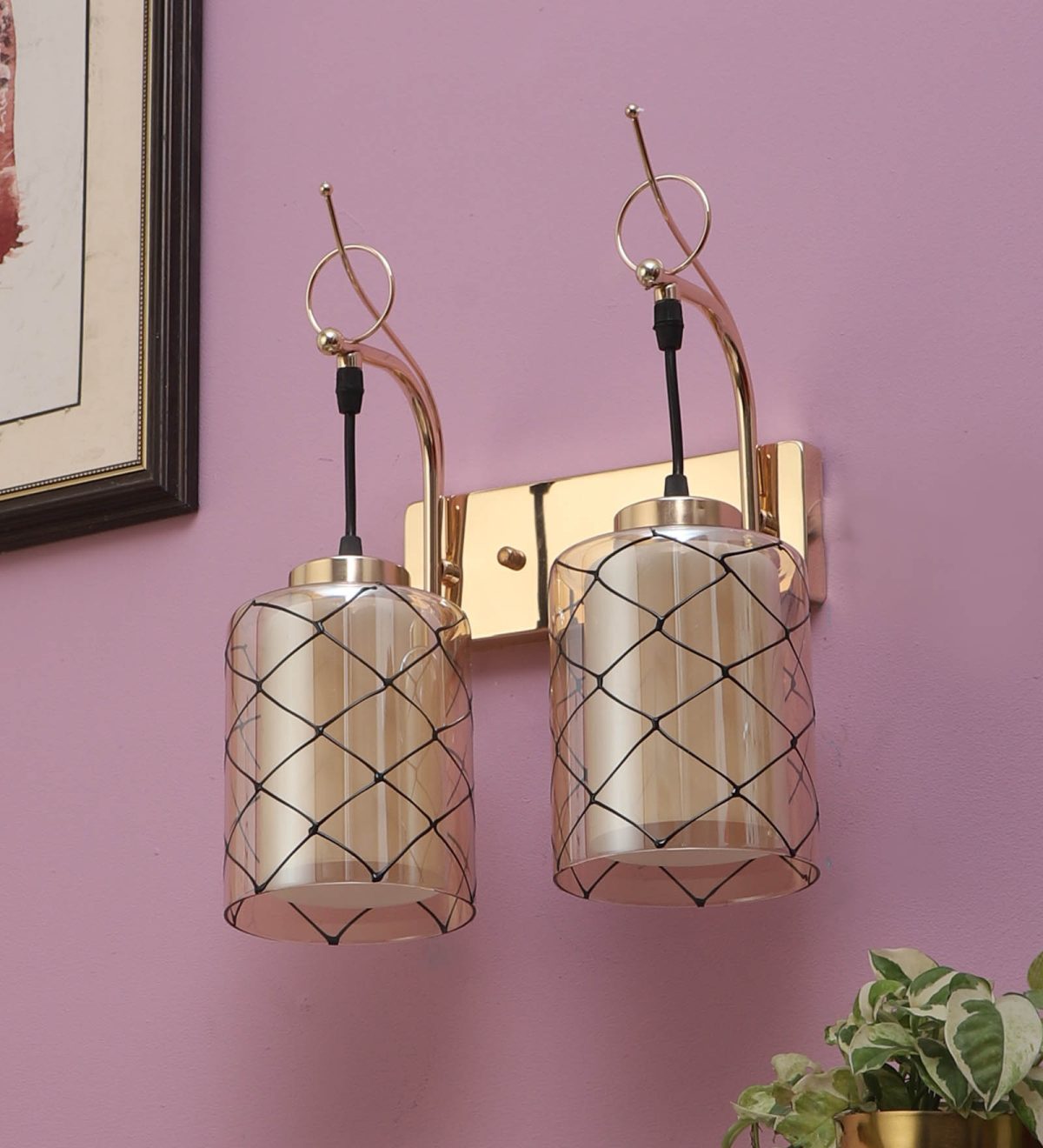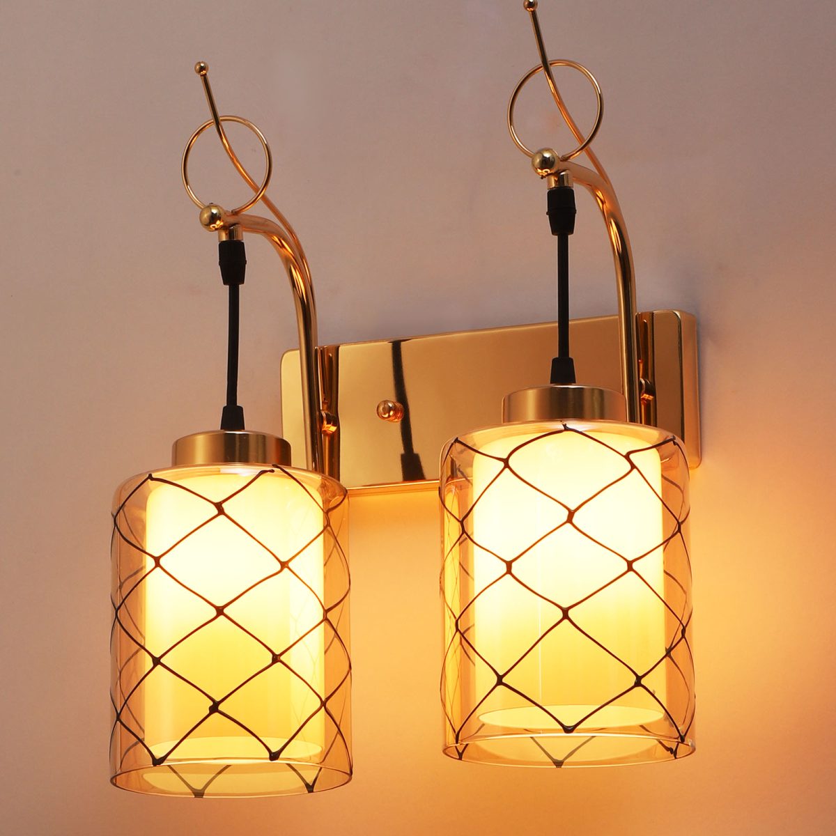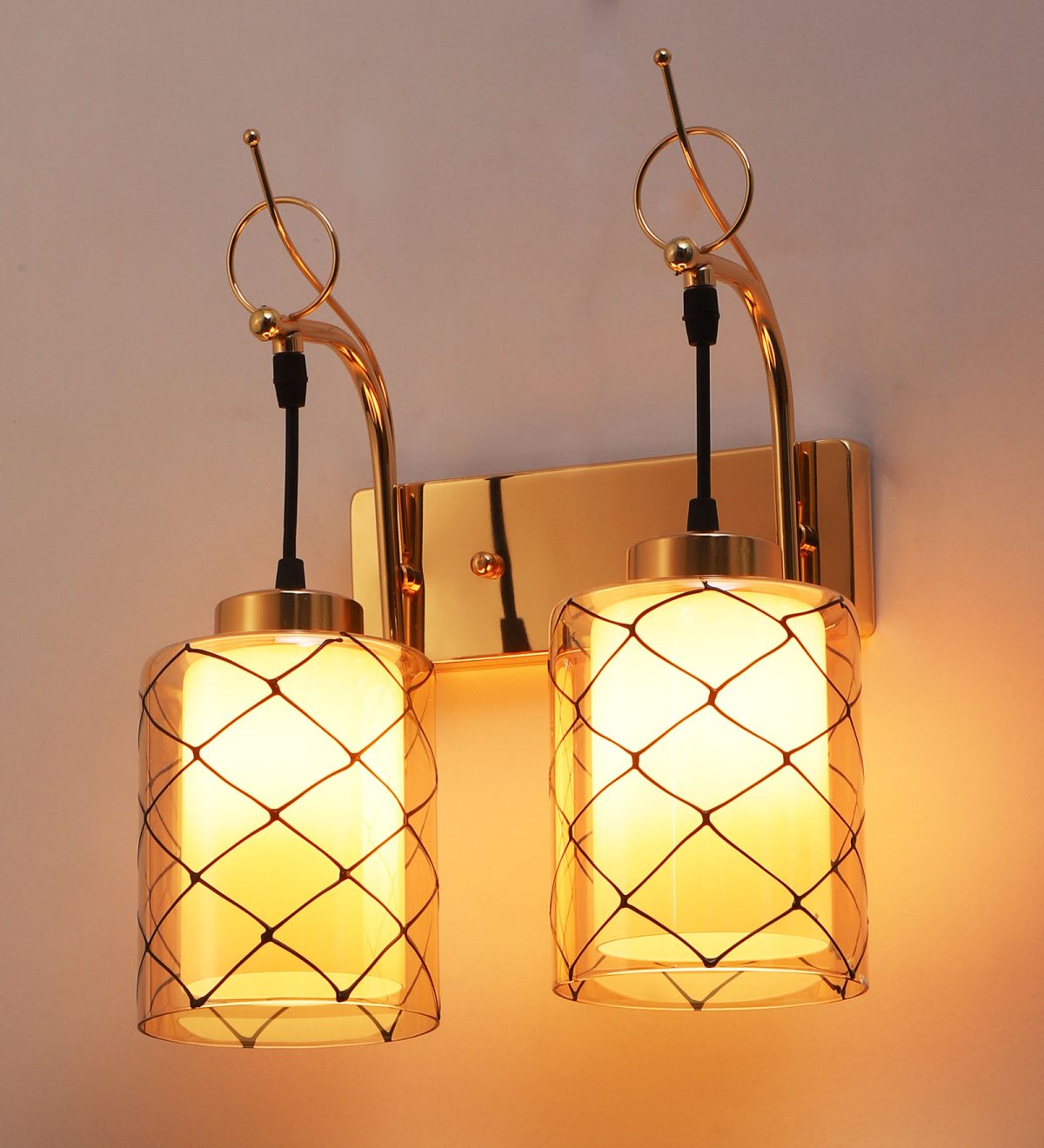 Gold finish double wall light. Can be customized as per requirement. LAMP NOT INCLUDED.