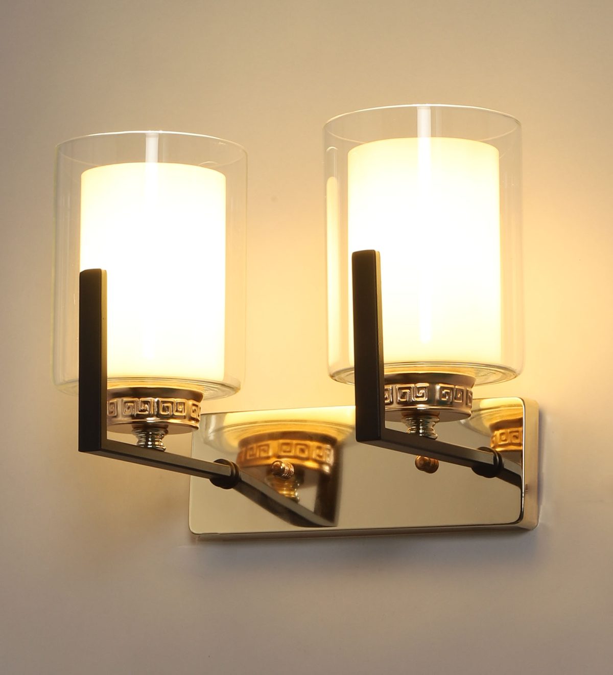 Gold and brown finish double wall light. Can be customized as per requirement. LAMP NOT INCLUDED.