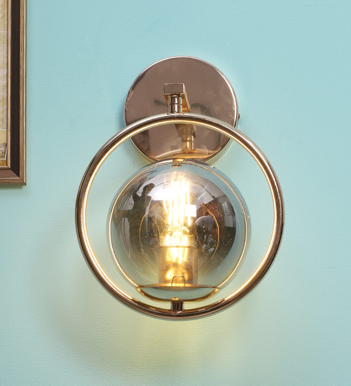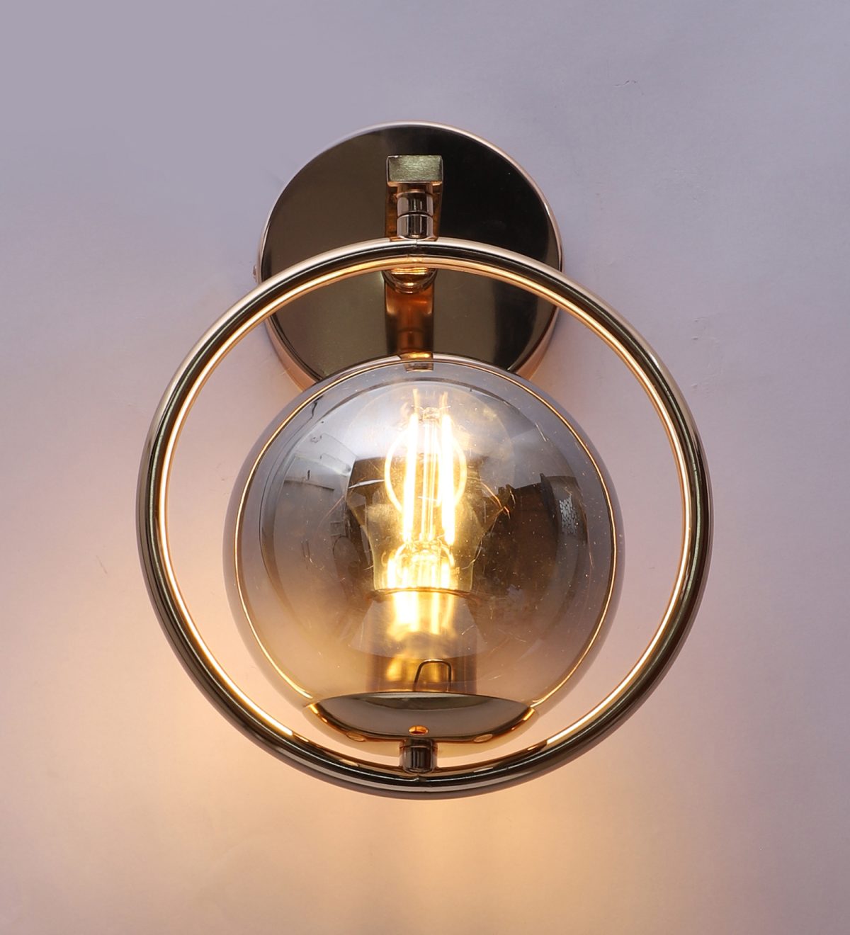 Gold finish single wall light with smoky doom glass . It is maintenance free, easy to remove glass and wash it. Comes with an E27 holder, only the change of lamp is required, which is available locally everywhere. Application includes both residential and commercial premises wherever it matches with your interiors.Can be customized as per requirement in case of bulk quantities. Lamp not included.