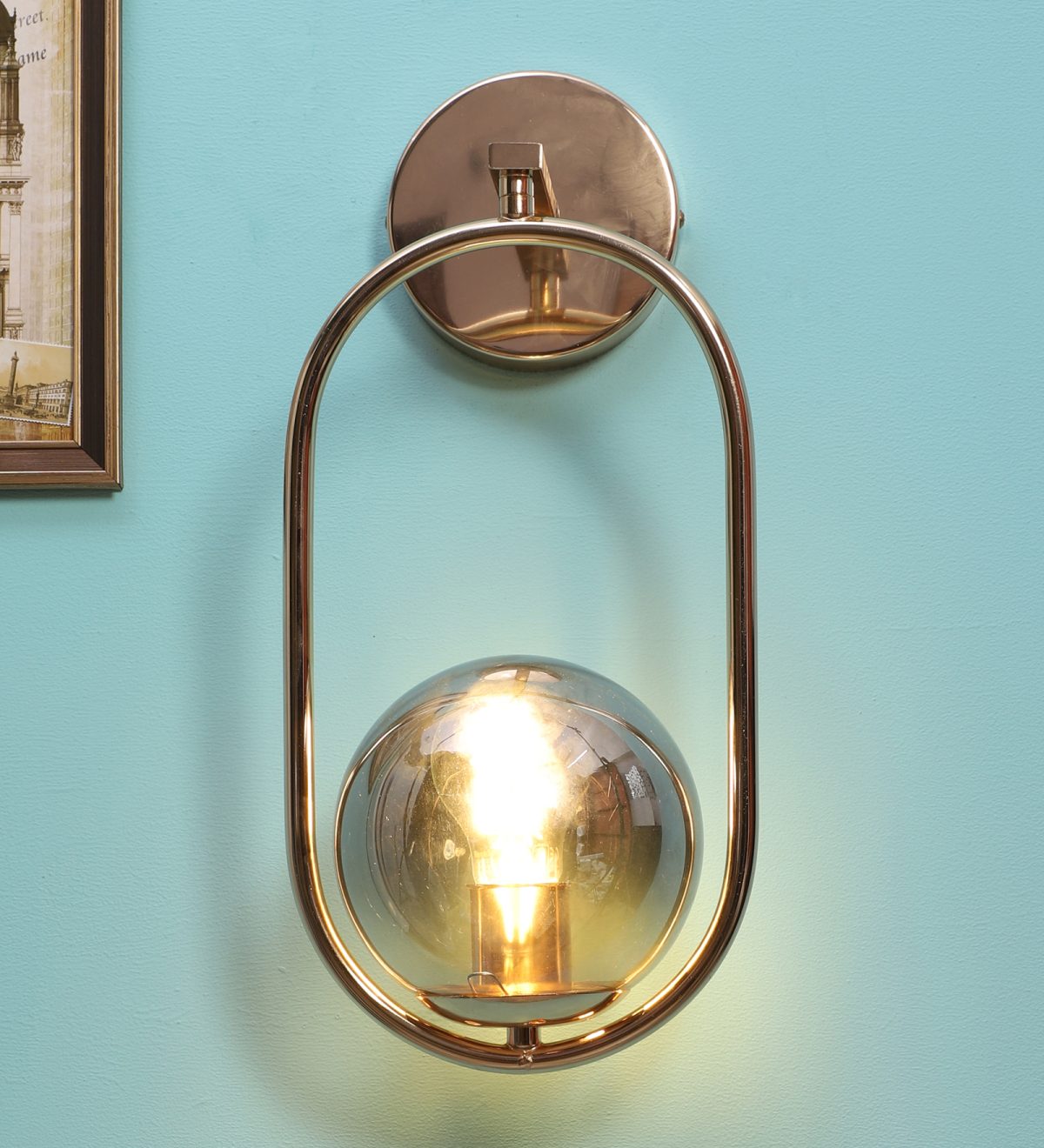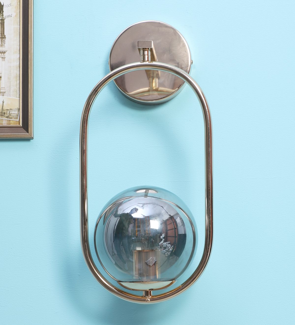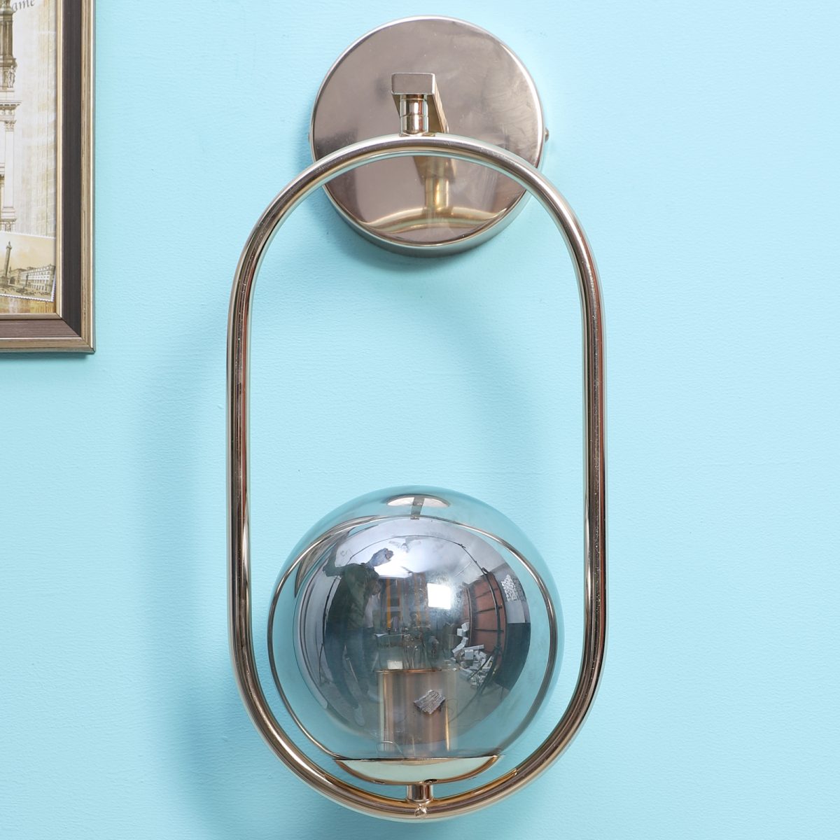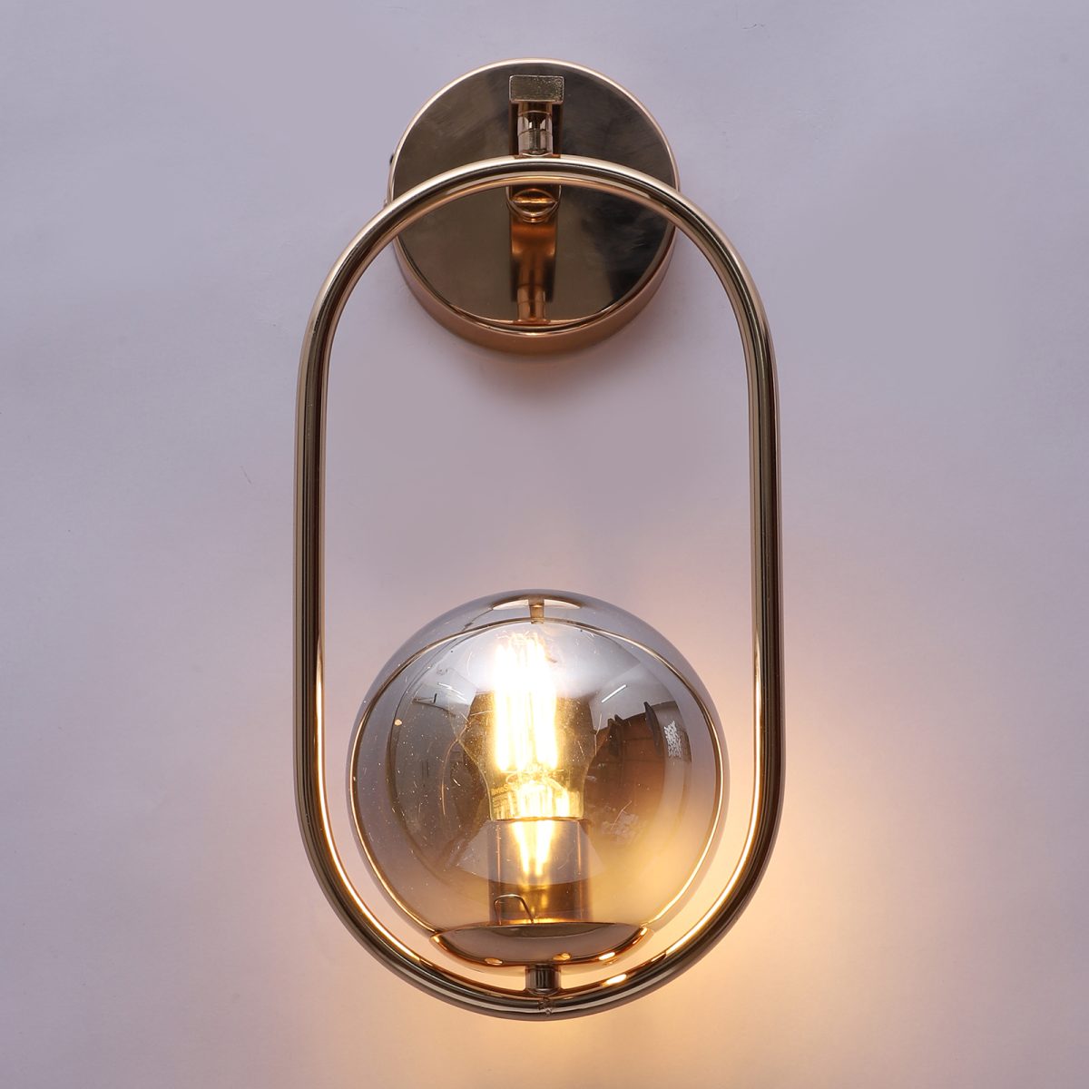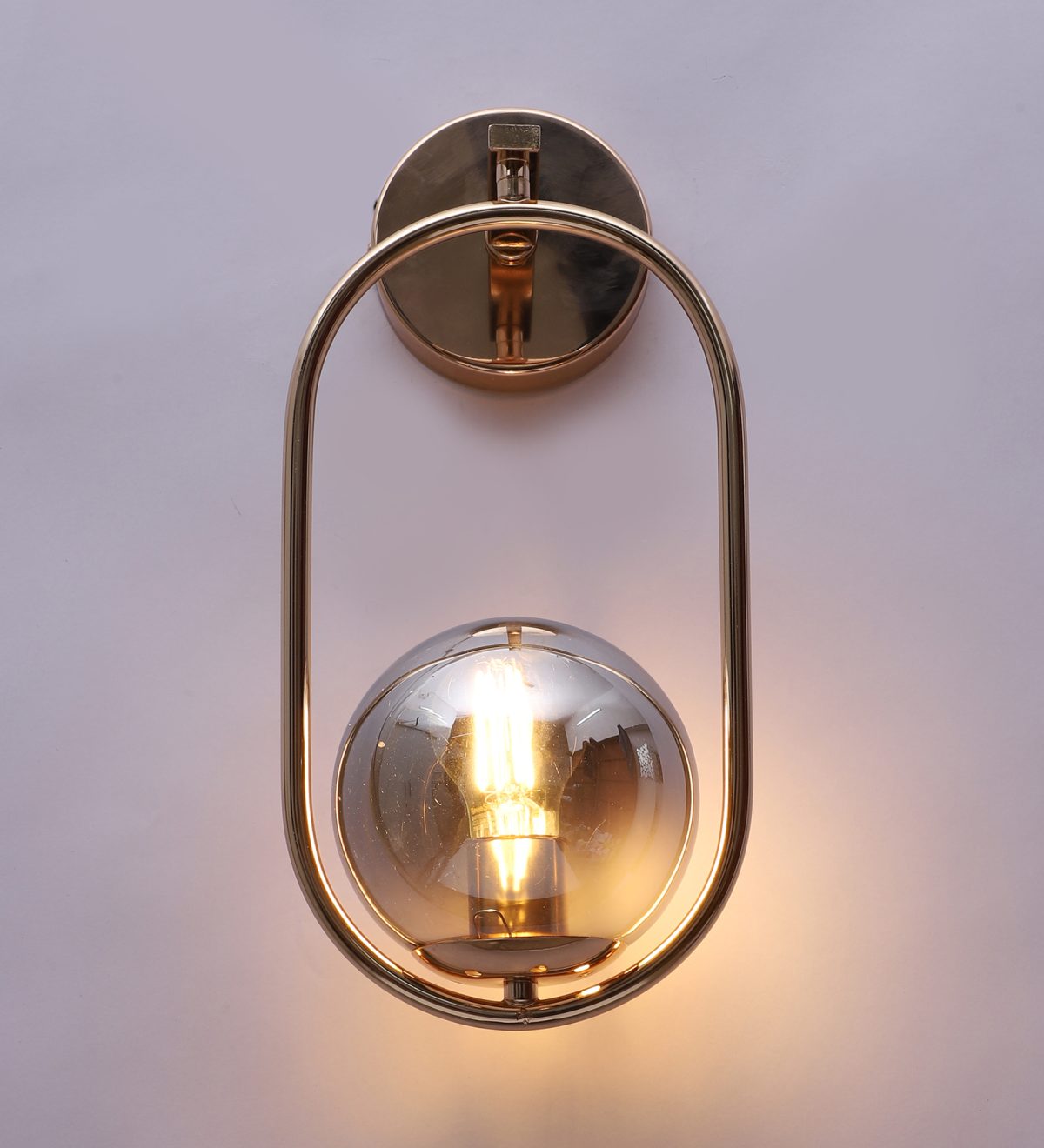 Gold finish single wall light with smoky doom glass . It is maintenance free, easy to remove glass and wash it. Comes with an E27 holder, only the change of lamp is required, which is available locally everywhere. Application includes both residential and commercial premises wherever it matches with your interiors.Can be customized as per requirement in case of bulk quantities. Lamp not included.
