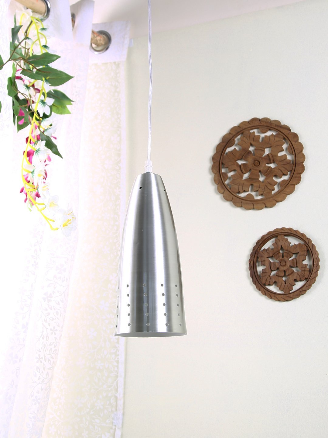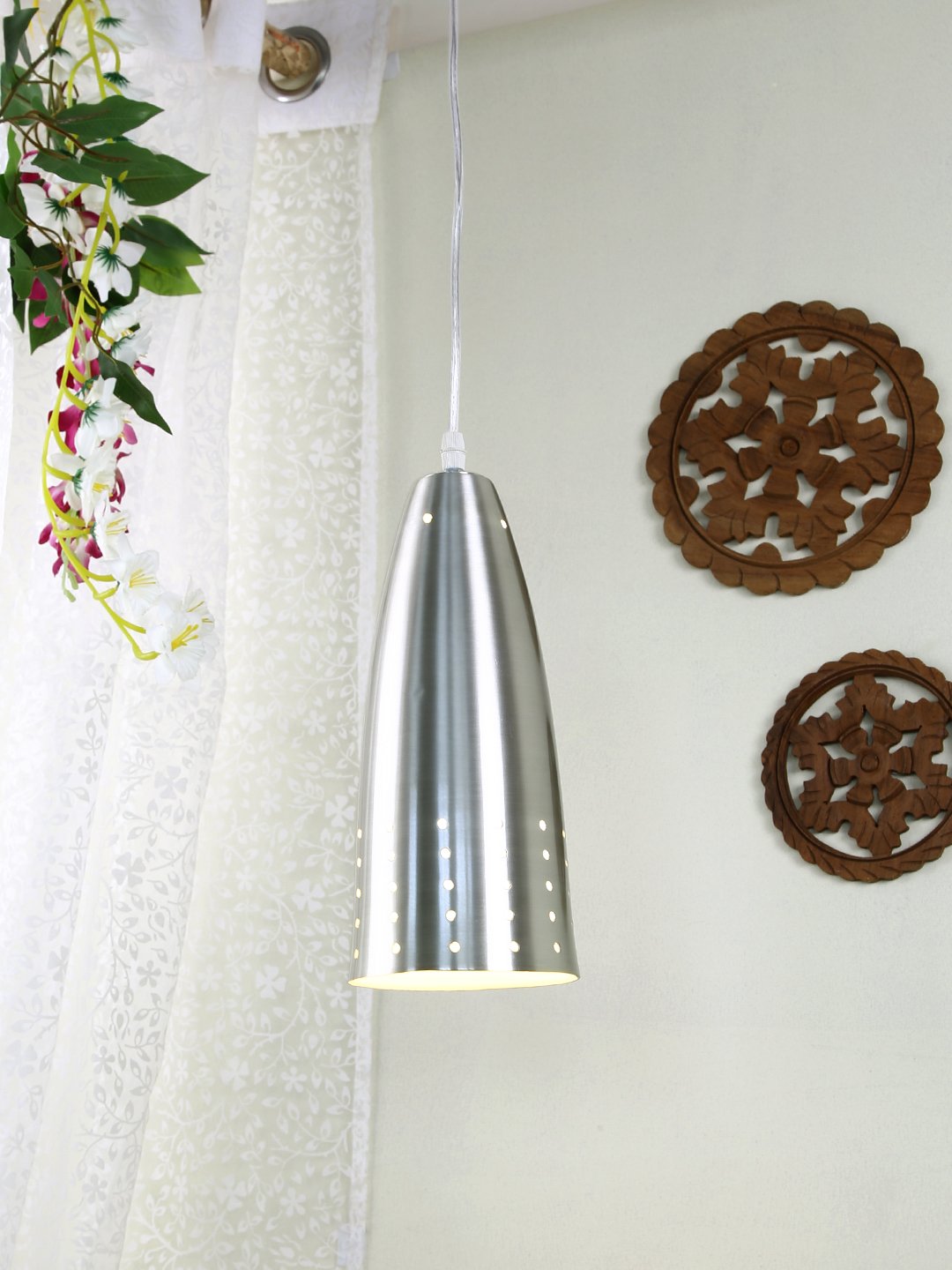 Silver (satin nickel) – white finish,modern aluminium single hanging light. The suspension can be adjusted at time of installation to the desired height. It is maintenance free, comes with an E27 holder, only the change of lamp is required, which is available locally everywhere. Application includes both residential and commercial premises wherever it matches with your interiors. Can be customized as per requirement in case of bulk quantities. Lamp not included.