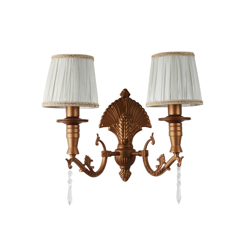 Antique brass, finish double wall light with taper fabric shade off white made of mild steel. It is maintenance free. Comes with an E27 holder, only the change of lamp is required, which is available locally everywhere. Application includes both residential and commercial premises wherever it matches with your interiors. Matching single wall light code – WL2443. Can be customized as per requirement in case of bulk quantities. Lamp not included.