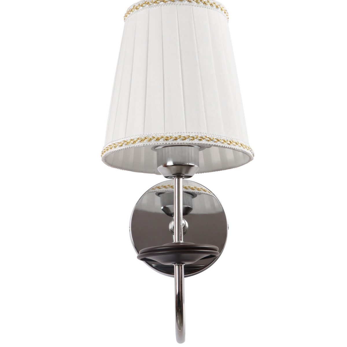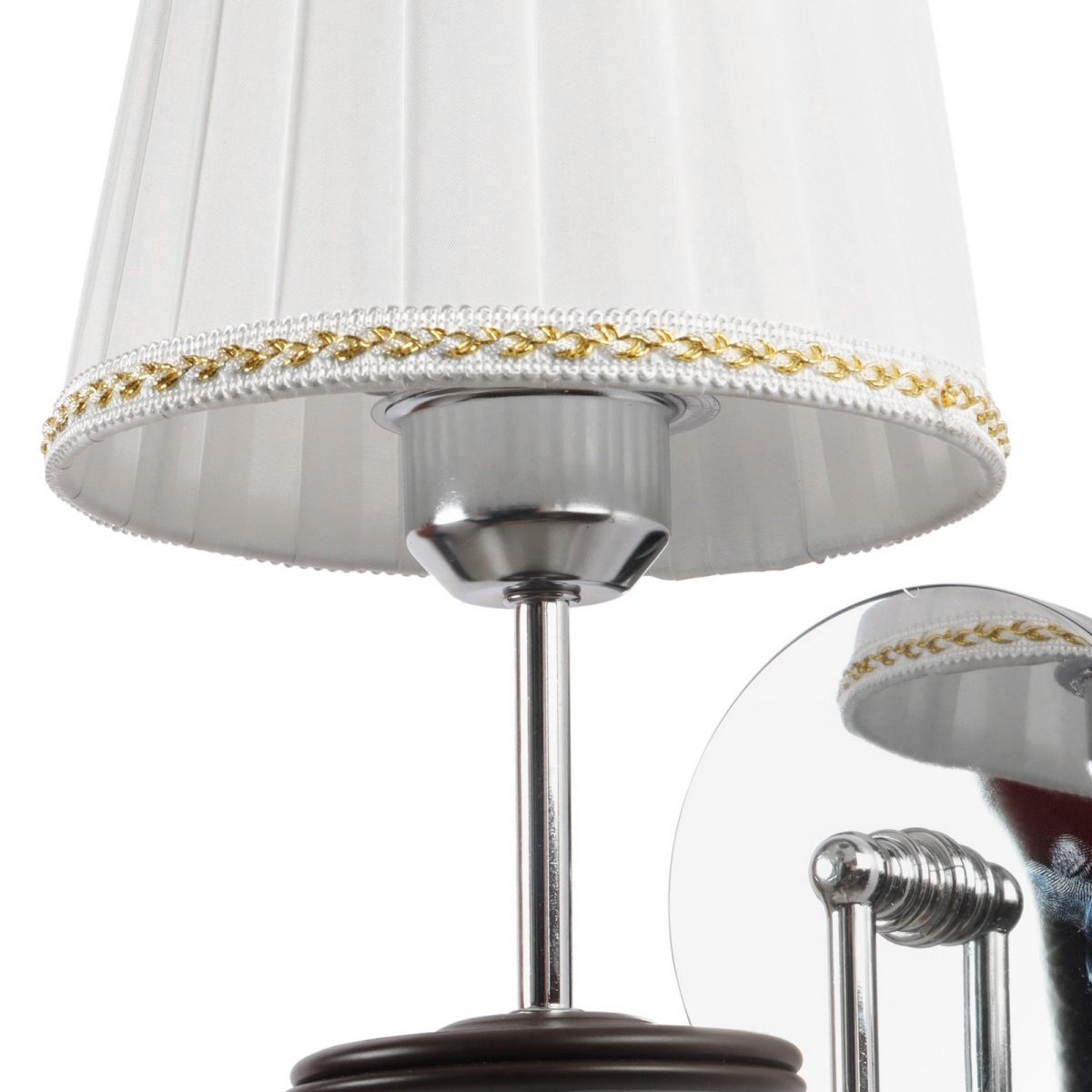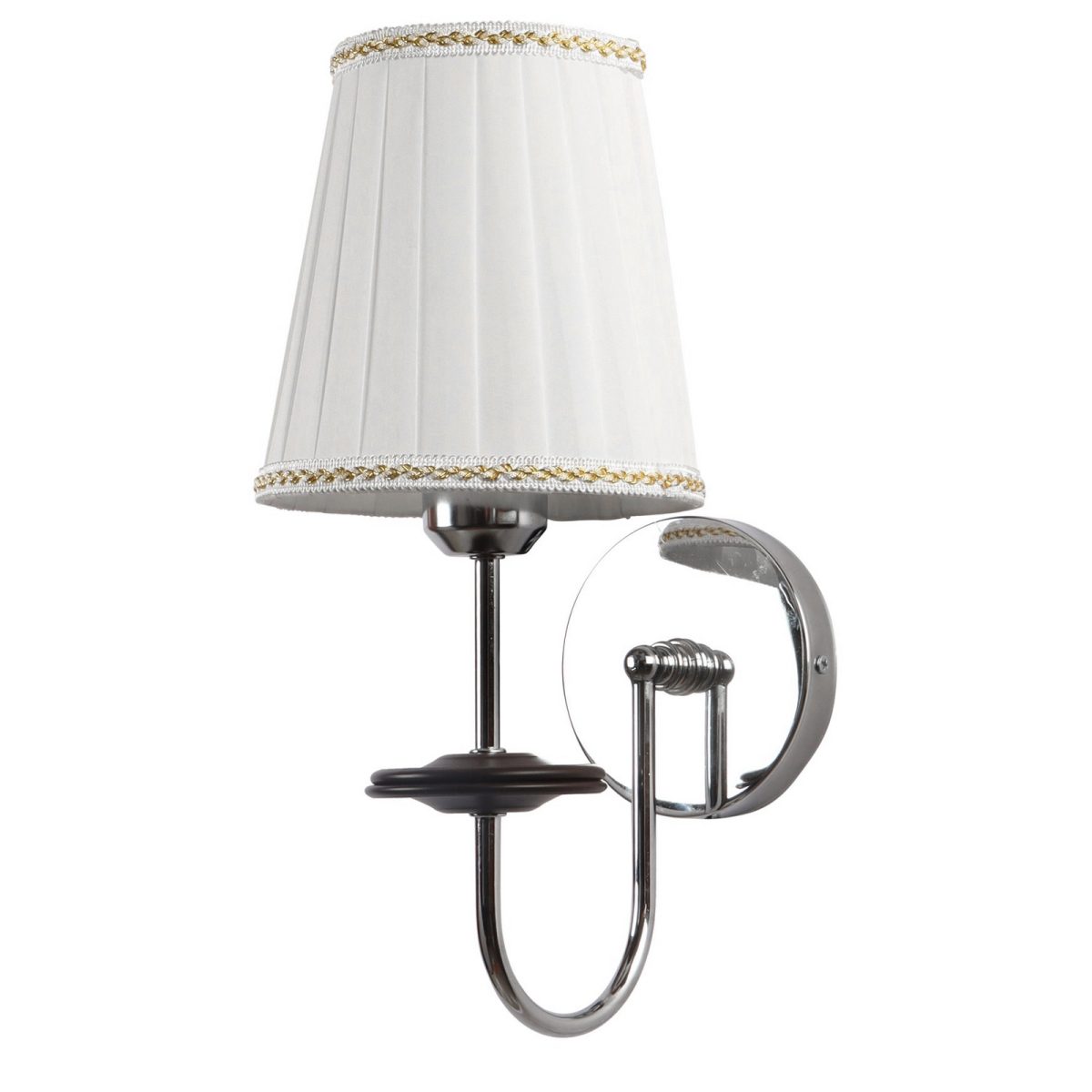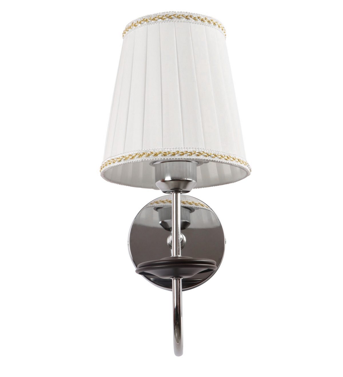 Silver (chrome) finish single wall light with taper off white fabric shade. It is maintenance free, comes with an E27 holder, only the change of lamp is required, which is available locally everywhere. Application includes both residential and commercial premises wherever it matches with your interiors. It is ideal for installing on both sides of the bed at a low height. Ideal for hotel or guest rooms.Matching double wall light code – WL2682. LAMP NOT INCLUDED.