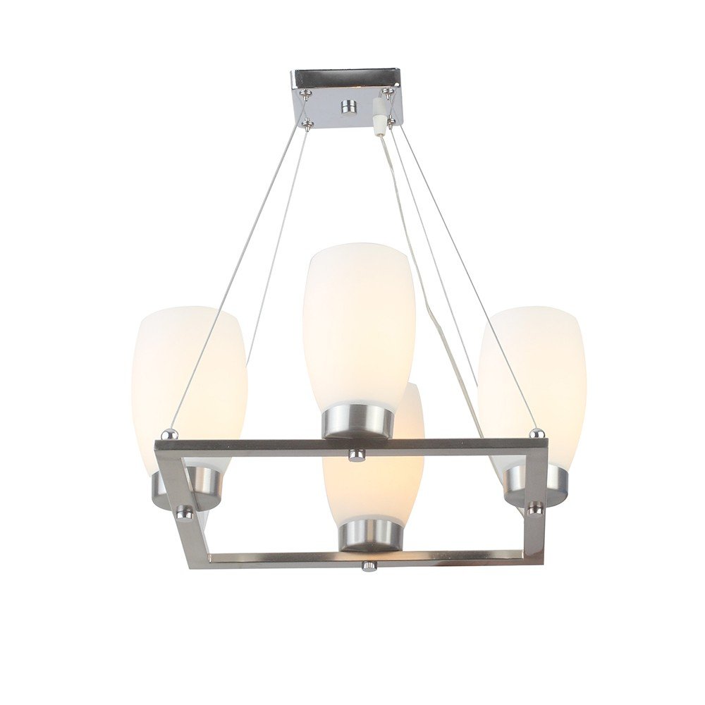 Silver (satin nickel) finish, modern taper long glass mounted on a mild steel square ring having four lamps made of mild steel and glass. It is one of the regular design which is never out of trend. The suspension can be adjusted at time of installation to the desired height. It is maintenance free, easy to remove glass and wash them, comes with an E27 holder, only the change of lamp is required, which is available locally everywhere. Application includes both residential and commercial premises wherever it matches with your interiors. Also available in Dark brown (wood) finish with code HL4060. Lamp not included.