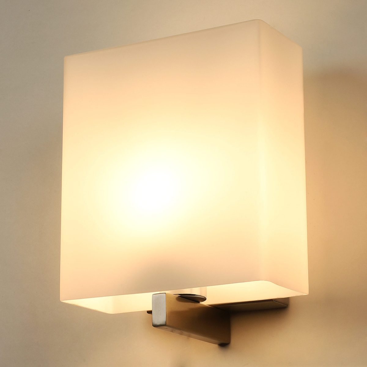 Modern silver (satin nickel) single wall light made of mild steel, with a big square white glass. It is maintenance free, glass is open from both the sides that prevents any dust collection, easy to remove glass and wash it, comes with an E27 holder, only the change of lamp is required, which is available locally everywhere. You can of course swap out the bulb for one that is dimmable, has a higher light output or a different color temperature. Application includes both residential and commercial premises wherever it matches with your interiors. Also available in antique brass finish with code WL1528. Can be customized as per requirement in case of bulk quantities. It is one of the top selling product in our catalogue. Lamp not included.