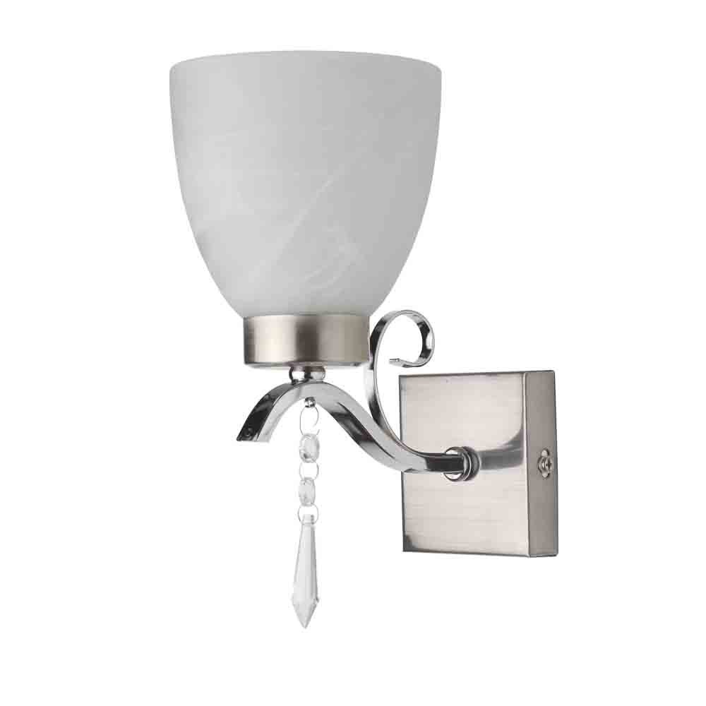 Modern silver (satin nickel,chrome) single wall light made of mild steel having crystals with a tapered heavy glass with self design which looks amazing when lit. It is maintenance free, easy to remove glass and wash it, comes with an E27 holder, only the change of lamp is required, which is available locally everywhere. You can of course swap out the bulb for one that is dimmable, has a higher light output or a different color temperature. Application includes both residential and commercial premises wherever it matches with your interiors. Matching double wall light code – WL1792. Can be customized as per requirement in case of bulk quantities. Lamp not included.