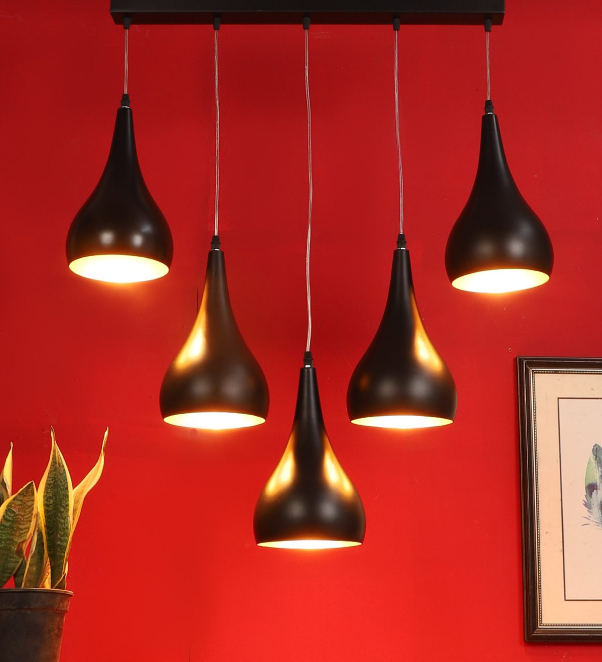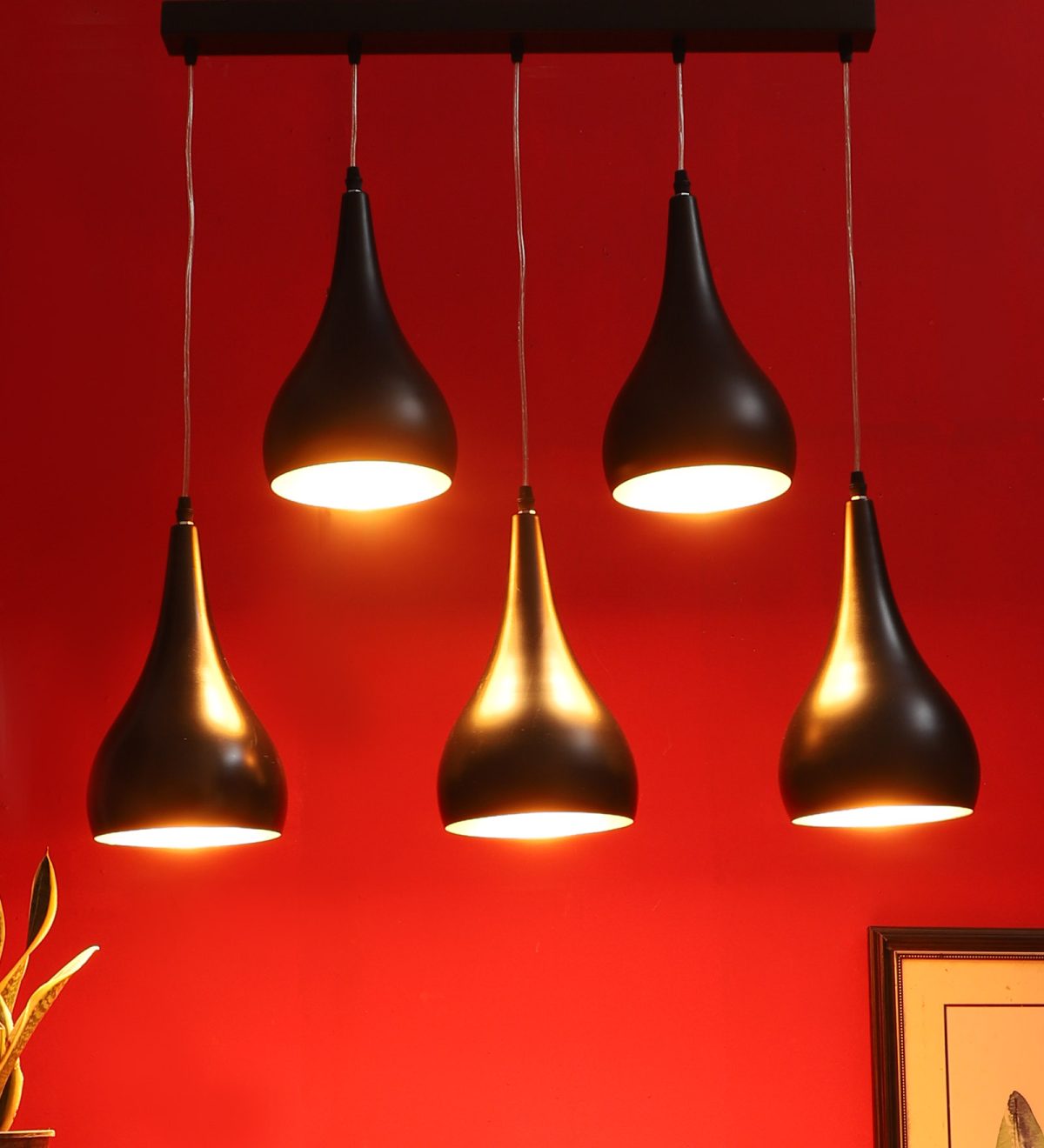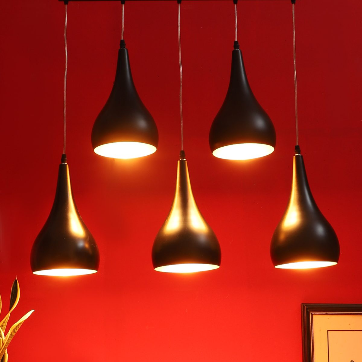 Rectangular hanging light with five lights. Can be customised as per requrement.. LAMP NOT INCLUDED.