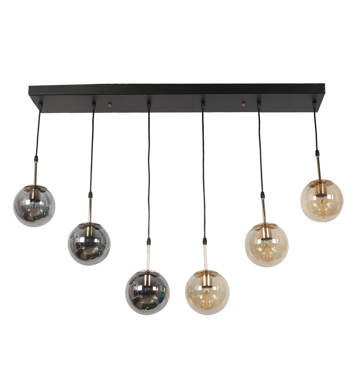 Rectangular hanging light having six lamps. Can be customised as per requirement in terms height, number of lamps, finish, shade colour. LAMPS NOT INCLUDED.