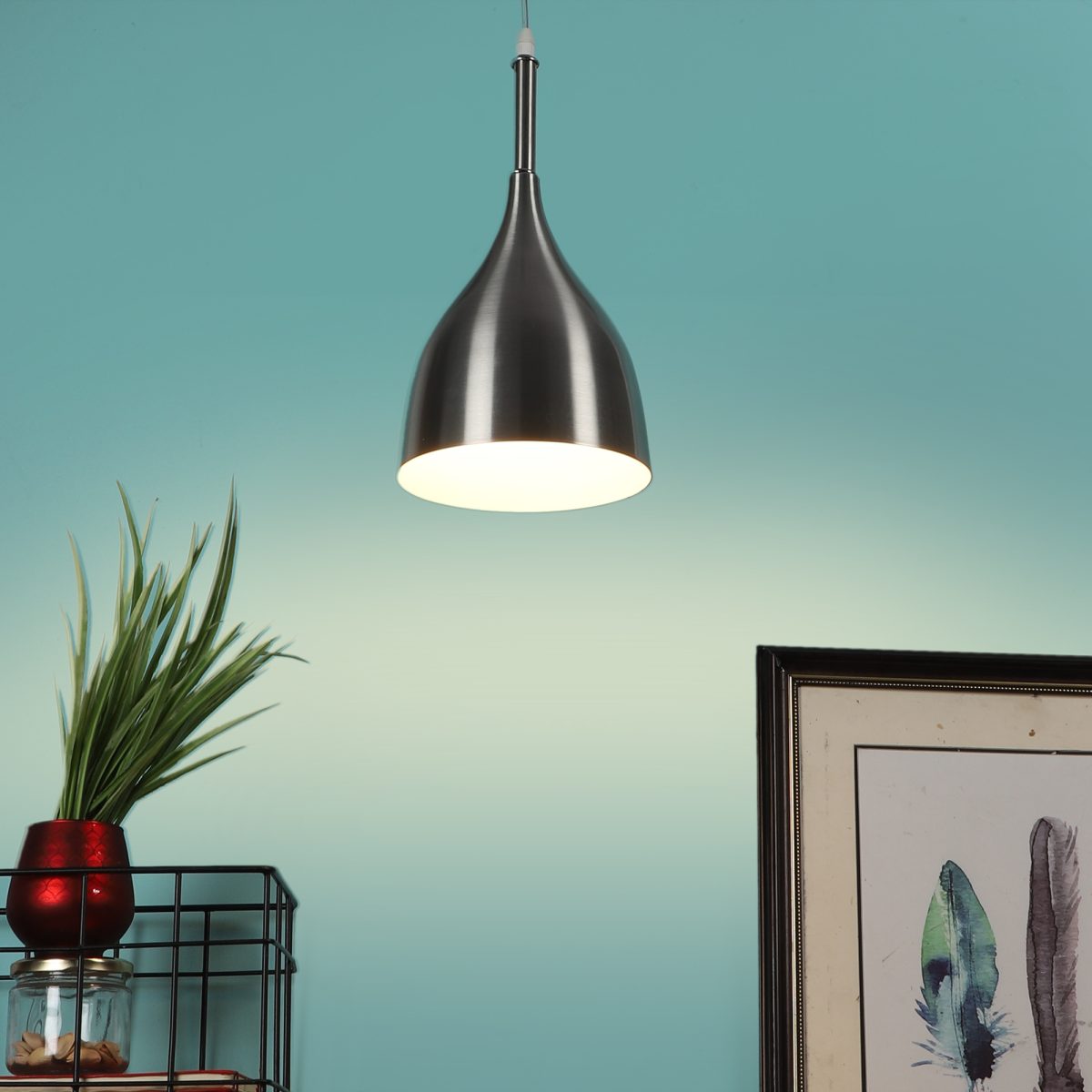 Silver (satin nickel) – white finish, modern aluminum single hanging light. The suspension can be adjusted at time of installation to the desired height. It is maintenance free, comes with an E27 holder, only the change of lamp is required, which is available locally everywhere. Codes of other color variations in the same design – HL3770, HL3771, HL3772, HL3773, HL3775, HL3898, HL3900, HL3901. Application includes both residential and commercial premises wherever it matches with your interiors. Can be customized as per requirement in case of bulk quantities. Lamp not included.