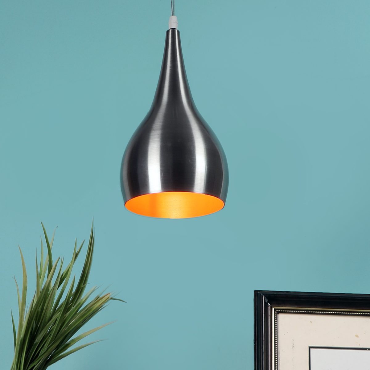 Silver (satin nickel) – orange finish, modern aluminum single hanging light. The suspension can be adjusted at time of installation to the desired height. It is maintenance free, comes with an E27 holder, only the change of lamp is required, which is available locally everywhere. This along with its variants are one of the best selling design in our catalogue. Application includes both residential and commercial premises wherever it matches with your interiors. Codes of other hanging variation in same design – HL3923-1, HL3923-3, HL3924-1, HL3924-3, HL3925-1, HL3925-3, HL3926-1, HL3926-3, HL3928-1, HL3928-3, HL3946-1, HL3947-1, HL3949-1, HL3949-3, HL4104. Can be customized as per requirement in case of bulk quantities. Lamp not included.