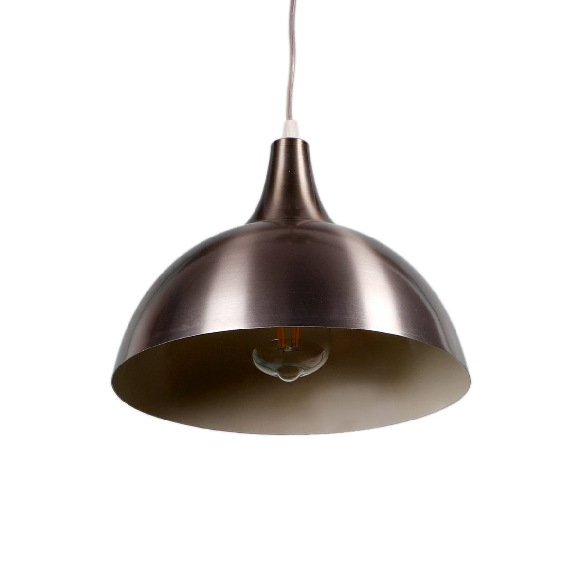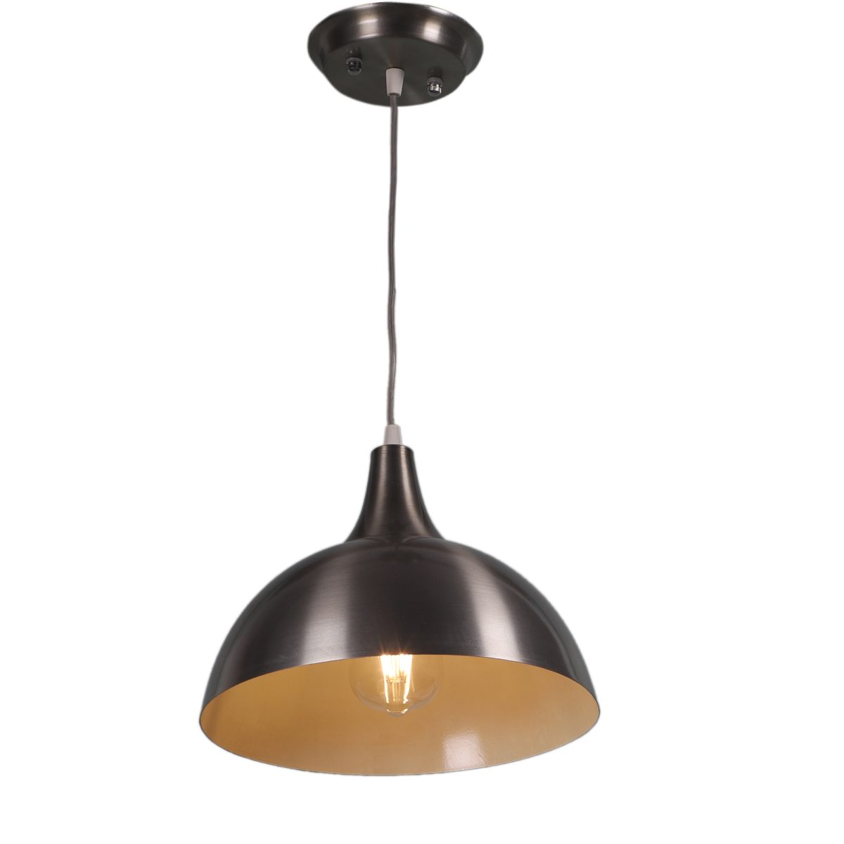 Silver (satin nickel) – white finish, modern aluminium single hanging light. The suspension can be adjusted at time of installation to the desired height. It is maintenance free, comes with an E27 holder, only the change of lamp is required, which is available locally everywhere. Looks amazing with LED filament lamp. Codes of other color variations in the same design – HL3724, HL3725, HL3727, HL3902, HL3903. Application includes both residential and commercial premises wherever it matches with your interiors. Can be customized as per requirement in case of bulk quantities. Lamp not included.