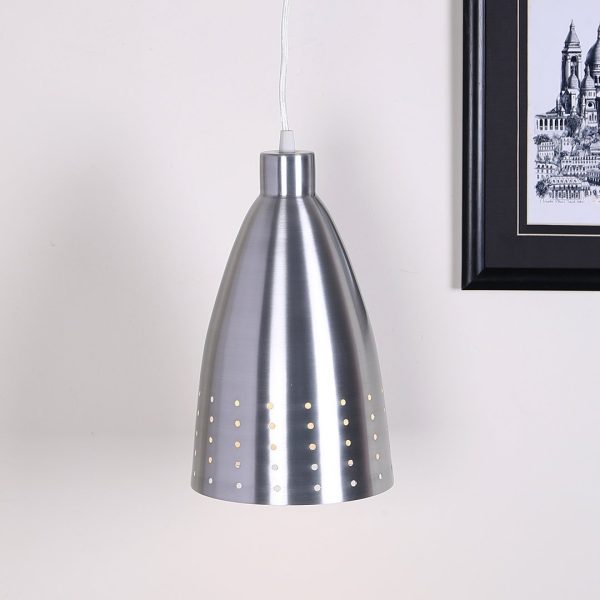 Silver (satin nickel) – yellow finish, modern aluminum single hanging light. The suspension can be adjusted at time of installation to the desired height. It is maintenance free, comes with an E27 holder, only the change of lamp is required, which is available locally everywhere. Codes of other color variations in the same design – HL3535, HL3915-B, HL3915-G, HL3915-P. Application includes both residential and commercial premises wherever it matches with your interiors. Can be customized as per requirement in case of bulk quantities. Lamp not included.