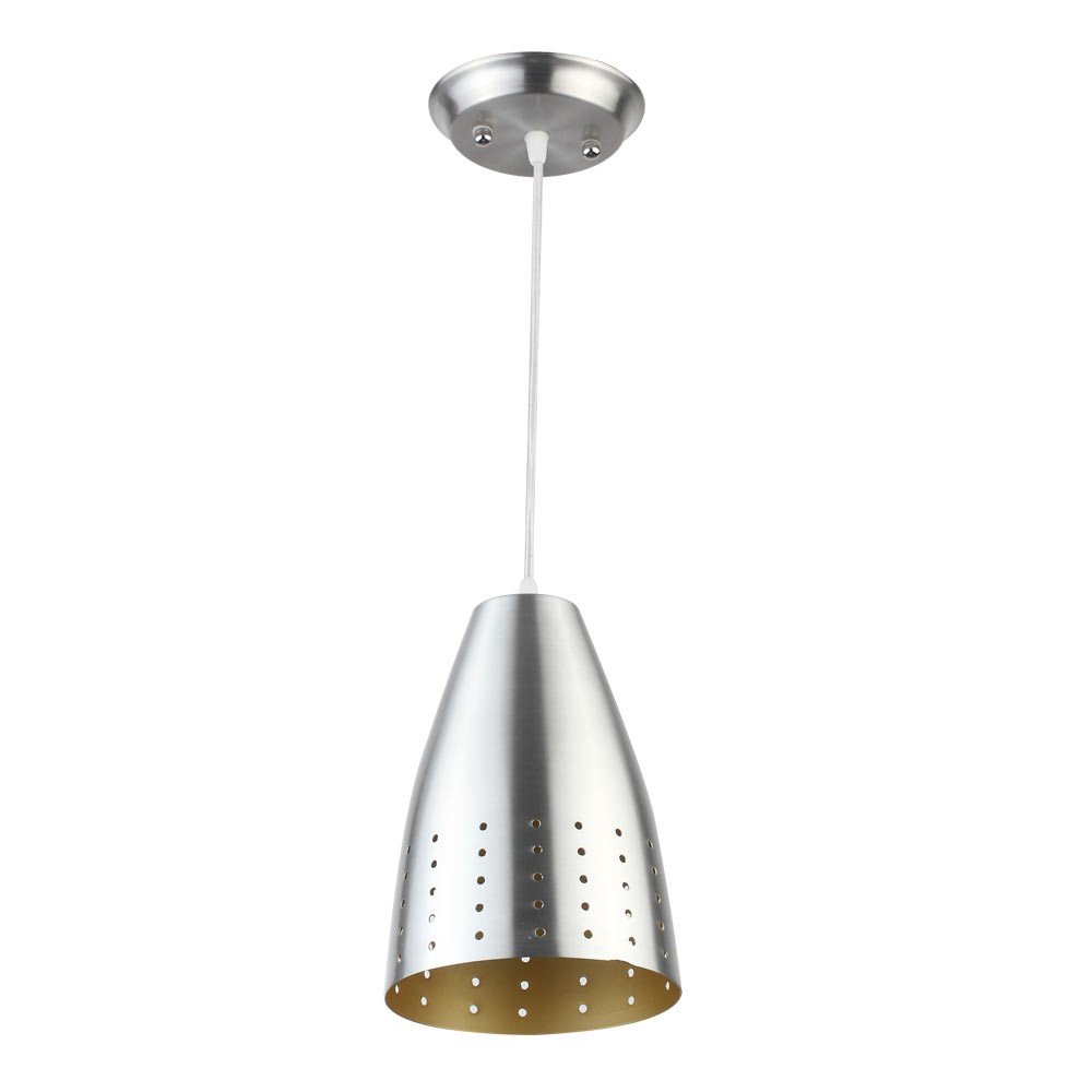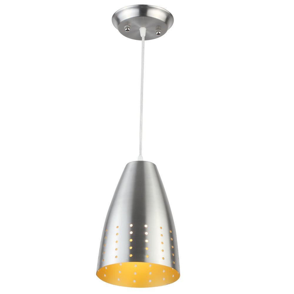 Silver (satin nickel) – yellow finish, modern aluminum single hanging light. The suspension can be adjusted at time of installation to the desired height. It is maintenance free, comes with an E27 holder, only the change of lamp is required, which is available locally everywhere. Codes of other color variations in the same design – HL3670, HL3916-B, HL3916-G, HL3916-P, HL3950-1. Application includes both residential and commercial premises wherever it matches with your interiors. Can be customized as per requirement in case of bulk quantities. Lamp not included.