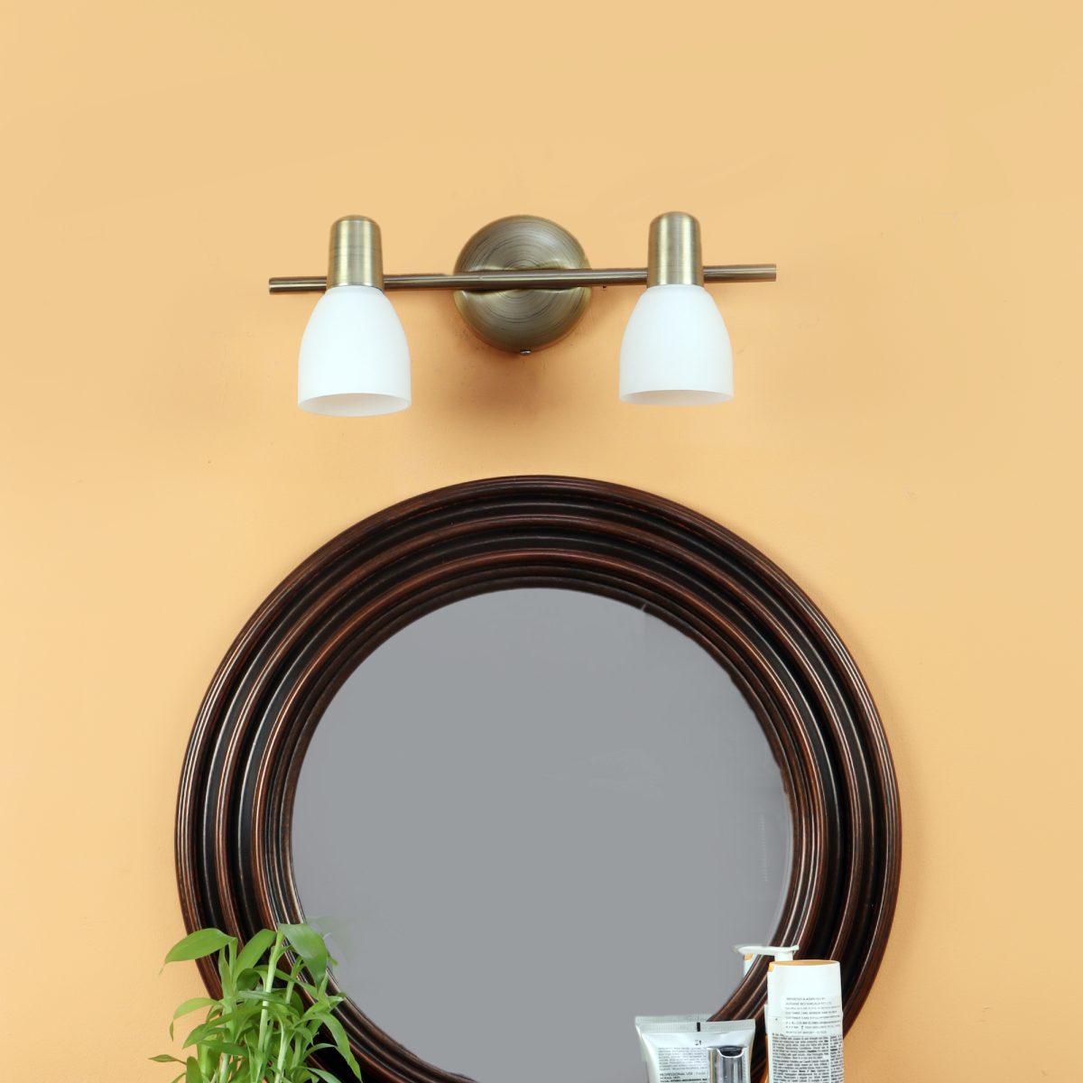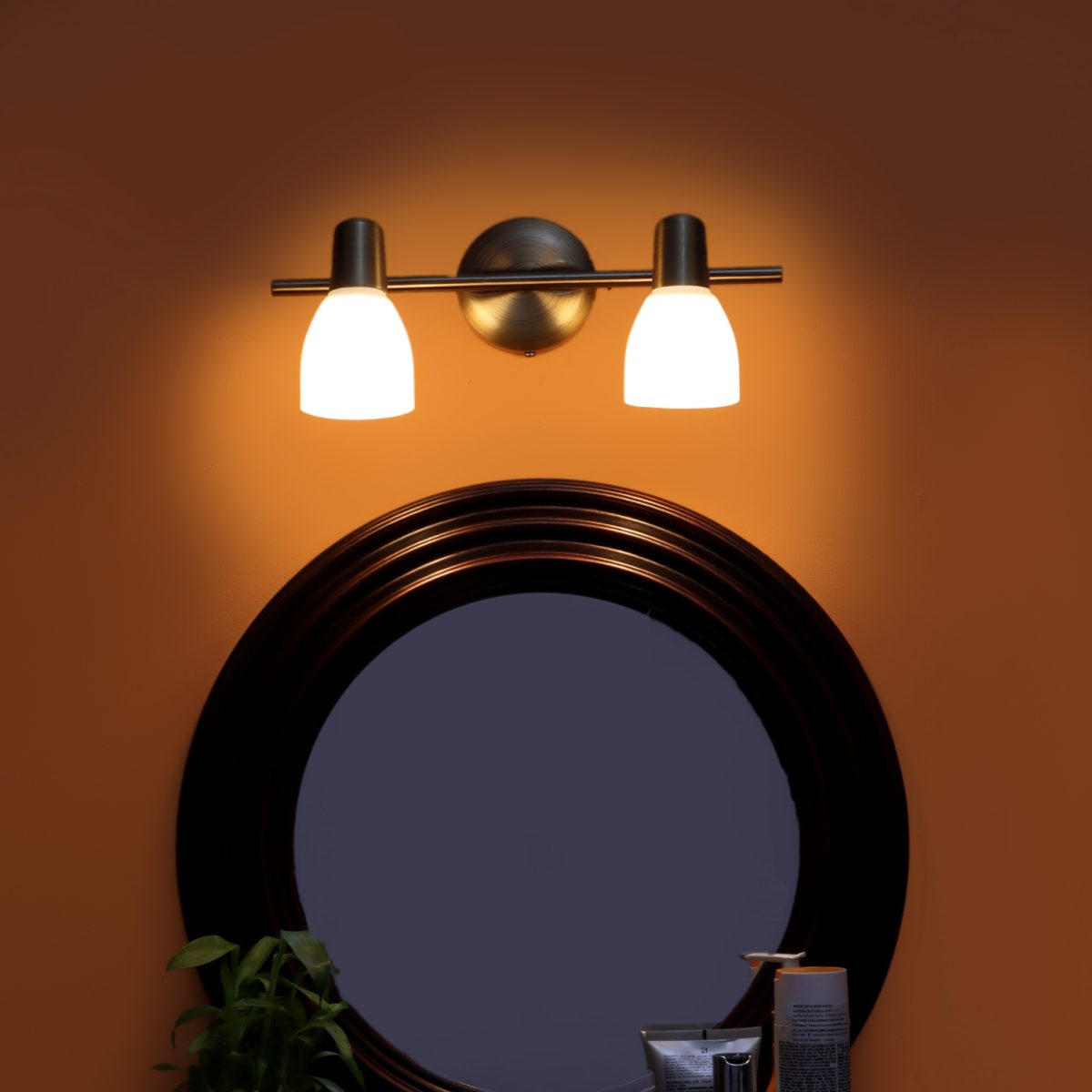 Aluminium, mild steel antique brass finish double spot light. Great for installation above a dressing mirror, dressing table, painting, to provide illumination while applying make-up. It can also be used as a wall light, spot light, ceiling spot light, picture light. It is maintenance free, comes with an E14 holder, only the change of lamp is required, which is available locally everywhere You can of course swap out the bulb for one that is dimmable, has a higher light output or a different color temperature. The lighting spot can be adjusted to any required position. Matching one light code – SL04. Matching three light code – ML113. Silver(Satin nickel) finish code for one light, two light and three light – SL41, ML245, ML246. Dark brown (wood ) finish code for one light, two light and three light – SL49, ML249, ML250. LAMP NOT INCLUDED.