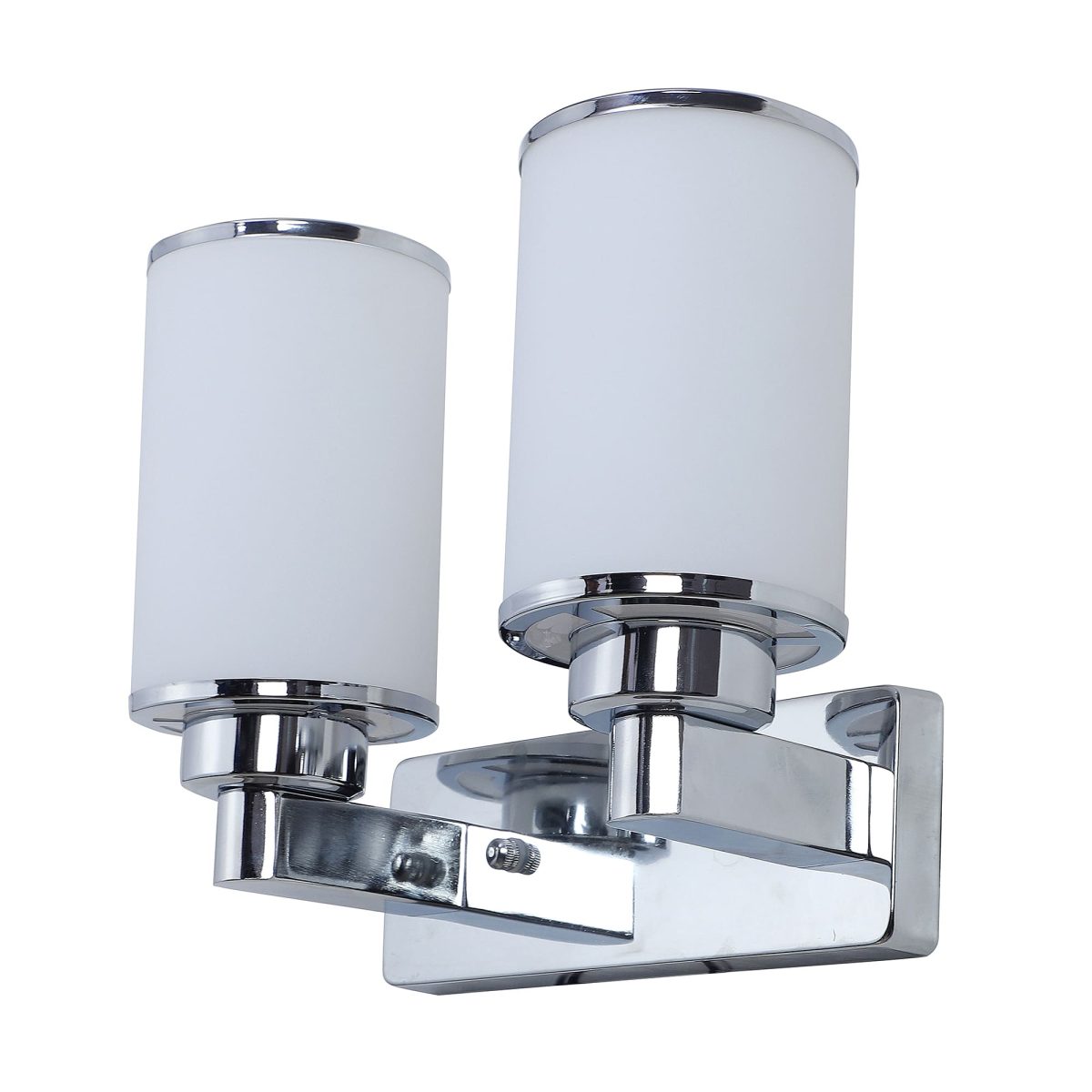 Modern silver (chrome) double wall light made of mild steel, with big round cylindrical white glasses having chrome ring at both its edges. It is maintenance free, easy to remove glass and wash it, comes with an E27 holder, only the change of lamp is required, which is available locally everywhere. You can of course swap out the bulb for one that is dimmable, has a higher light output or a different colour temperature. Application includes both residential and commercial premises wherever it matches with your interiors. single wall light code – WL2355. Can be customized as per requirement in case of bulk quantities. Lamp not included.