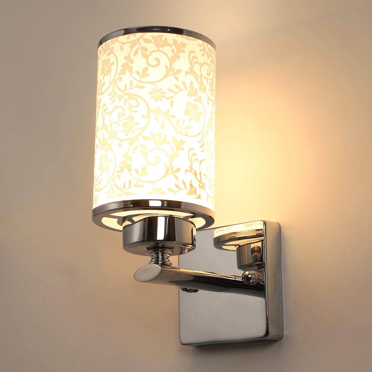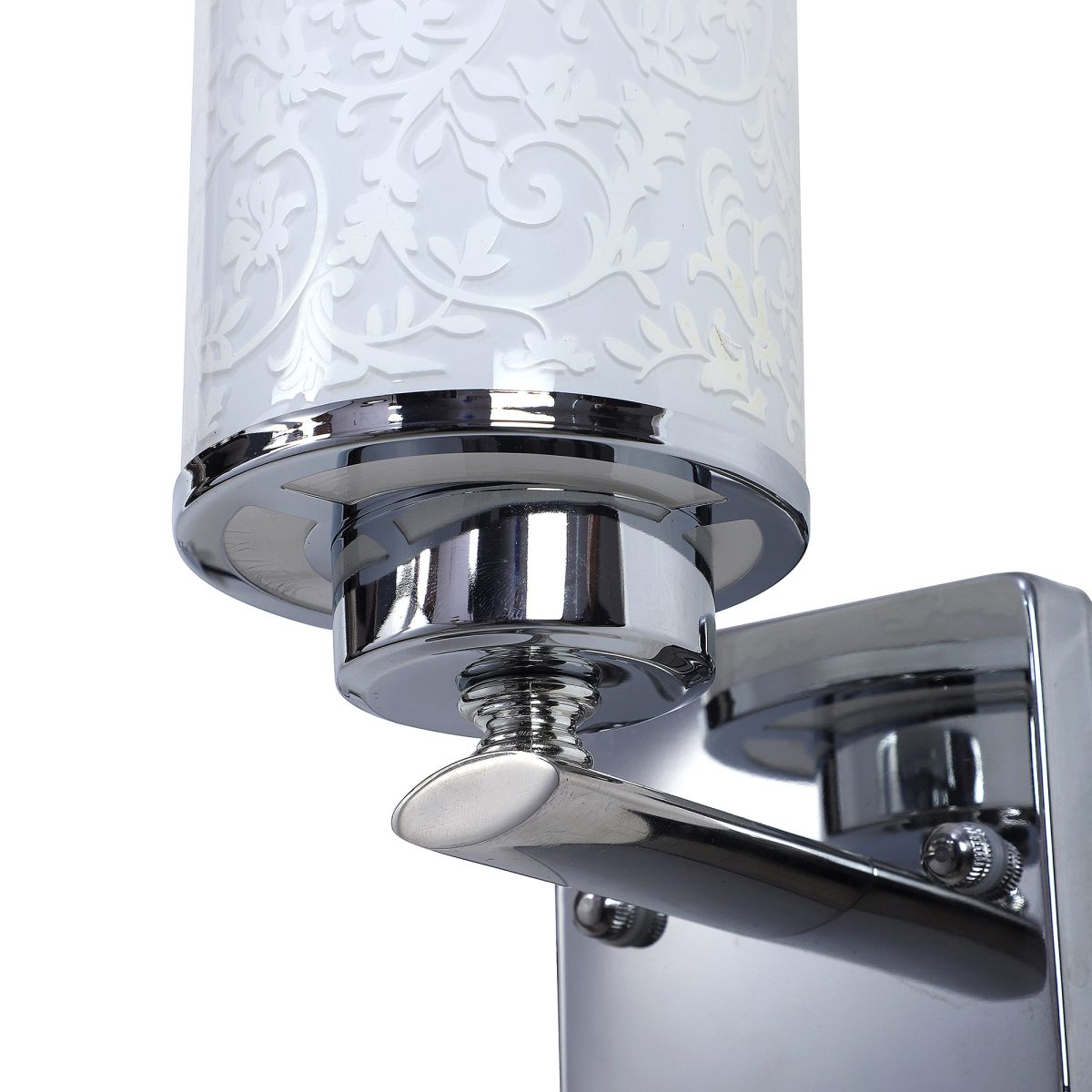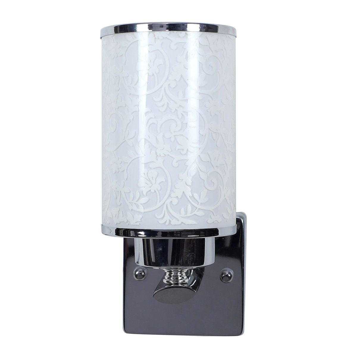 Modern silver (chrome) single wall light made of mild steel, with a big round cylindrical white glass with a nice floral design having chrome ring at both its edges. Design looks amazing when lit. It is maintenance free, easy to remove glass and wash it, comes with an E27 holder, only the change of lamp is required, which is available locally everywhere. You can of course swap out the bulb for one that is dimmable, has a higher light output or a different color temperature. Application includes both residential and commercial premises wherever it matches with your interiors. Double wall light code – WL2440. Can be customized as per requirement in case of bulk quantities. Lamp not included.