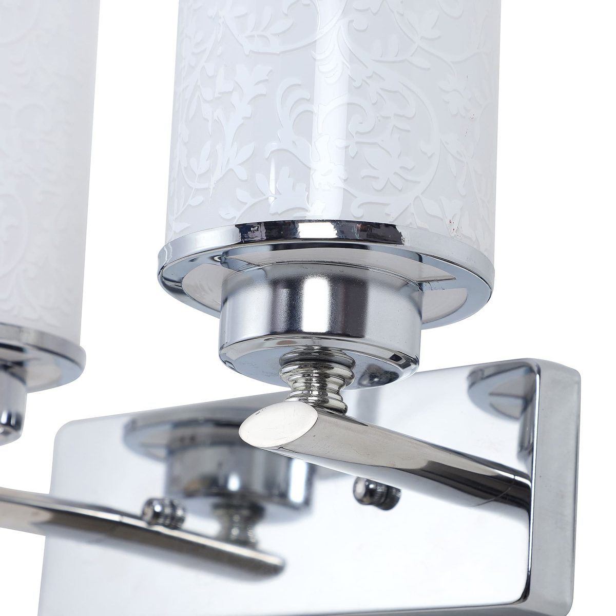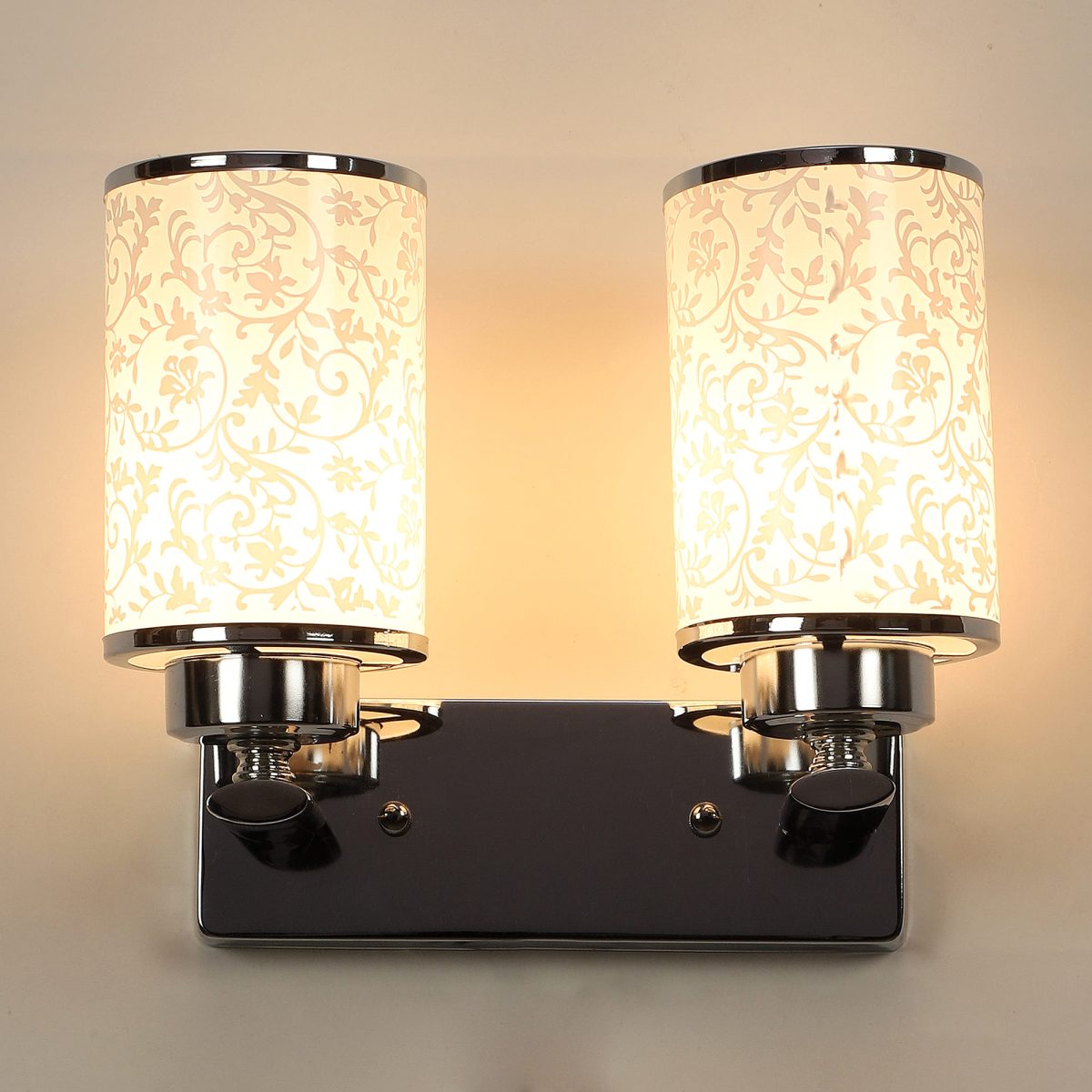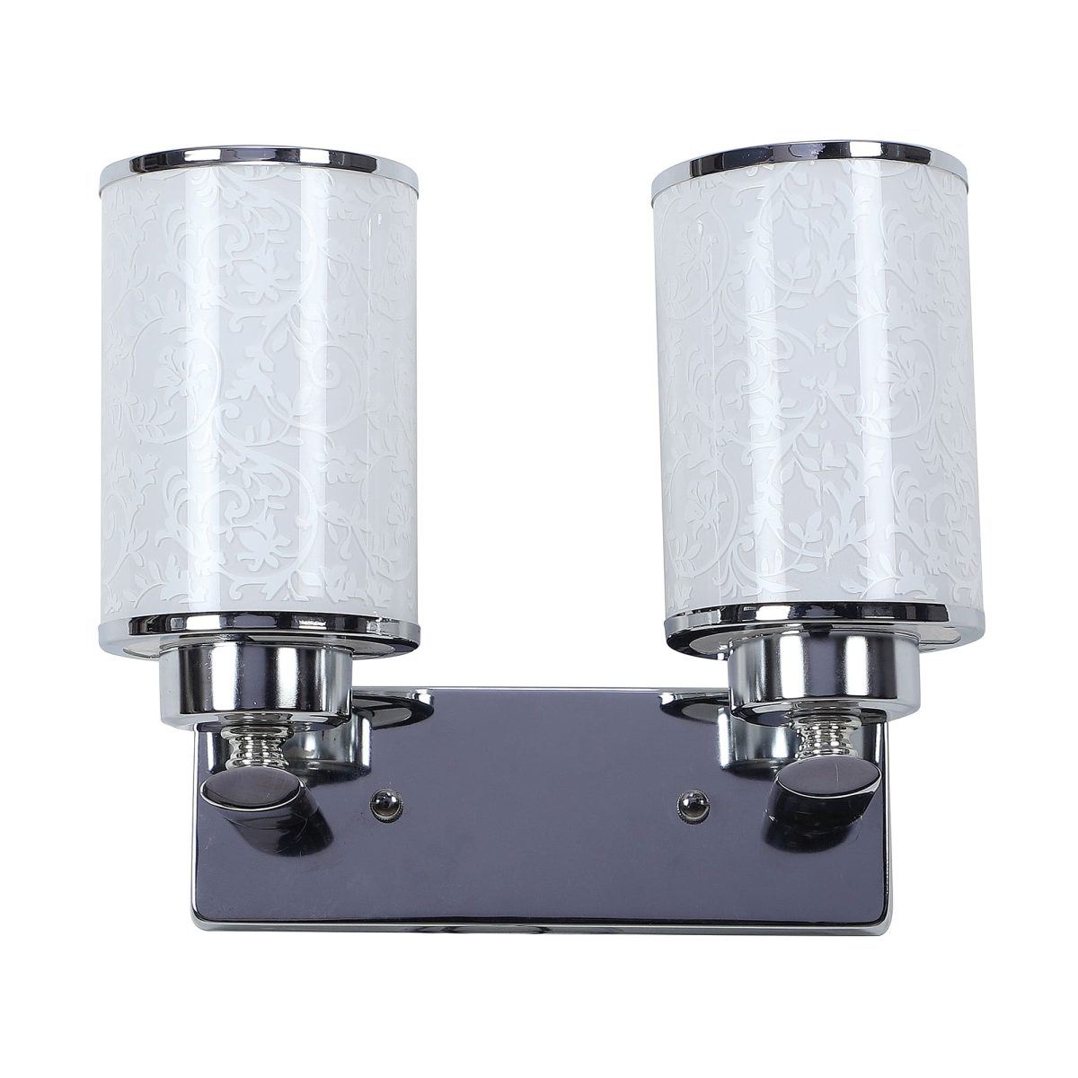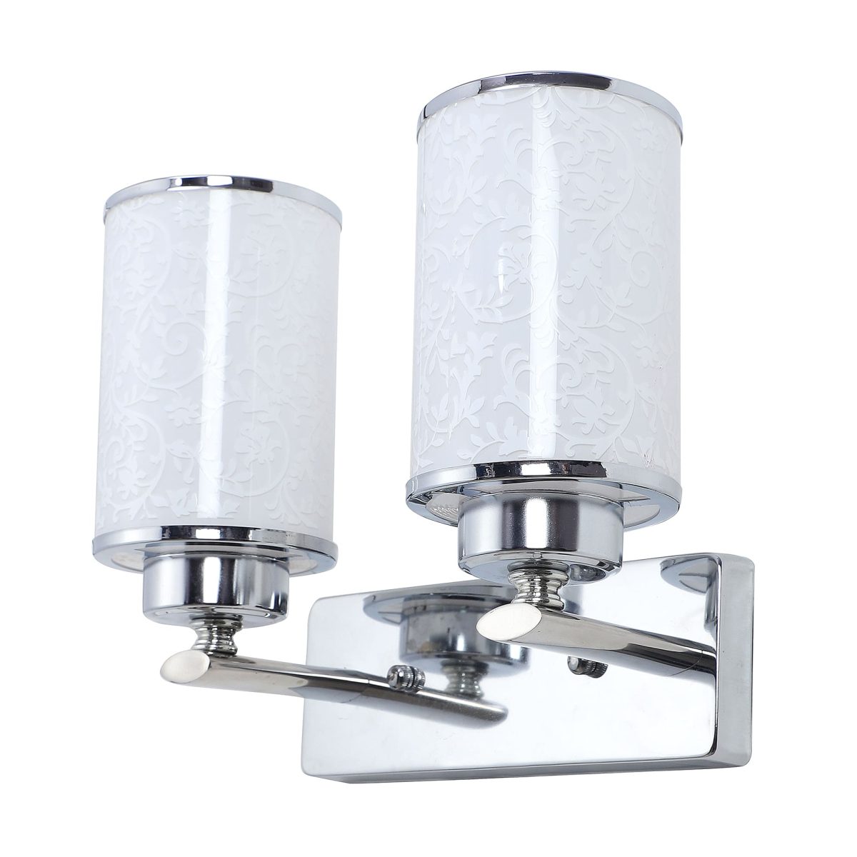 Modern silver (chrome) double wall light made of mild steel, with big round cylindrical white glasses with nice floral design having chrome ring at both its edges. Design looks amazing when lit. It is maintenance free, easy to remove glass and wash it, comes with an E27 holder, only the change of lamp is required, which is available locally everywhere. You can of course swap out the bulb for one that is dimmable, has a higher light output or a different color temperature. Application includes both residential and commercial premises wherever it matches with your interiors. single wall light code – WL2439. Can be customized as per requirement in case of bulk quantities. Lamp not included.