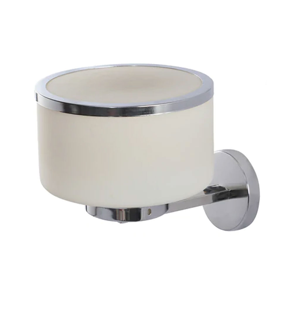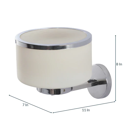 Silver (chrome) finish single wall light having round cylindrical white glass. It is maintenance free, glasses are closed from all the sides which prevents accumulation of dust and it is easy to remove glass and wash it. Comes with an E27 holder, only the change of lamp is required, which is available locally everywhere. Application includes both residential and commercial premises wherever it matches with your interiors. Matching ceiling variation – CL252. Matching chandelier variations -CH164, CH165, CH167, CH177. Matching double wall light code WL2542. All designs available in dark brown (wood) finish also. Can be customized as per requirement in case of bulk quantities. This along with its variants are the best selling products in our catalog. LAMP NOT INCLUDED.