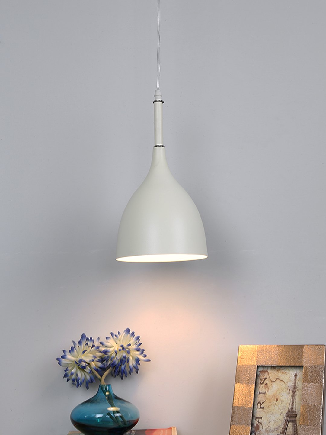 Powder coated white finish, modern aluminum single hanging light. The suspension can be adjusted at time of installation to the desired height. It is maintenance free, comes with an E27 holder, only the change of lamp is required, which is available locally everywhere. Codes of other color variations in the same design – HL3770, HL3771, HL3772, HL3773, HL3774, HL3898, HL3900, HL3901. Application includes both residential and commercial premises wherever it matches with your interiors. Can be customized as per requirement in case of bulk quantities. Lamp not included.