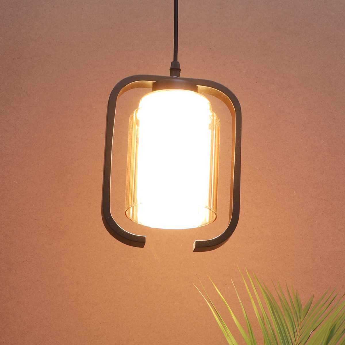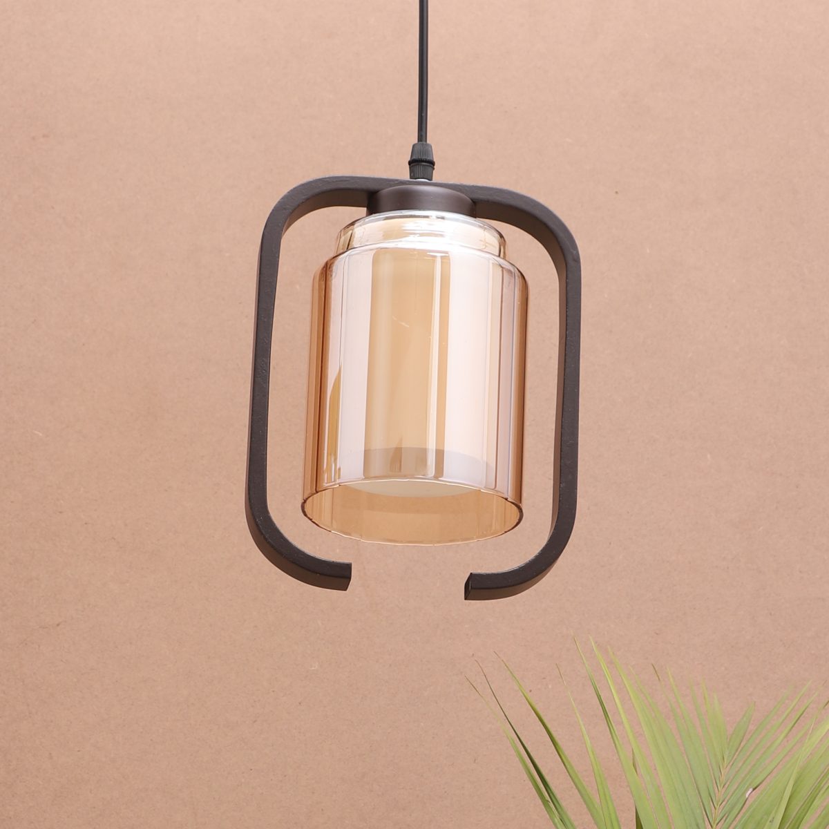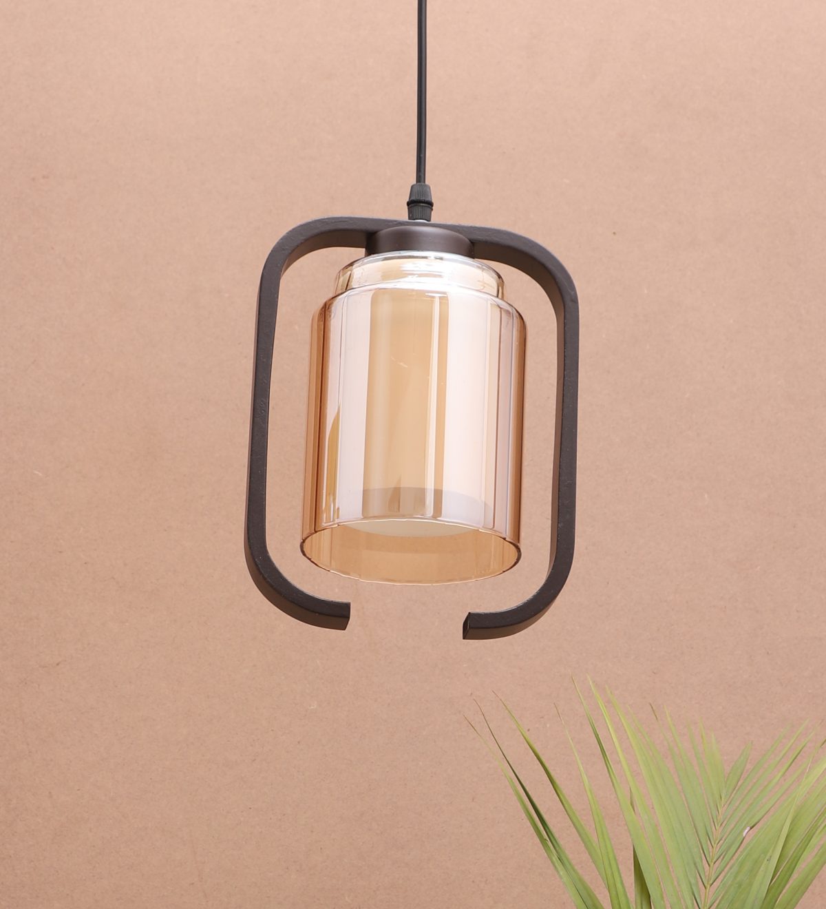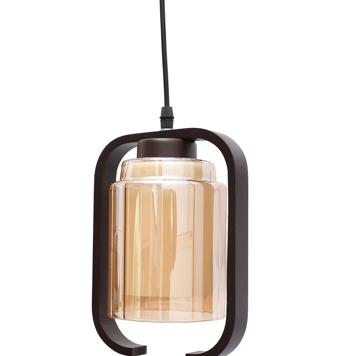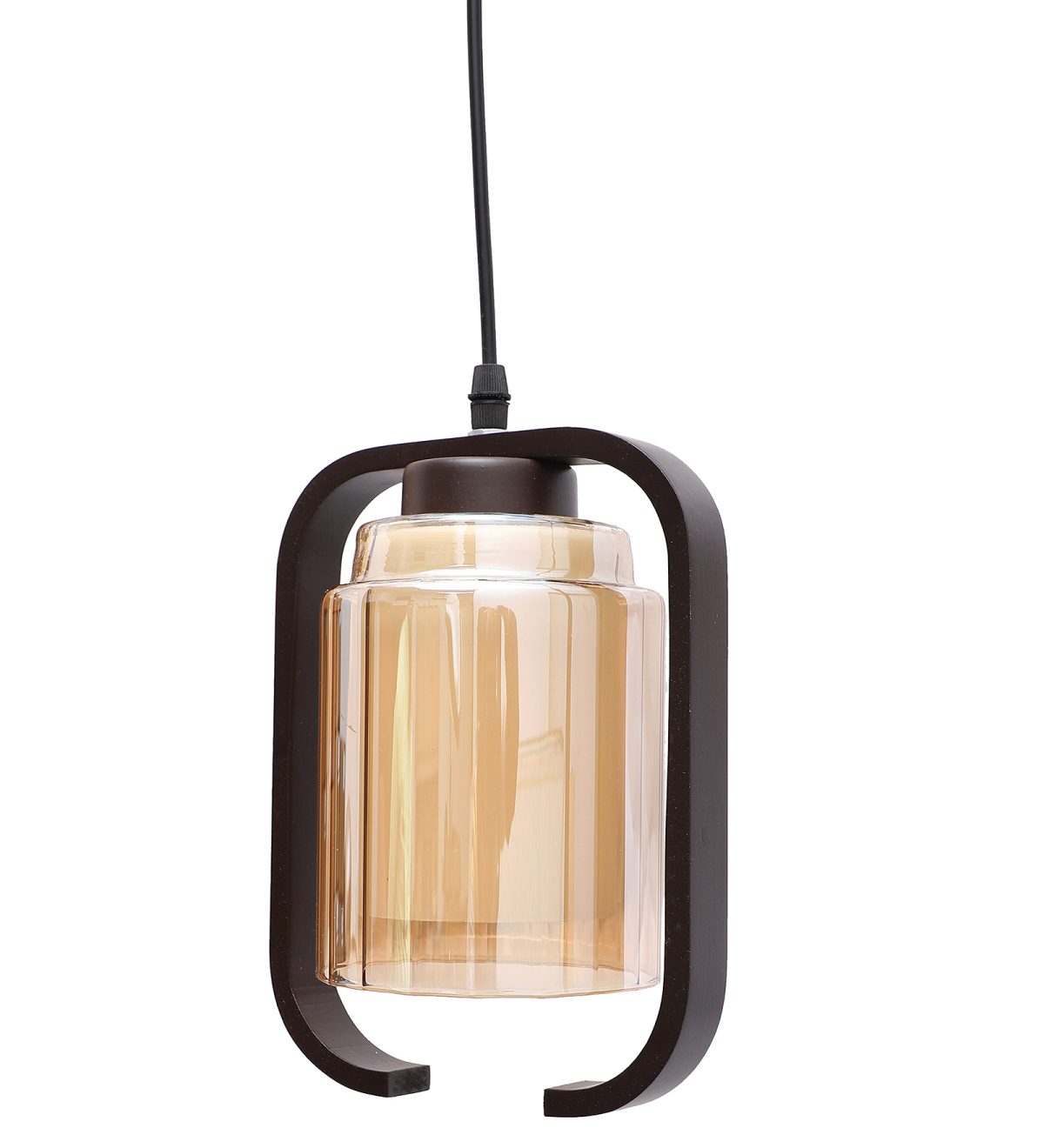 Dark brown (wood) finish, campaign glass single hanging light, made of wood, mild steel and glass. The suspension can be adjusted at time of installation to the desired height. Can be customized as per requirement. LAMP NOT INCLUDED.