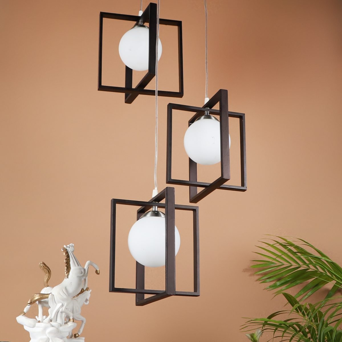 Dark brown (wood) finish, small round globe (doom) glass cluster hanging light having three lamps made of wood, mild steel and glass. It is one of the regular design which is never out of trend. The suspension can be adjusted at time of installation to the desired height. It is maintenance free, easy to remove glass and wash them, comes with an E27 holder, only the change of lamp is required, which is available locally everywhere. Application includes both residential and commercial premises wherever it matches with your interiors. Also available in single lamp option with code HL3672S. Matching wall light code – WL1537, WL1538. Can be customized as per requirement in case of bulk quantities. Lamp not included.