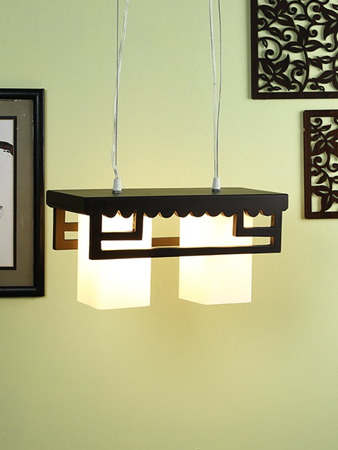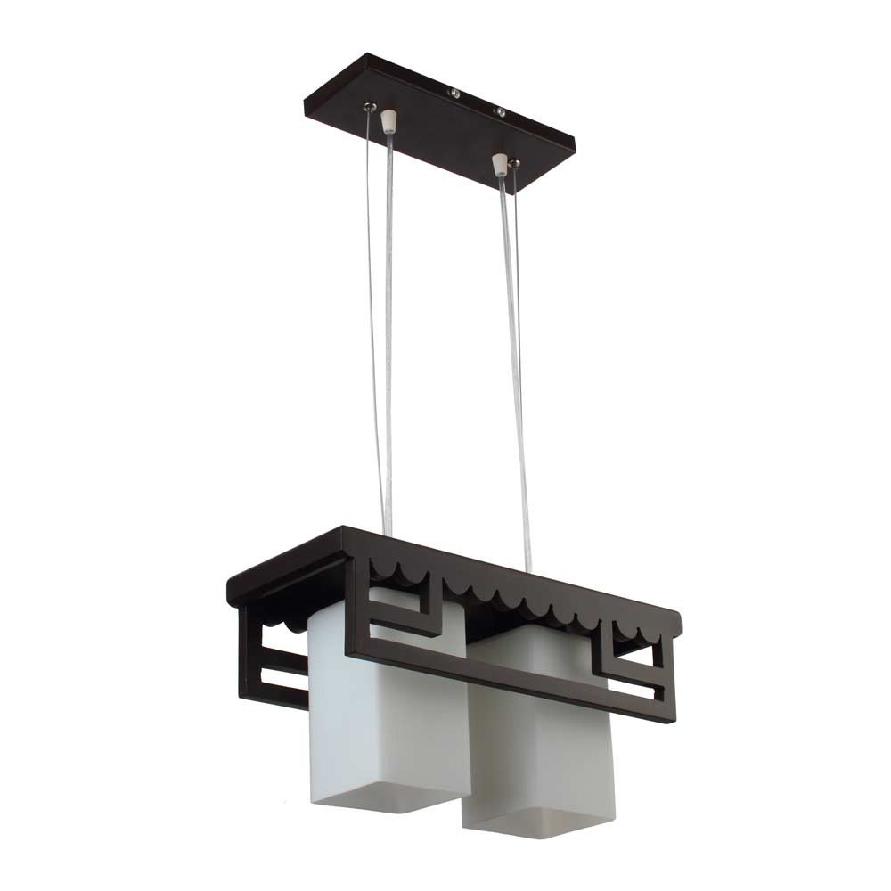 Dark brown (wood) finish, rectangular with square long glass having two lamps made of wood, mild steel and glass. The suspension can be adjusted at time of installation to the desired height. It is maintenance free, easy to remove glass and wash them, comes with an E27 holder, only the change of lamp is required, which is available locally everywhere. Application includes both residential and commercial premises wherever it matches with your interiors. Matching three light hanging option -HL3856-3. Can be customized as per requirement in case of bulk quantities. Lamp not included.