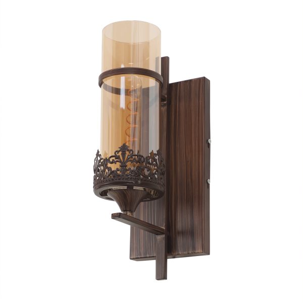 Brown (wood) finish, round, cylindrical champagne coloured glass mounted on a designer frame made of mild steel having six lights. This is a hanging type chandelier in which the base plate is fixed to the ceiling with the help of straight clamp and screws. The suspension can be adjusted at time of installation to the desired height. It is maintenance free, it is easy to remove glass and wash them. Comes with an E27 holder, only the change of lamp is required, which is available locally everywhere. Application includes both residential and commercial premises wherever it matches with your interiors. Matching wall light code WL2299, WL2317. Matching hanging light code – HL4083. Can be customized as per requirement in case of bulk quantities. This along with its variants are the best selling products in our catalogue. LAMP NOT INCLUDED.