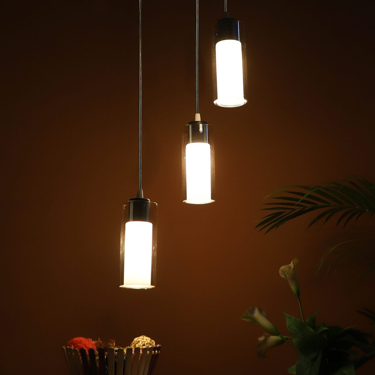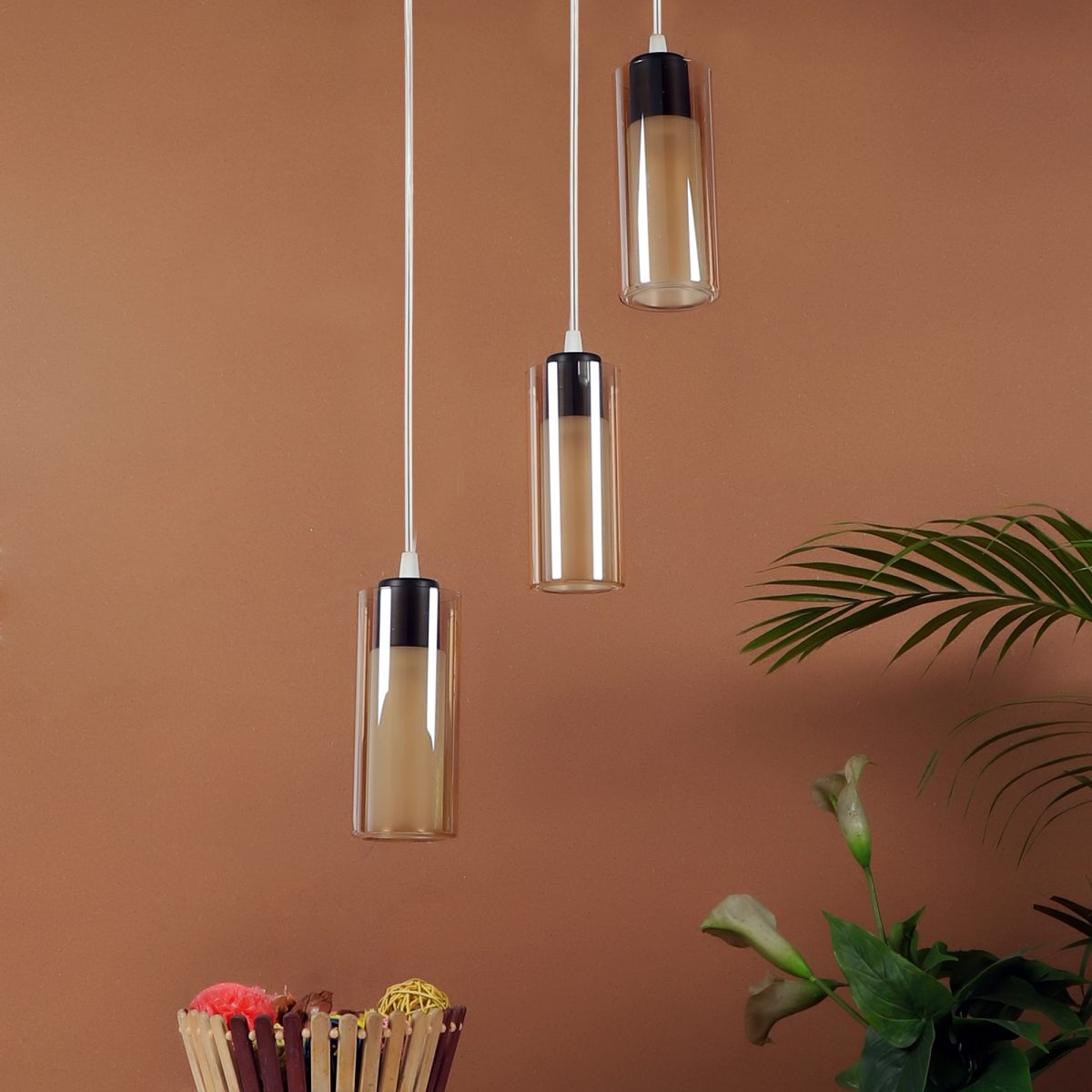 Dark brown (wood) finish, round glass in campaign color, cluster hanging light having three lamps made of mild steel and glass. Each light is having two layers in glass, inner glass is frosted and outer glass is transparent making this light unique. The suspension can be adjusted at time of installation to the desired height. It is maintenance free, easy to remove glass and wash them, comes with an E14 holder, only the change of lamp is required, which is available locally everywhere. Application includes both residential and commercial premises wherever it matches with your interiors. Matching similar hanging codes -HL3980-1, HL3980-6, HL3980-10. Matching chandelier codes – CH353-3, CH353-6, CH353-10. Matching wall light – WL2211, WL2212. All designs available in silver (chrome) also. Can be customized as per requirement in case of bulk quantities. Lamp not included.