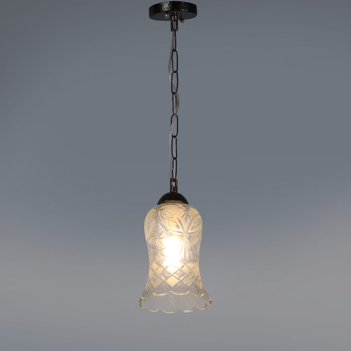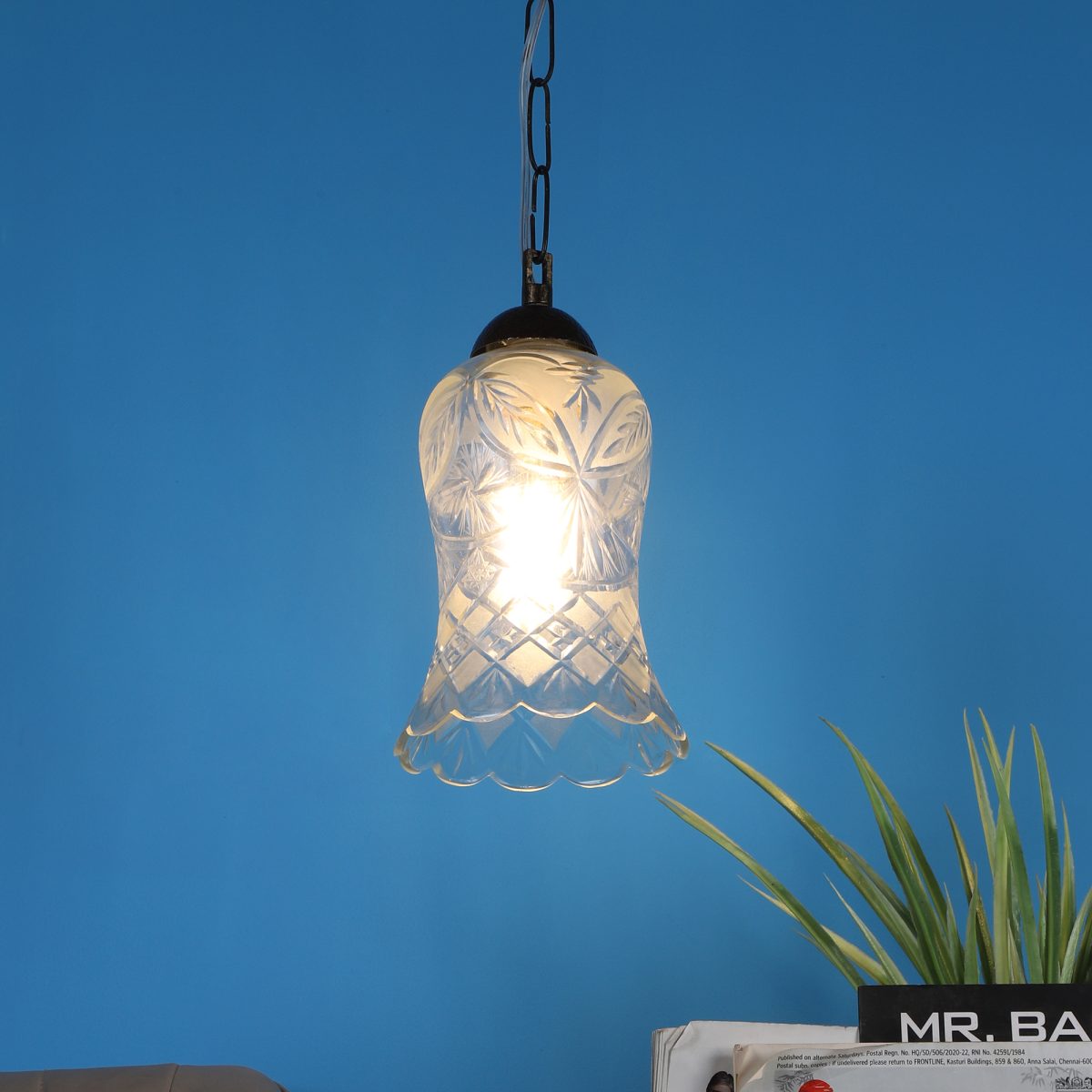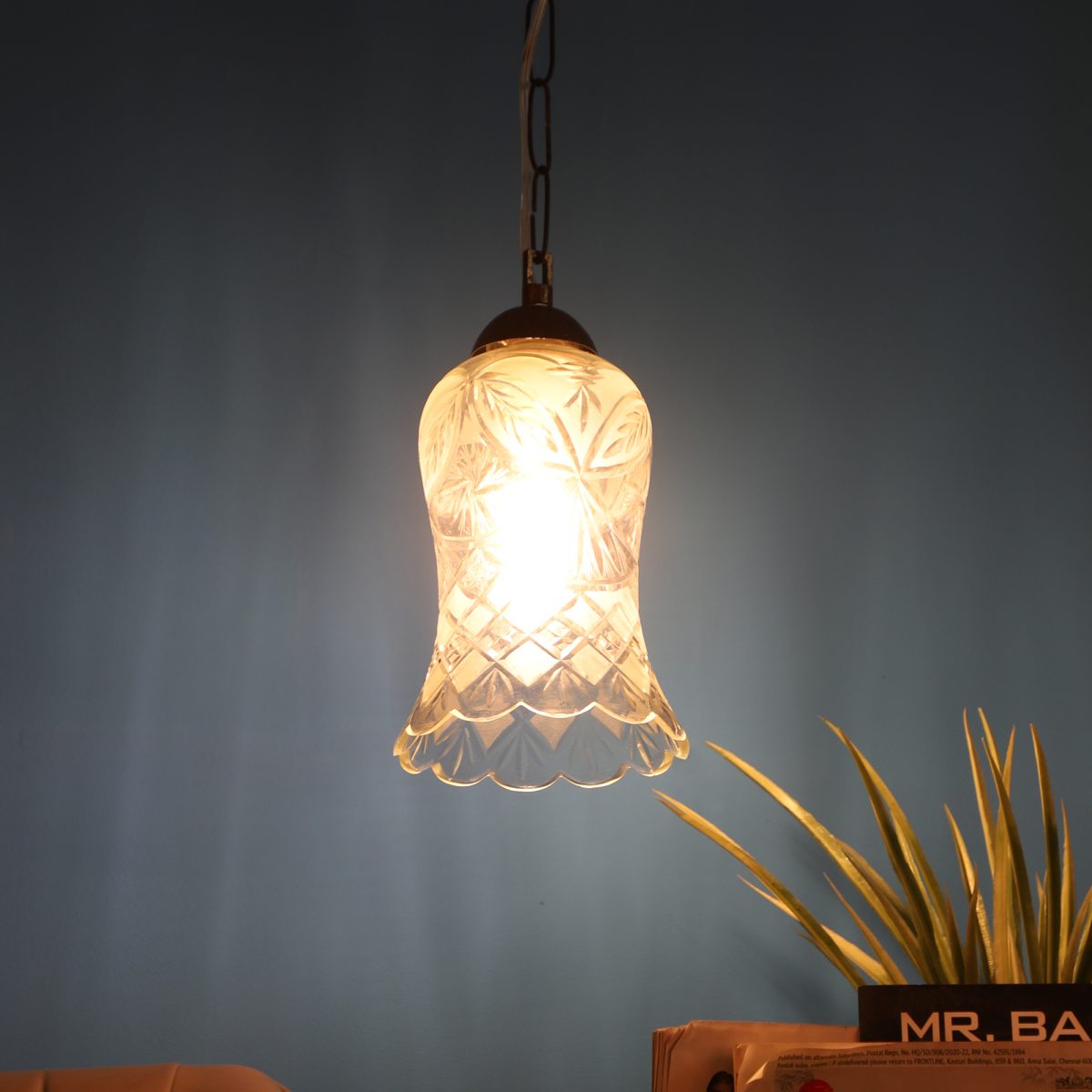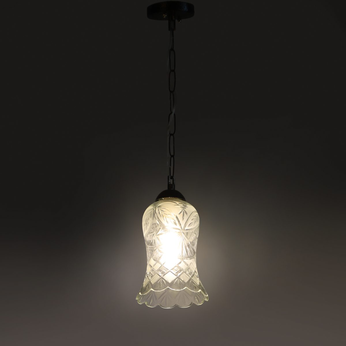 Dark brown (antique gold) finish, modern cylindrical glass with a brown metal ring at the edges, single hanging light made of mild steel and glass. Glass is having self design. The suspension can be adjusted at time of installation to the desired height. It is maintenance free, easy to remove glass and wash them, comes with an E27 holder, only the change of lamp is required, which is available locally everywhere. Application includes both residential and commercial premises wherever it matches with your interiors. Also available in three lamp option with code HL4050-3. Matching wall light code – WL1966. Can be customized as per requirement in case of bulk quantities. Lamp not included.