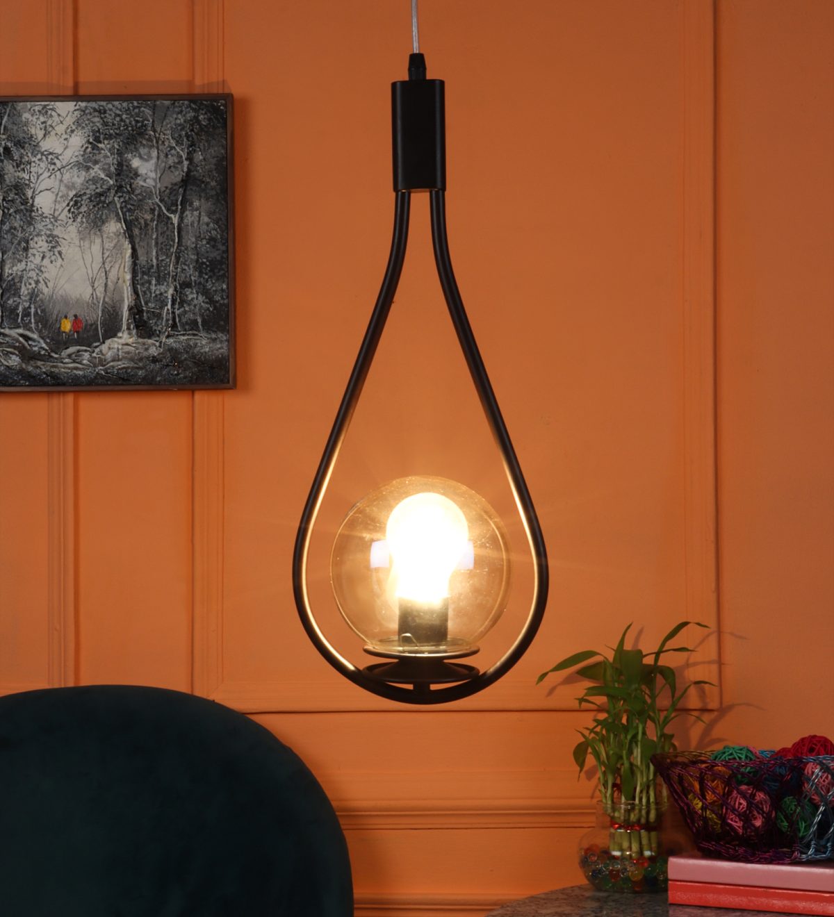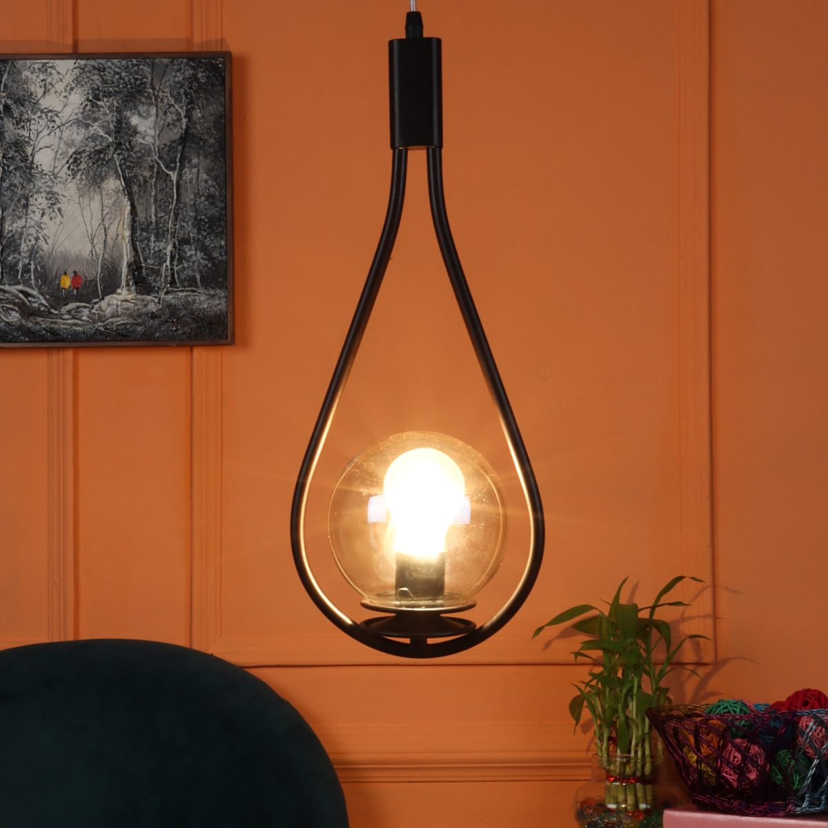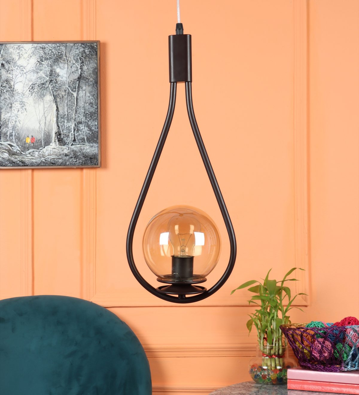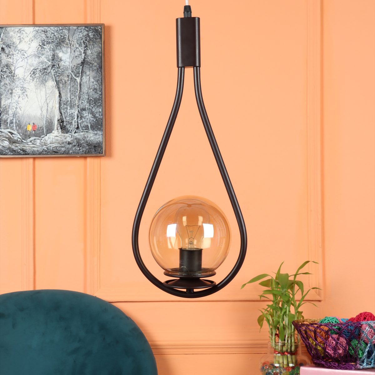 Brown,designer, traditional, mild steel single hanging light in campaign glass. The suspension can be adjusted at time of installation to the desired height. It is maintenance free, comes with an E27 holder, only the change of lamp is required, which is available locally everywhere. LED filament lamp is recommended to enhance its beauty. Application includes both residential and commercial premises wherever it matches with your interiors. Matching wall light code – WL2737. Can be customized as per requirement in case of bulk quantities. LAMP NOT INCLUDED.