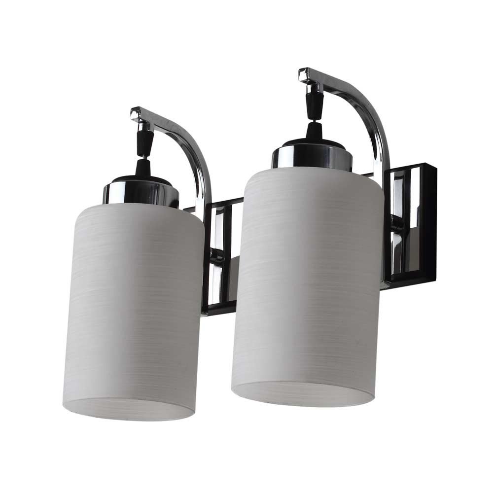 Dark brown silver (wood chrome) finish down facing double wall light made mild steel, with round cylindrical long glasses with a nice self design. Looks amazing when lit. It is maintenance free, easy to remove glass and wash it, comes with an E27 holder, only the change of lamp is required, which is available locally everywhere. You can of course swap out the bulb for one that is dimmable, has a higher light output or a different color temperature. Application includes both residential and commercial premises wherever it matches with your interiors. Matching single wall light code – WL1946. Matching chandelier code – CH360. Can be installed down facing also. Can be customized as per requirement in case of bulk quantities. Lamp not included.