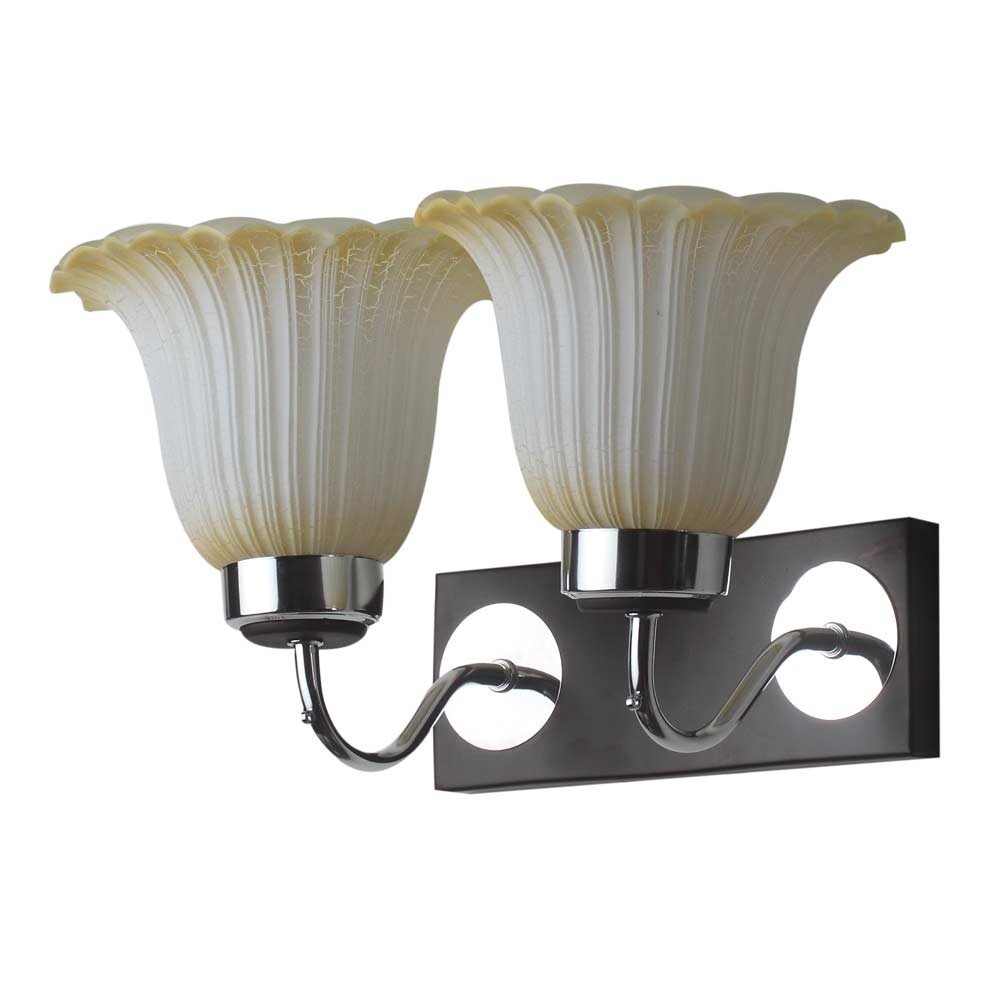 Dark brown, silver (wood chrome) finish double wall light having flower shaped white glasses having traces of yellow color. It is maintenance free, easy to remove glass and wash them. Comes with an E27 holder, only the change of lamp is required, which is available locally everywhere. Application includes both residential and commercial premises wherever it matches with your interiors. Matching single wall light code – WL1979. Matching chandelier code – CH365. Can be customized as per requirement in case of bulk quantities. Lamp not included.