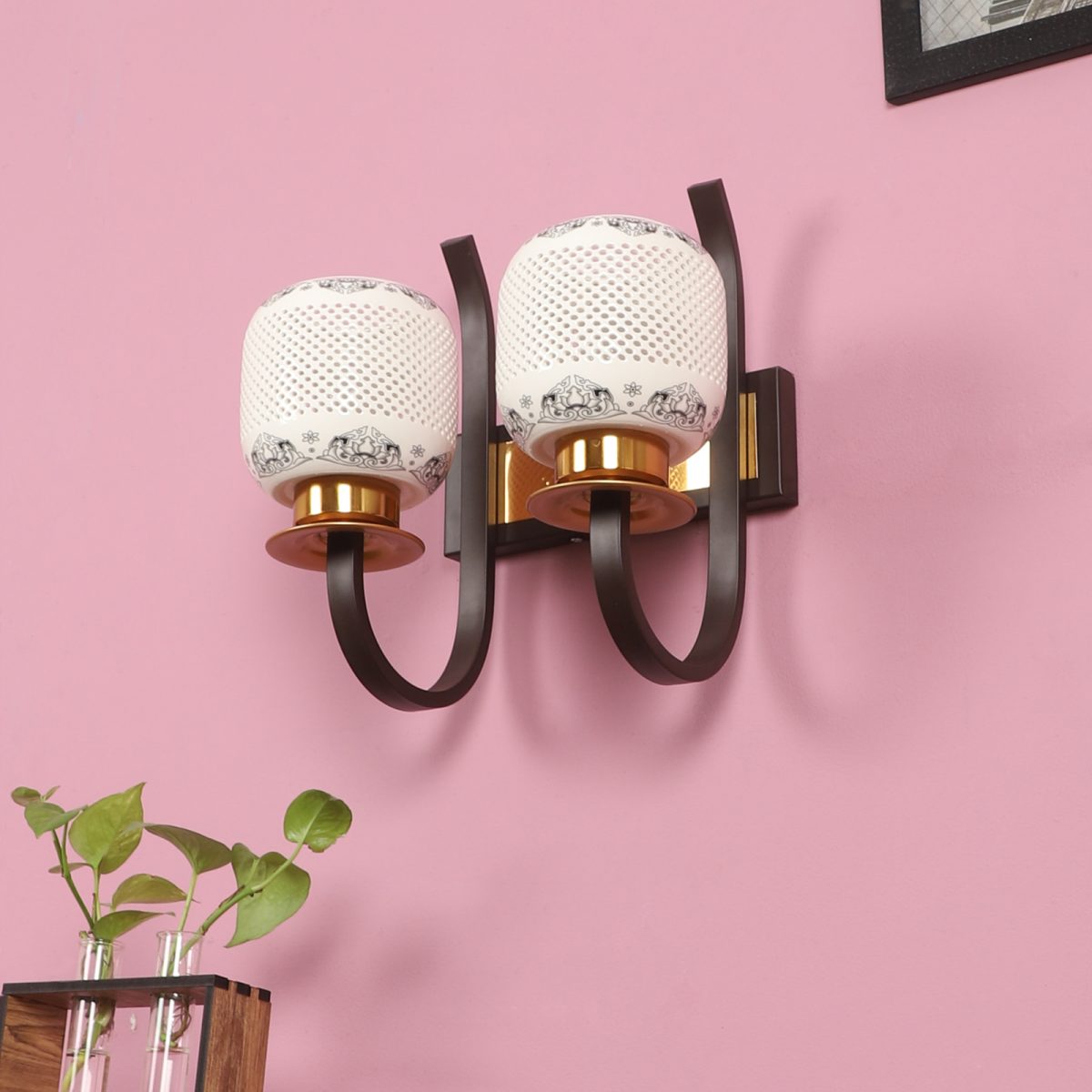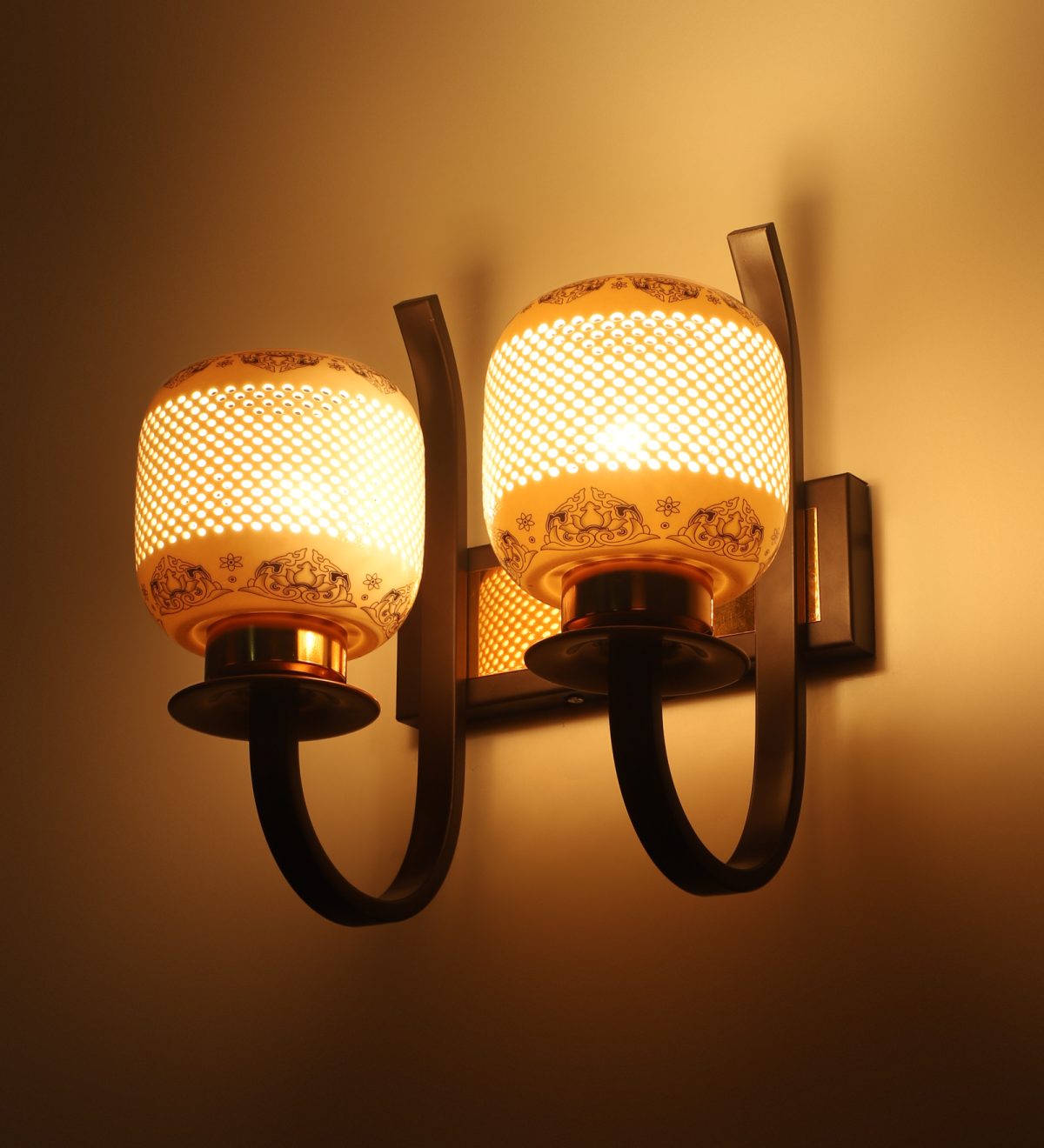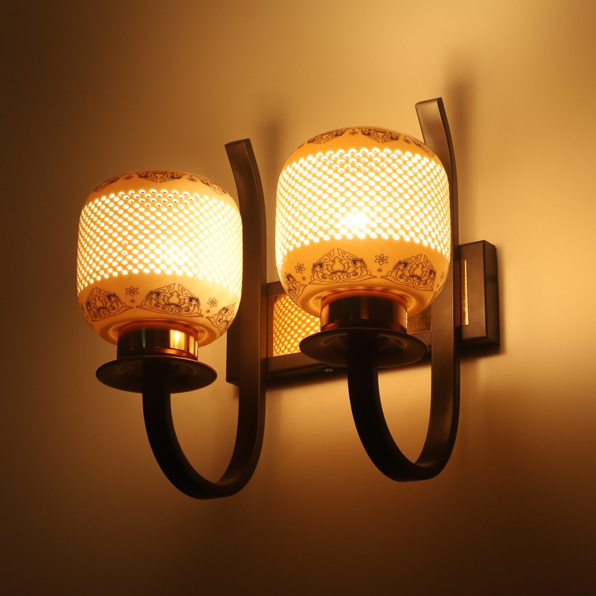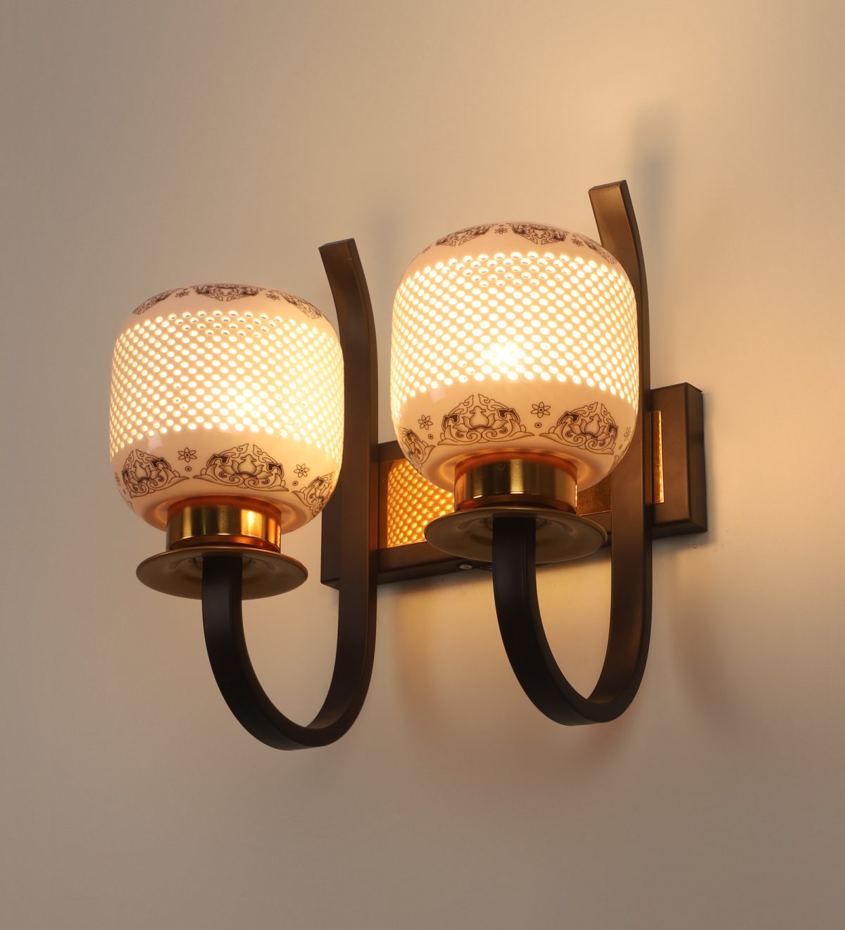 Dark brown,designer, traditional, mild steel double wall light with ceramic shade. It is maintenance free, comes with an E27 holder, only the change of lamp is required, which is available locally everywhere. Application includes both residential and commercial premises wherever it matches with your interiors. Can be customized as per requirement. LAMPS NOT INCLUDED.