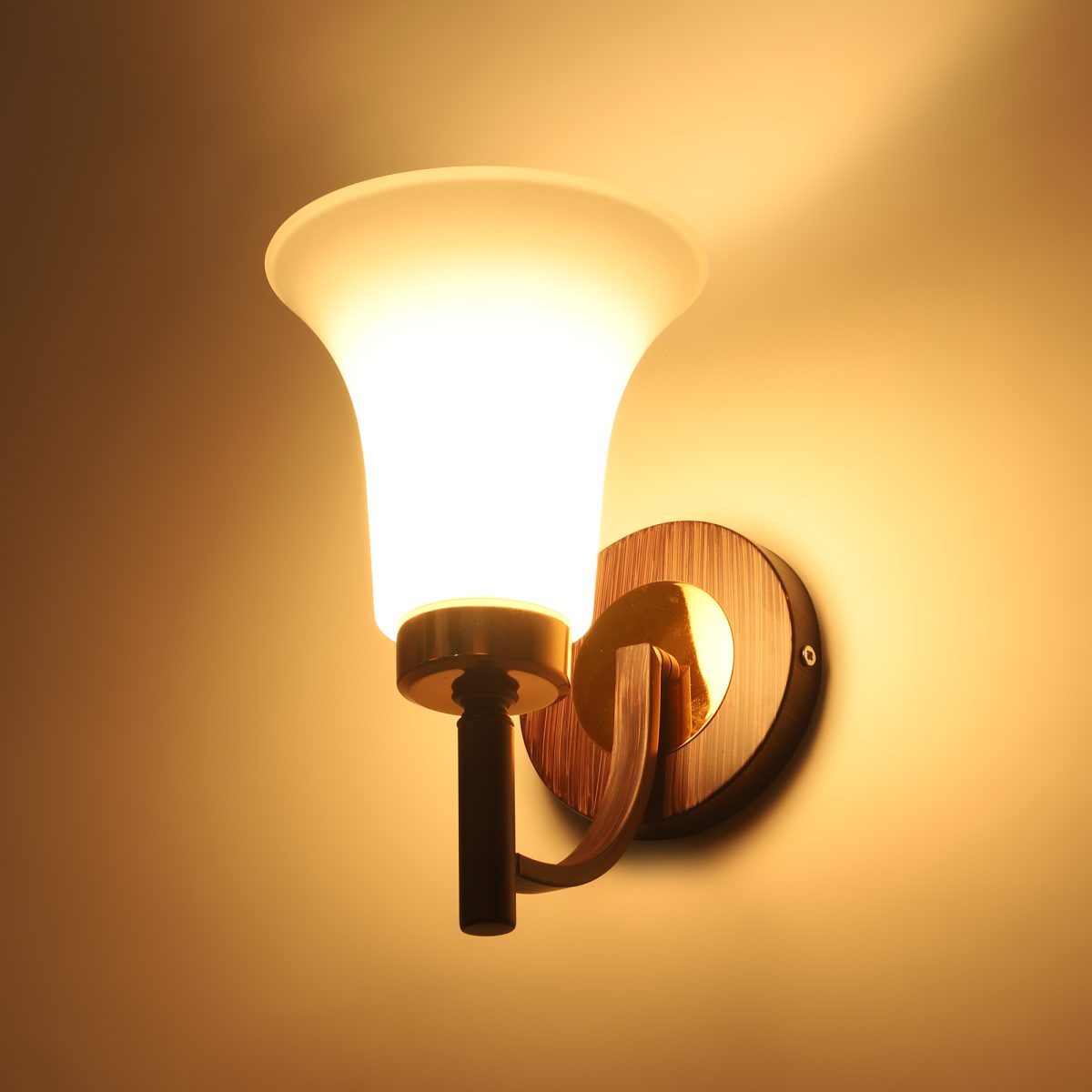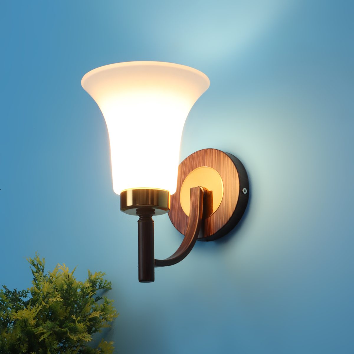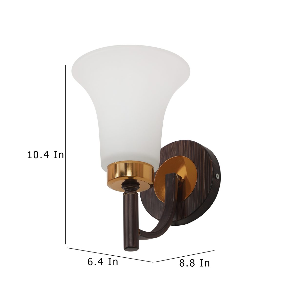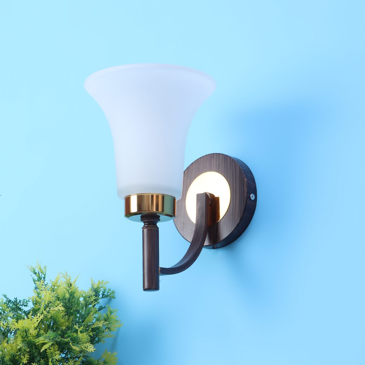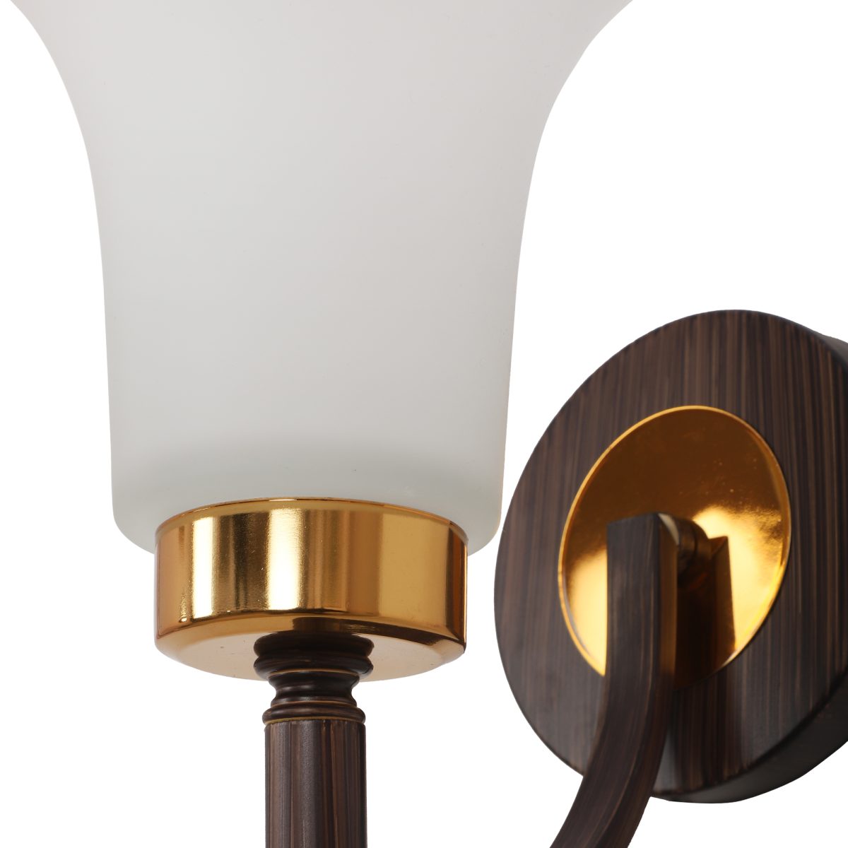 Dark brown (wood), gold finish double wall light made of mild steel, with a bell shaped white glass. It is maintenance free, easy to remove glass and wash it, comes with an E27 holder, only the change of lamp is required, which is available locally everywhere. You can of course swap out the bulb for one that is dimmable, has a higher light output or a different color temperature. Application includes both residential and commercial premises wherever it matches with your interiors. Matching single wall light code – WL2395. Can be customized as per requirement in case of bulk quantities. Lamp not included.
