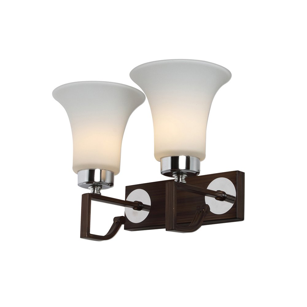 Dark brown silver (wood chrome) finish double wall light made of mild steel, with a bell shaped long white glass. It is maintenance free, easy to remove glass and wash it, comes with an E27 holder, only the change of lamp is required, which is available locally everywhere. You can of course swap out the bulb for one that is dimmable, has a higher light output or a different color temperature. Application includes both residential and commercial premises wherever it matches with your interiors. Matching single wall light code – WL2455. Matching chandelier code – CH417. Can be customized as per requirement in case of bulk quantities. Lamp not included.