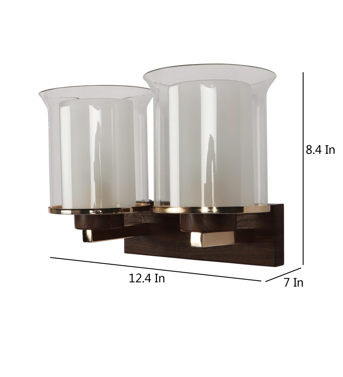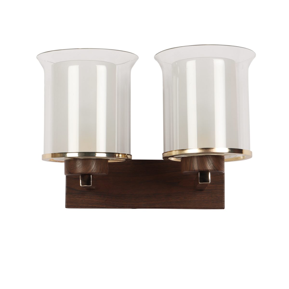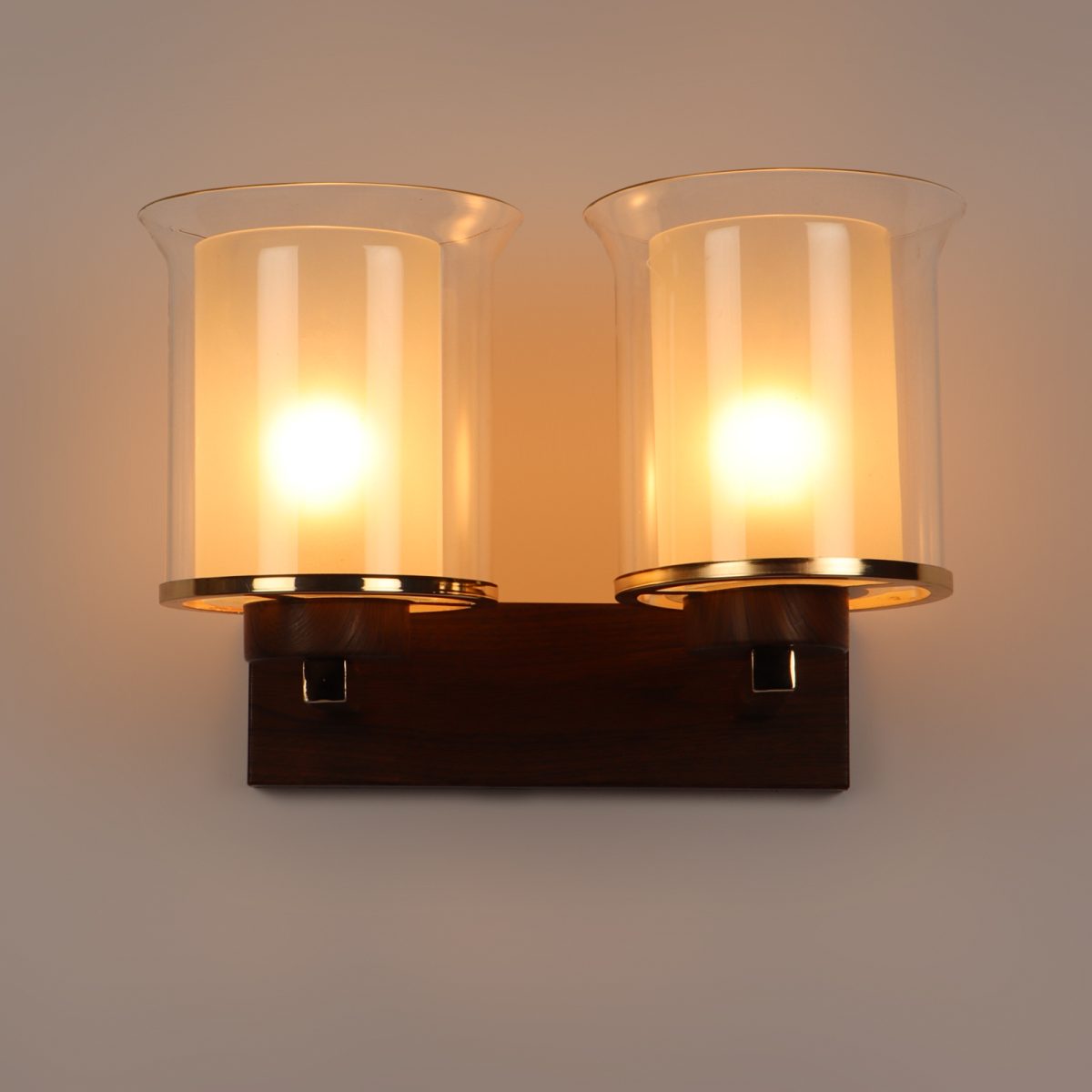 Dark brown (wood finish with grains) double wall light having cylindrical two layer glass made of mild steel. It is maintenance free., It is easy to remove glass and wash them. Comes with an E27 holder, only the change of lamp is required, which is available locally everywhere. Application includes both residential and commercial premises wherever it matches with your interiors. Matching single wall light code WL2536. LAMP NOT INCLUDED.