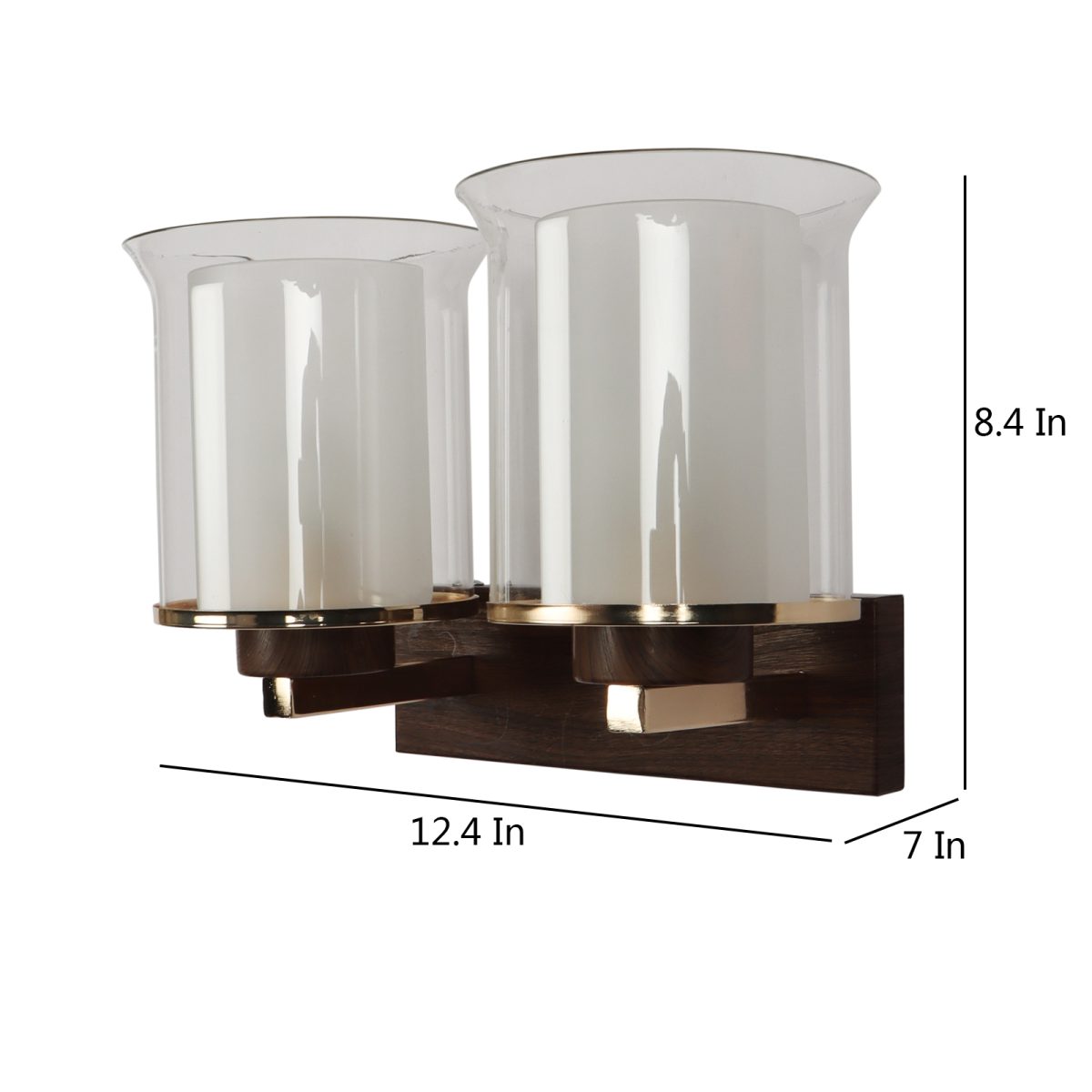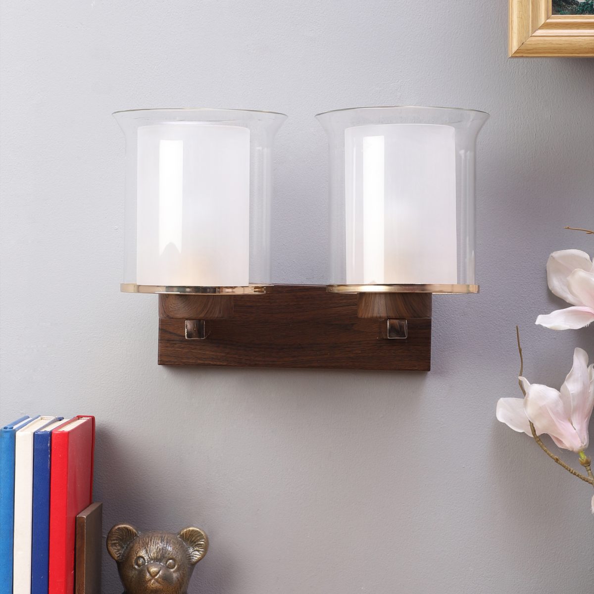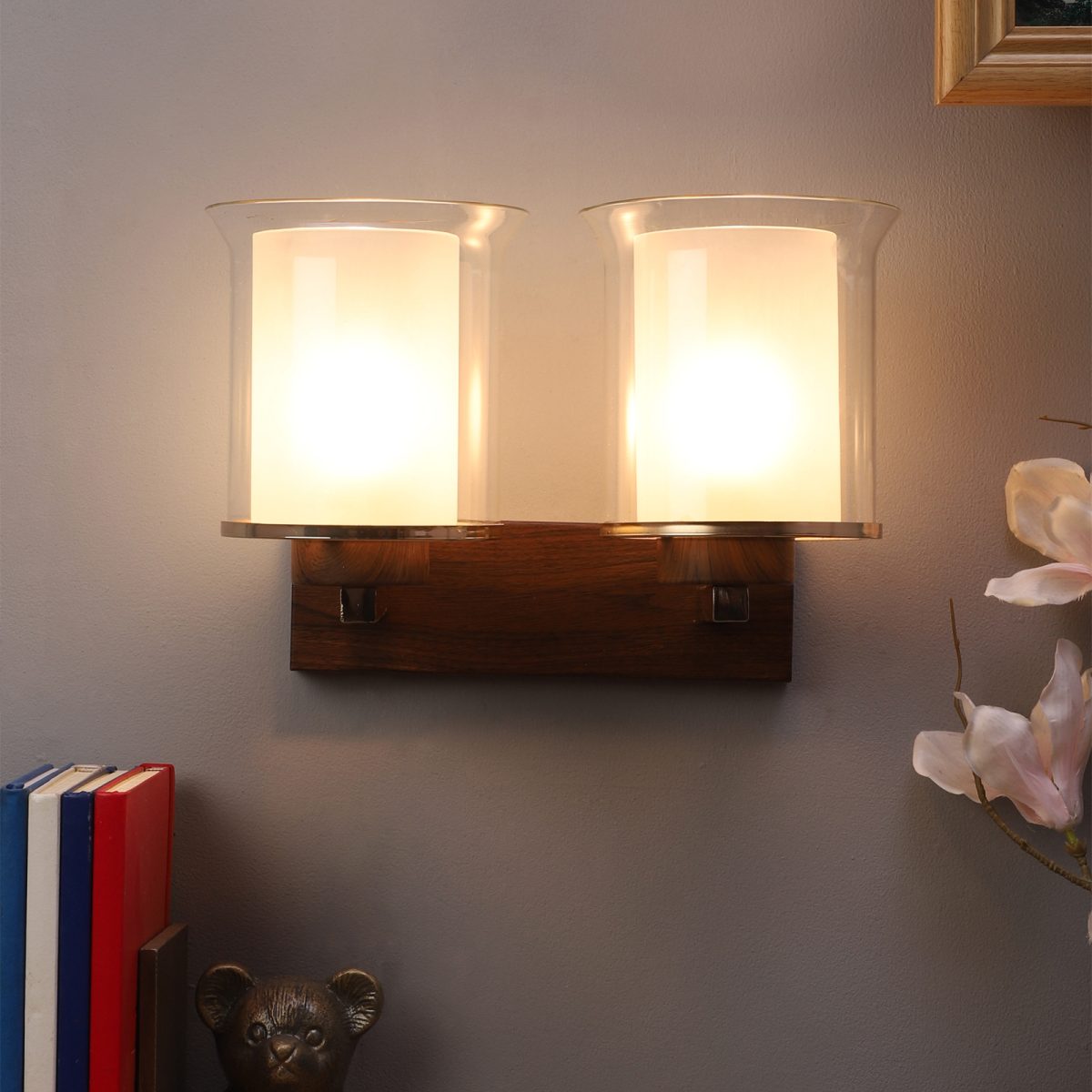 Dark brown (wood finish with grains) double wall light having cylindrical two layer glass made of mild steel. It is maintenance free., It is easy to remove glass and wash them. Comes with an E27 holder, only the change of lamp is required, which is available locally everywhere. Application includes both residential and commercial premises wherever it matches with your interiors. Matching single wall light code WL2536. LAMP NOT INCLUDED.
