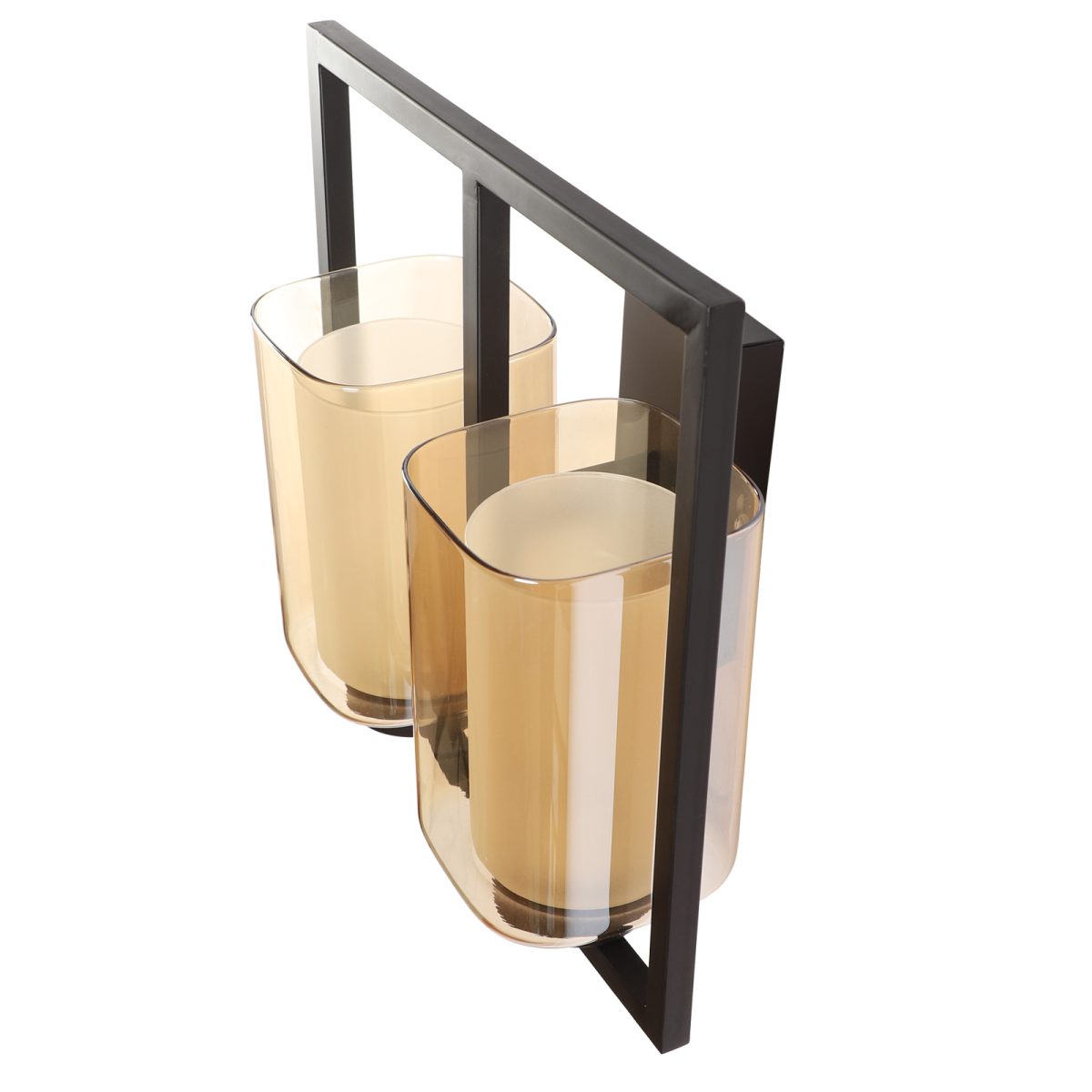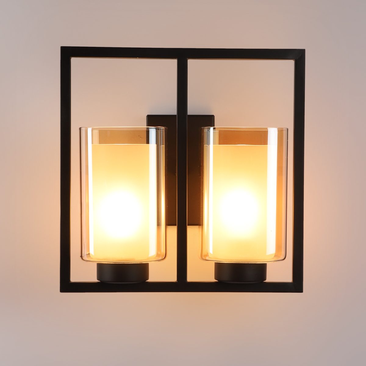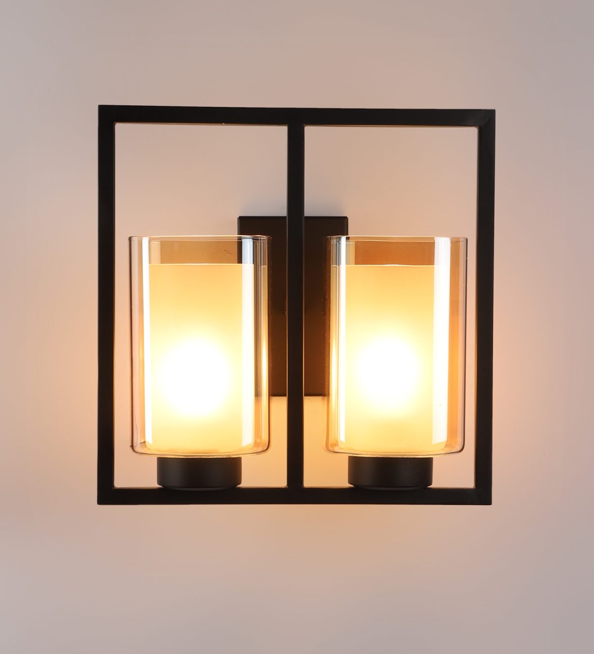 Dark brown finish double wall light having square long two layered champagne coloured glass, mounted on a designer frame It is maintenance free, it is easy to remove glass and wash it. Comes with an E27 holder, only the change of lamp is required, which is available locally everywhere. Application includes both residential and commercial premises wherever it matches with your interiors. Matching single wall light code WL2585. Can be customized as per requirement in case of bulk quantities. This along with its variants are the best selling products in our catalogue. Lamp not included.