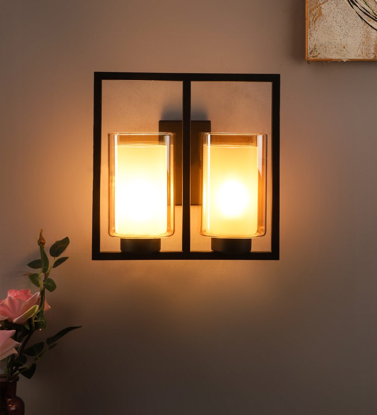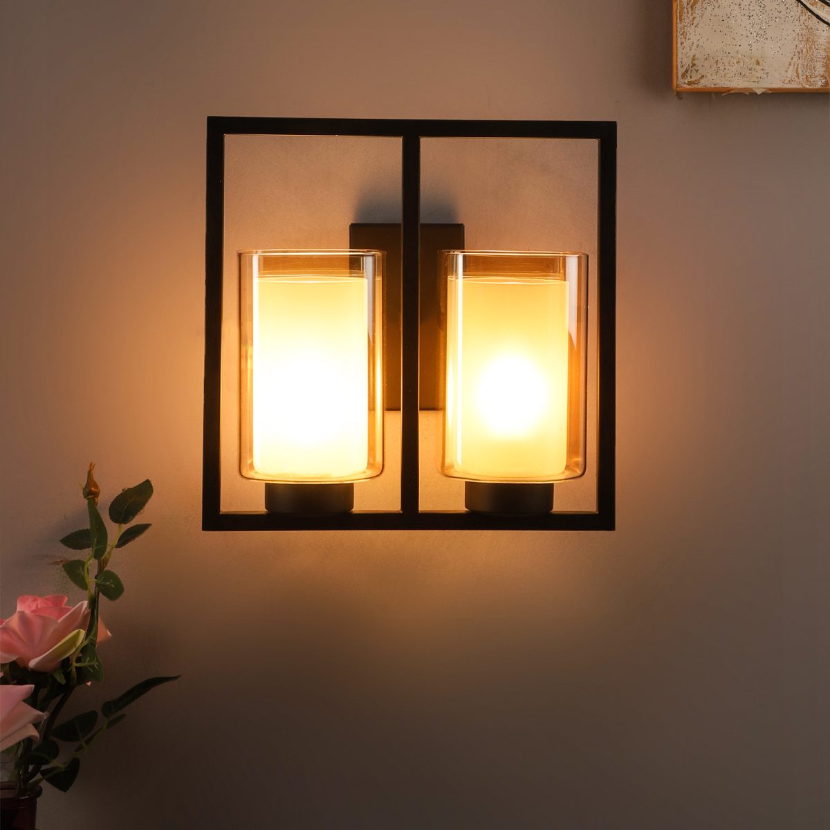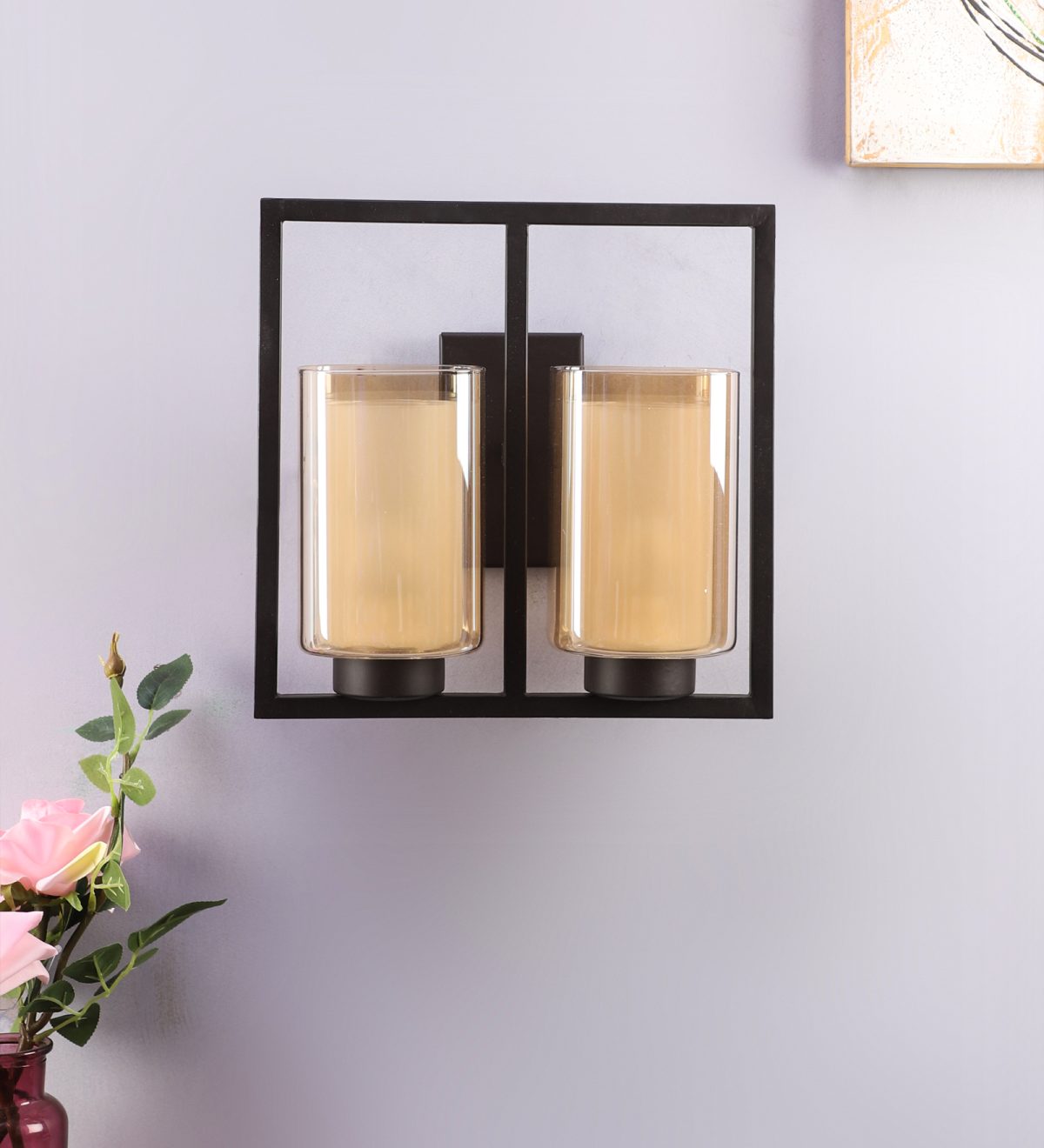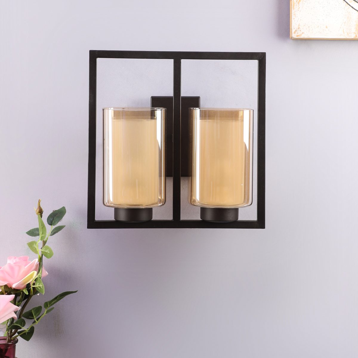 Dark brown finish double wall light having square long two layered champagne coloured glass, mounted on a designer frame It is maintenance free, it is easy to remove glass and wash it. Comes with an E27 holder, only the change of lamp is required, which is available locally everywhere. Application includes both residential and commercial premises wherever it matches with your interiors. Matching single wall light code WL2585. Can be customized as per requirement in case of bulk quantities. This along with its variants are the best selling products in our catalogue. Lamp not included.