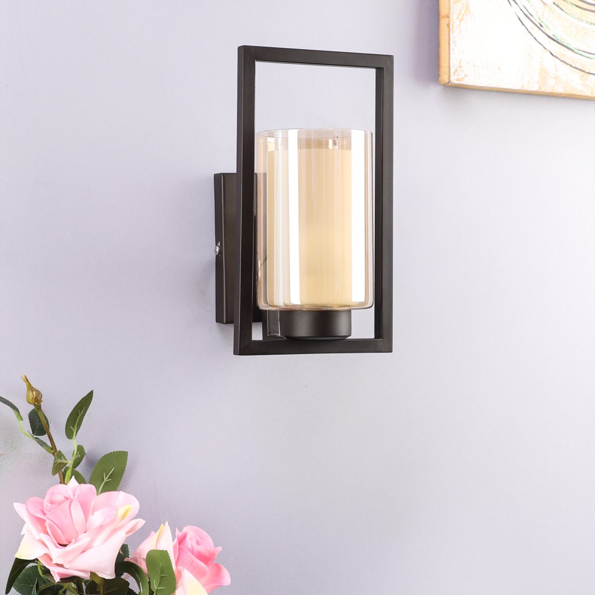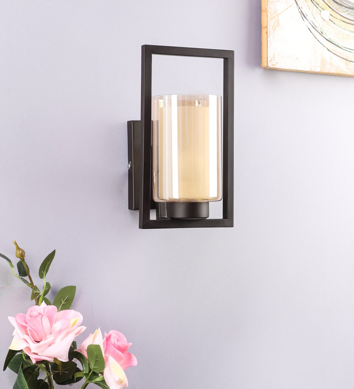 Dark brown finish single wall light having round cylinderical two layered champagne coloured glass, mounted on a designer frame It is maintenance free, it is easy to remove glass and wash it. Comes with an E27 holder, only the change of lamp is required, which is available locally everywhere. Application includes both residential and commercial premises wherever it matches with your interiors. Matching double wall light code WL2588. Can be customized as per requirement in case of bulk quantities. This along with its variants are the best selling products in our catalogue. Lamp not included.