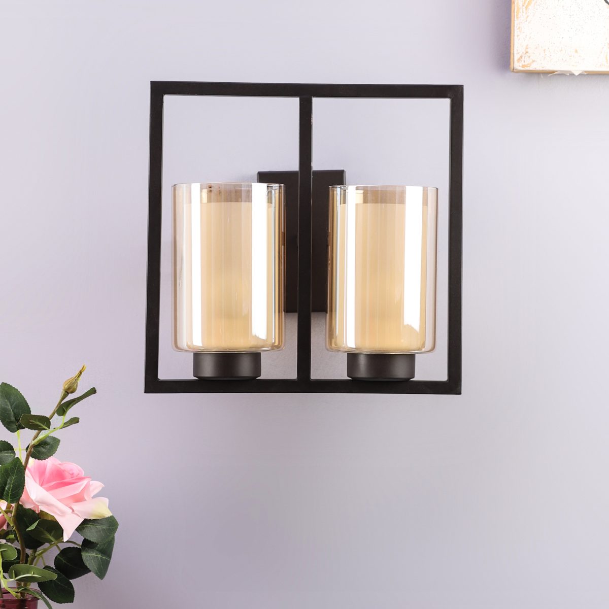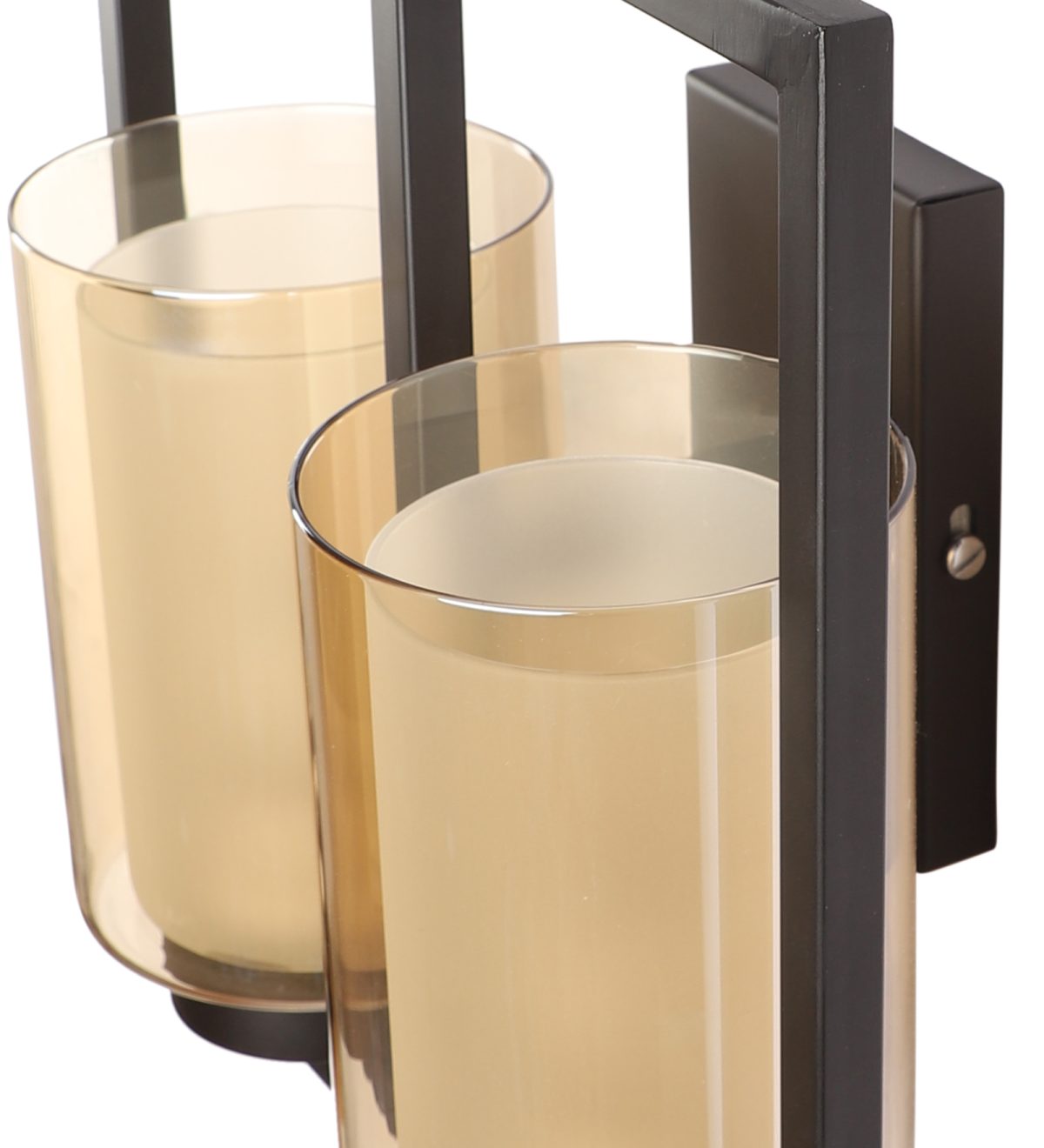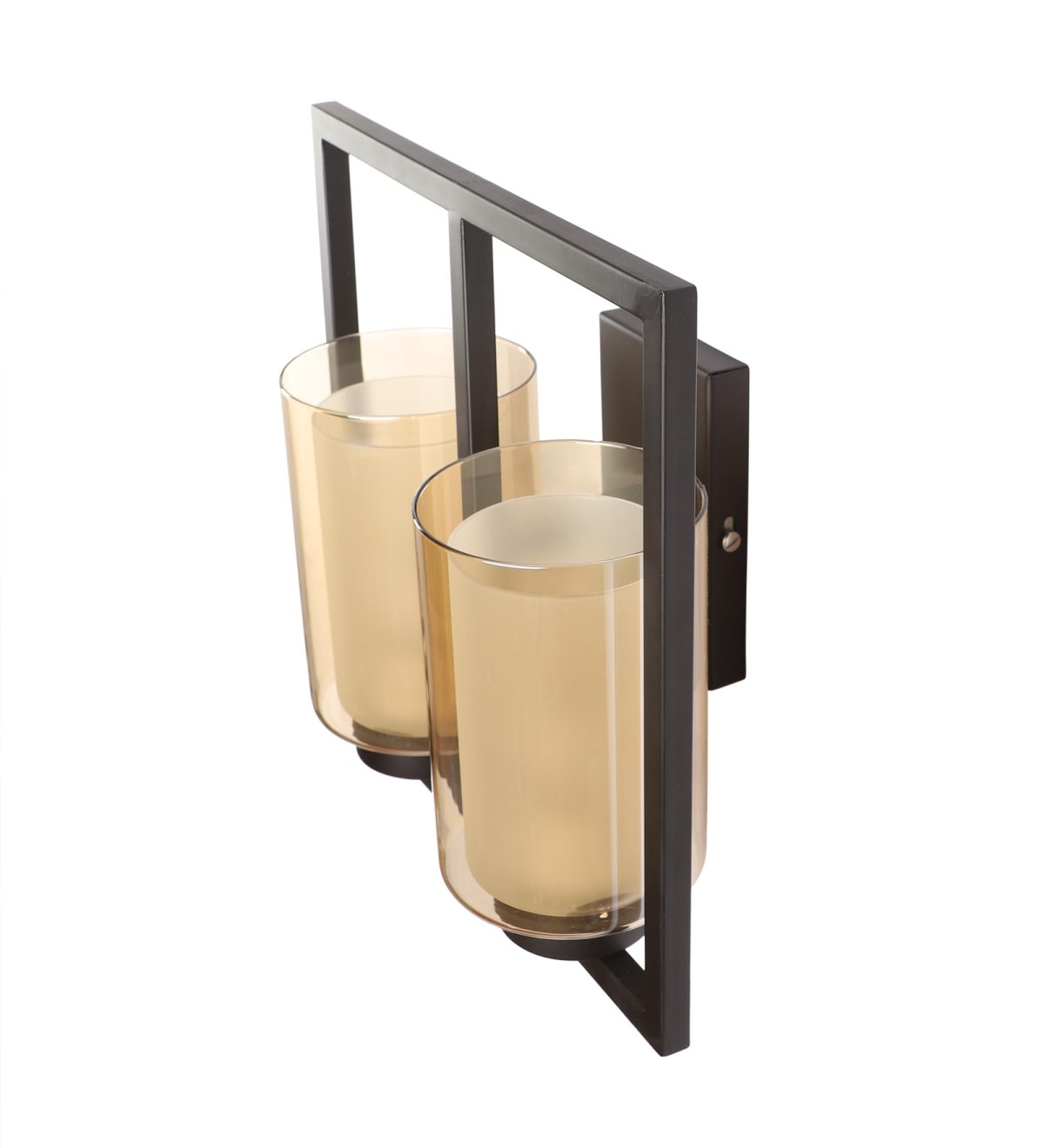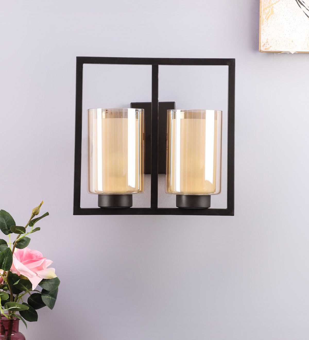 Dark brown finish double wall light having round ctlinderical two layered champagne coloured glass, mounted on a designer frame It is maintenance free, it is easy to remove glass and wash it. Comes with an E27 holder, only the change of lamp is required, which is available locally everywhere. Application includes both residential and commercial premises wherever it matches with your interiors. Matching single wall light code WL2587. Can be customized as per requirement in case of bulk quantities. This along with its variants are the best selling products in our catalogue. Lamp not included.