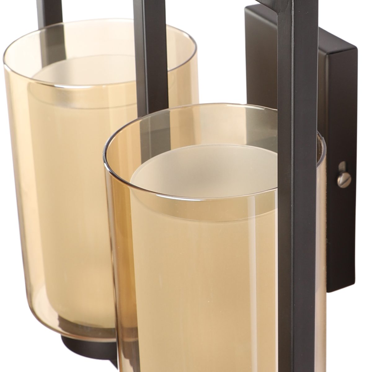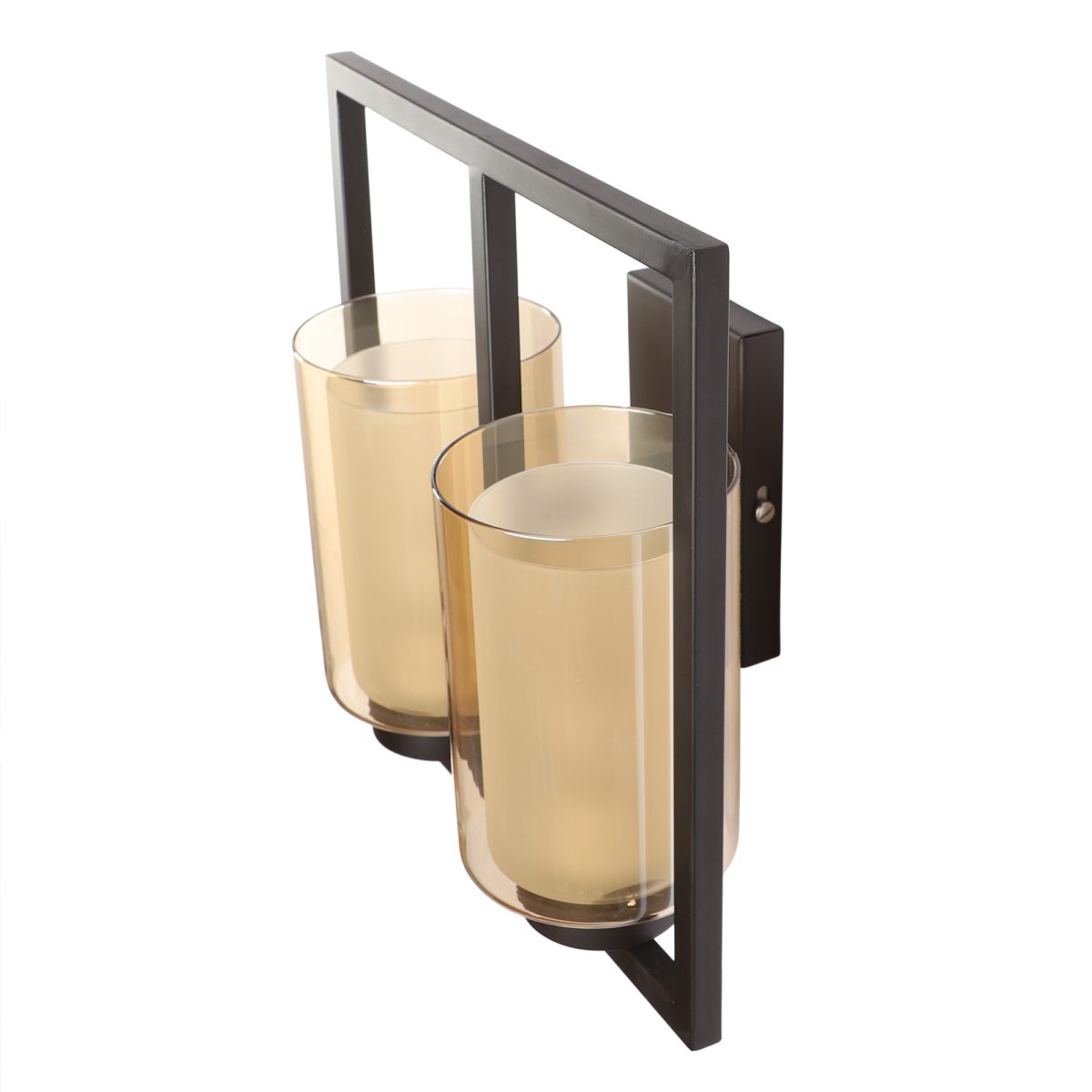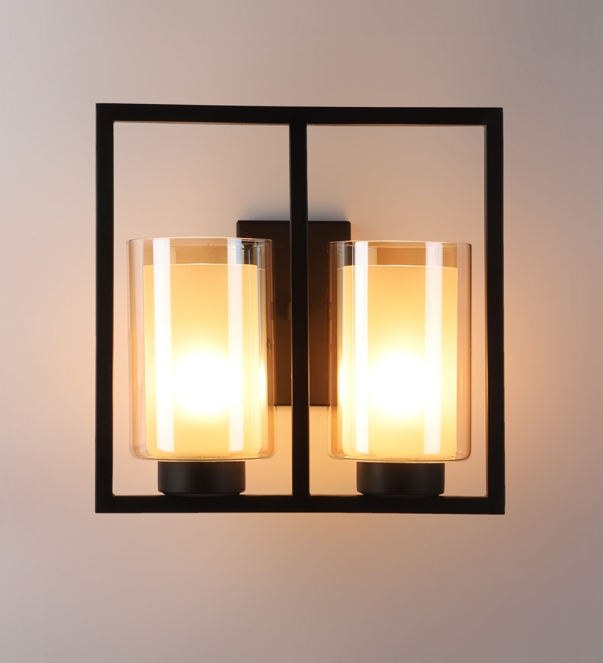 Dark brown finish double wall light having round ctlinderical two layered champagne coloured glass, mounted on a designer frame It is maintenance free, it is easy to remove glass and wash it. Comes with an E27 holder, only the change of lamp is required, which is available locally everywhere. Application includes both residential and commercial premises wherever it matches with your interiors. Matching single wall light code WL2587. Can be customized as per requirement in case of bulk quantities. This along with its variants are the best selling products in our catalogue. Lamp not included.