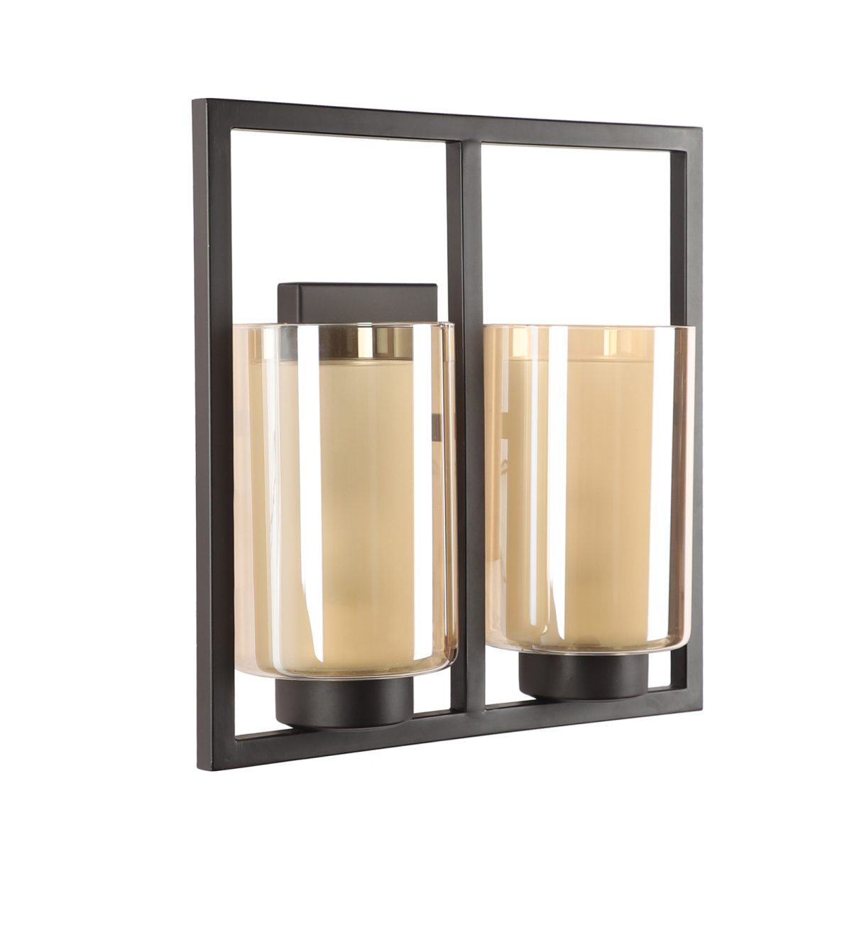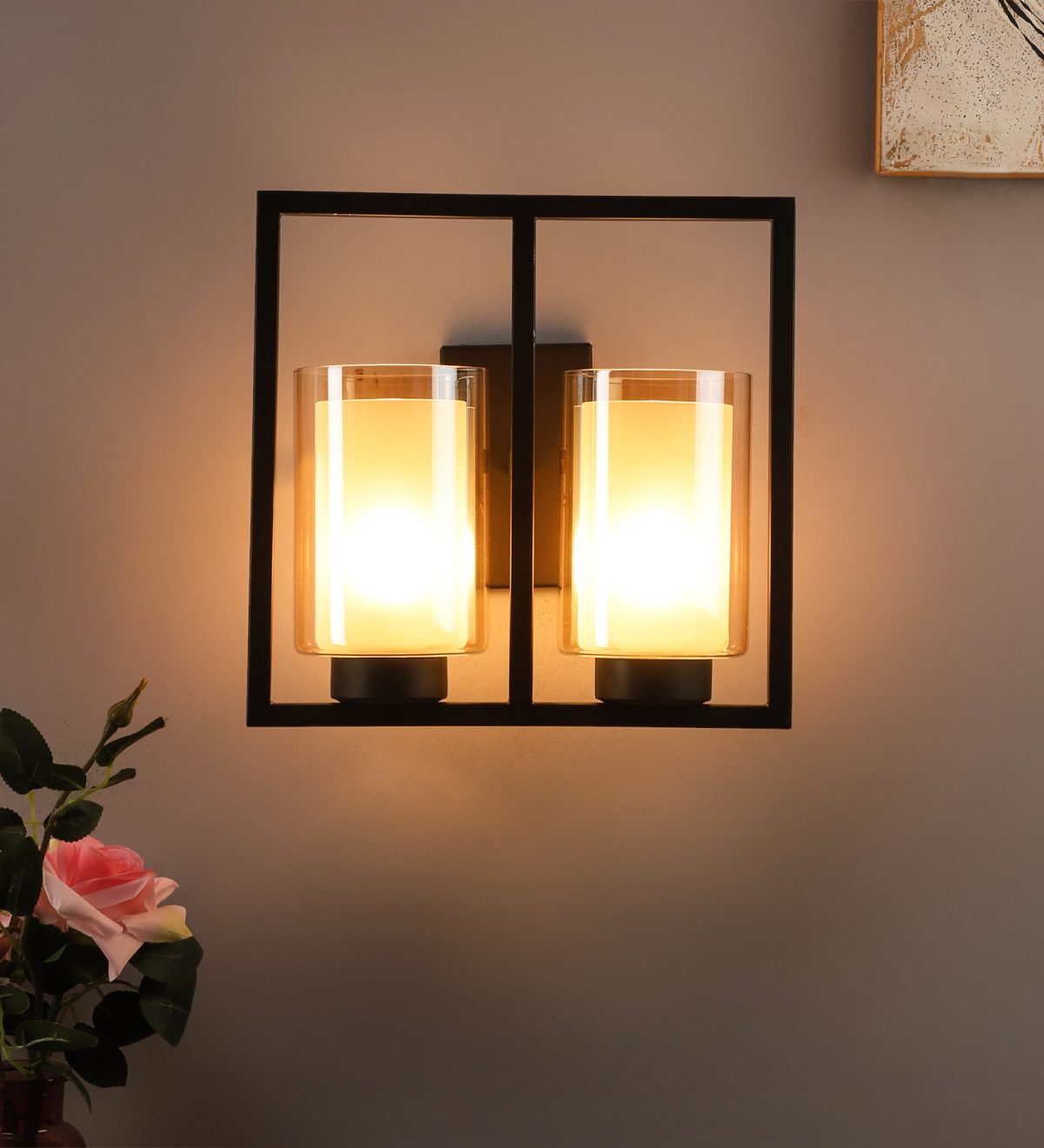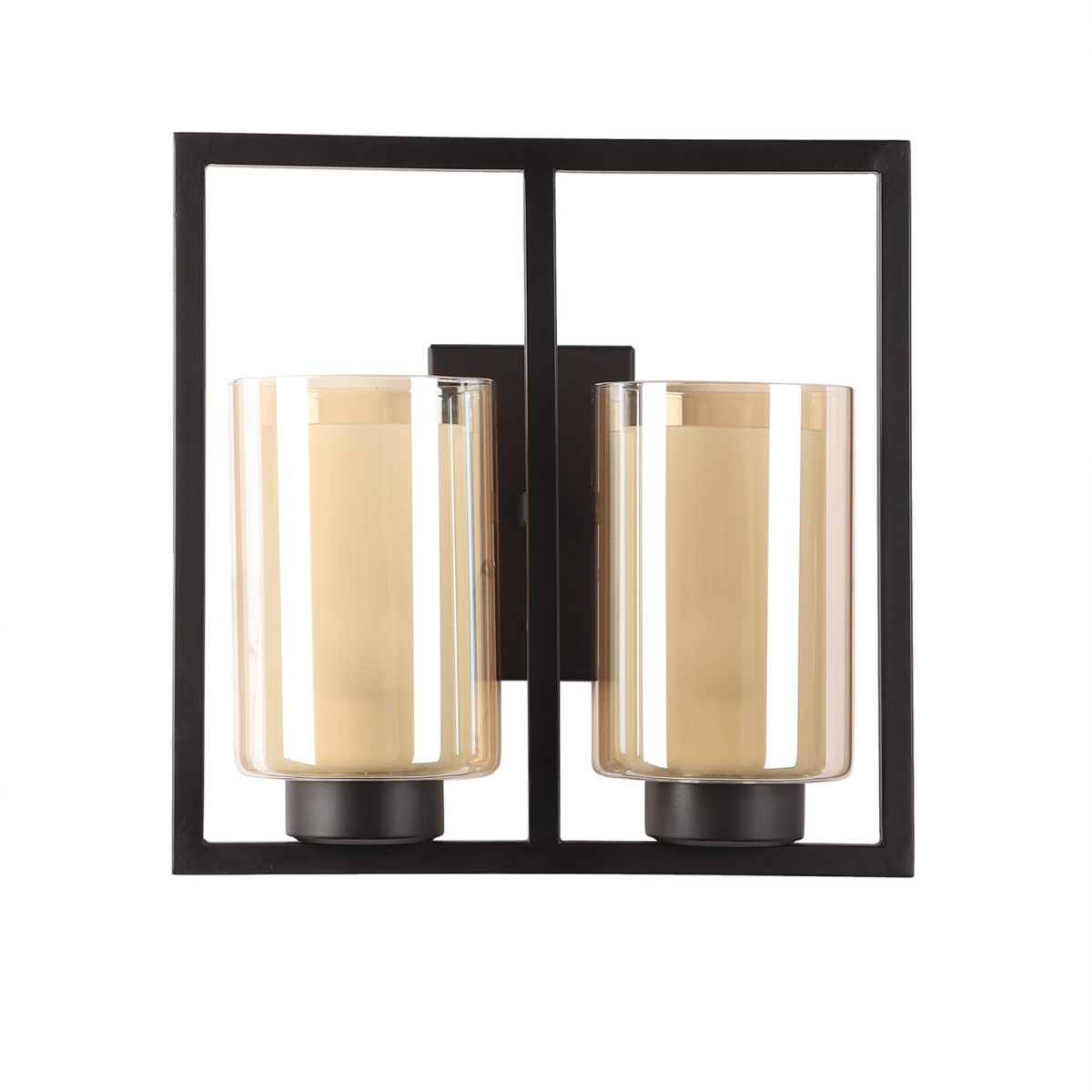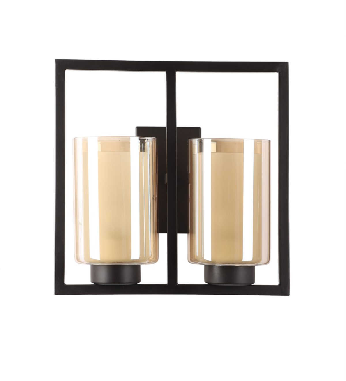 Dark brown finish double wall light having round ctlinderical two layered champagne coloured glass, mounted on a designer frame It is maintenance free, it is easy to remove glass and wash it. Comes with an E27 holder, only the change of lamp is required, which is available locally everywhere. Application includes both residential and commercial premises wherever it matches with your interiors. Matching single wall light code WL2587. Can be customized as per requirement in case of bulk quantities. This along with its variants are the best selling products in our catalogue. Lamp not included.