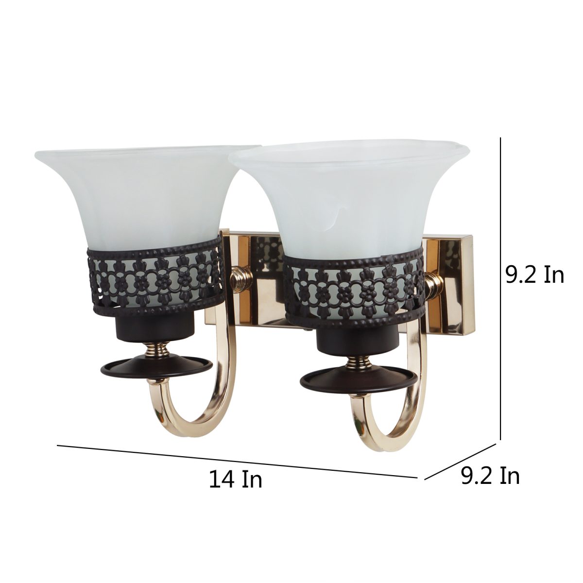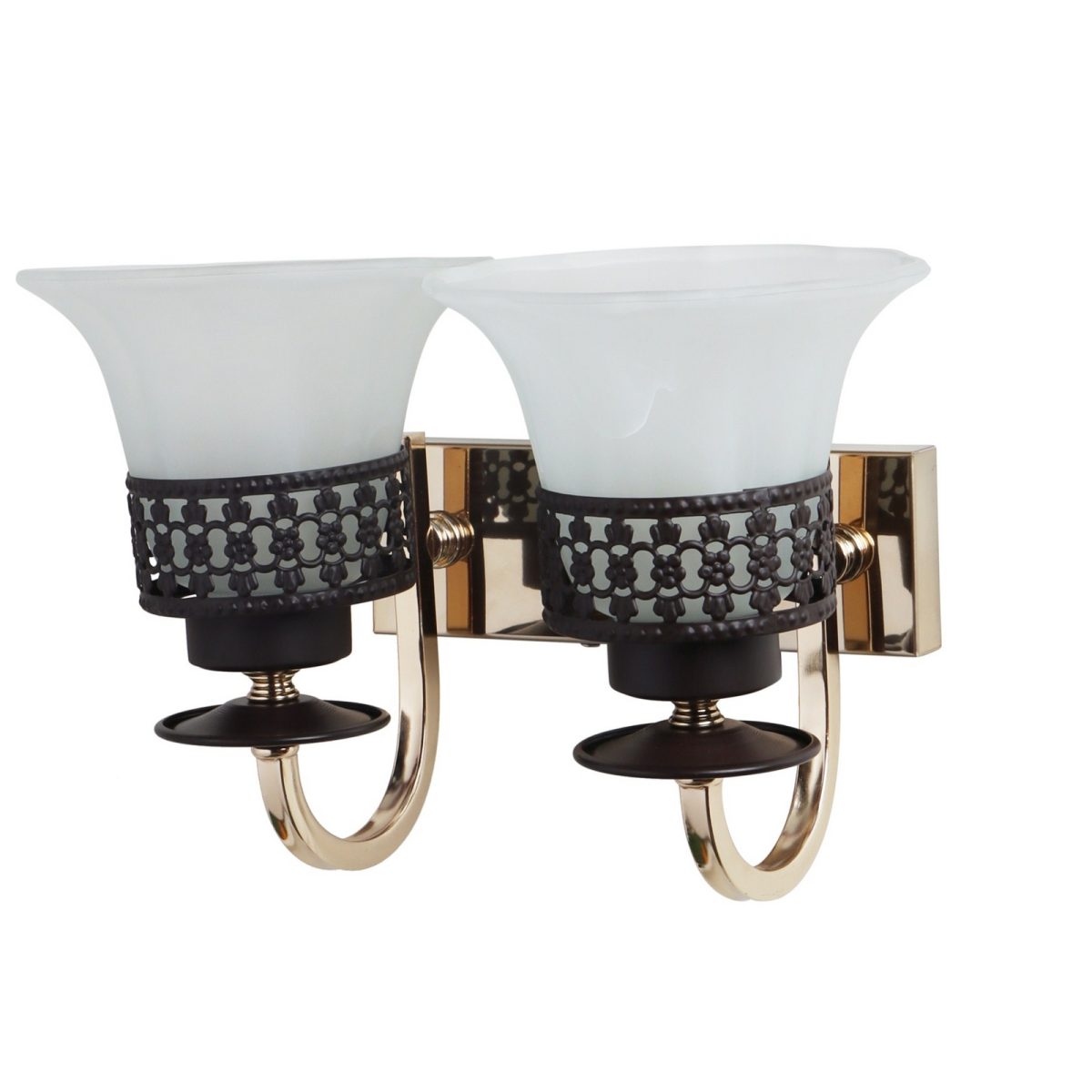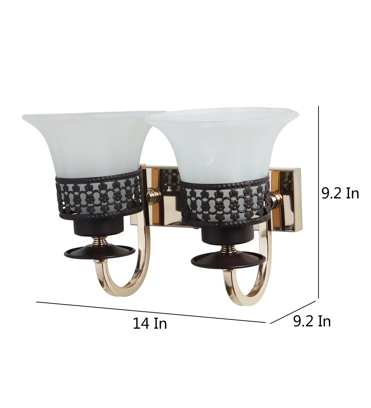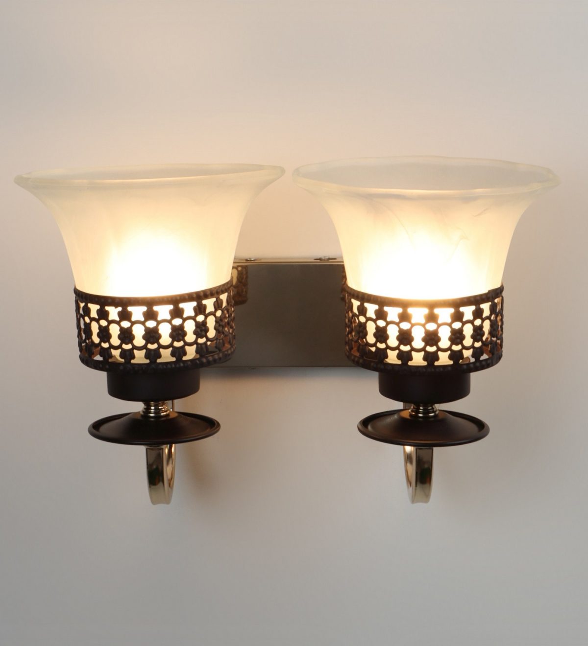 Brown, gold finish double wall light having round, cylindrical two layered champaign coloured glass. It is maintenance free, easy to remove glasses and wash them, comes with an E27 holder, only the change of lamp is required, which is available locally everywhere. Application includes both residential and commercial premises wherever it matches with your interiors. Matching single wall light code – WL2699. Can be customized as per requirement in case of bulk quantity, LAMP NOT INCLUDED.