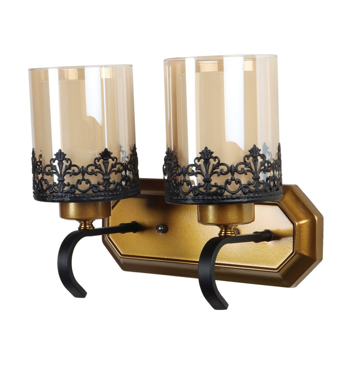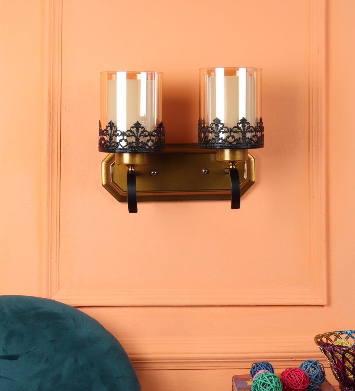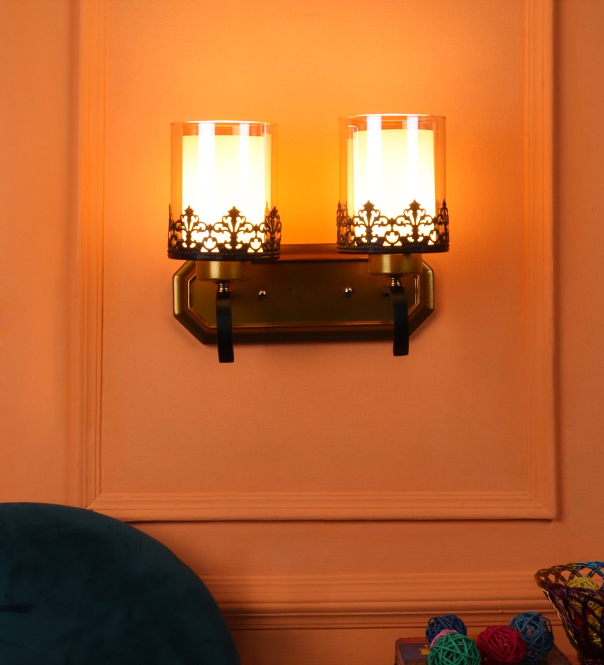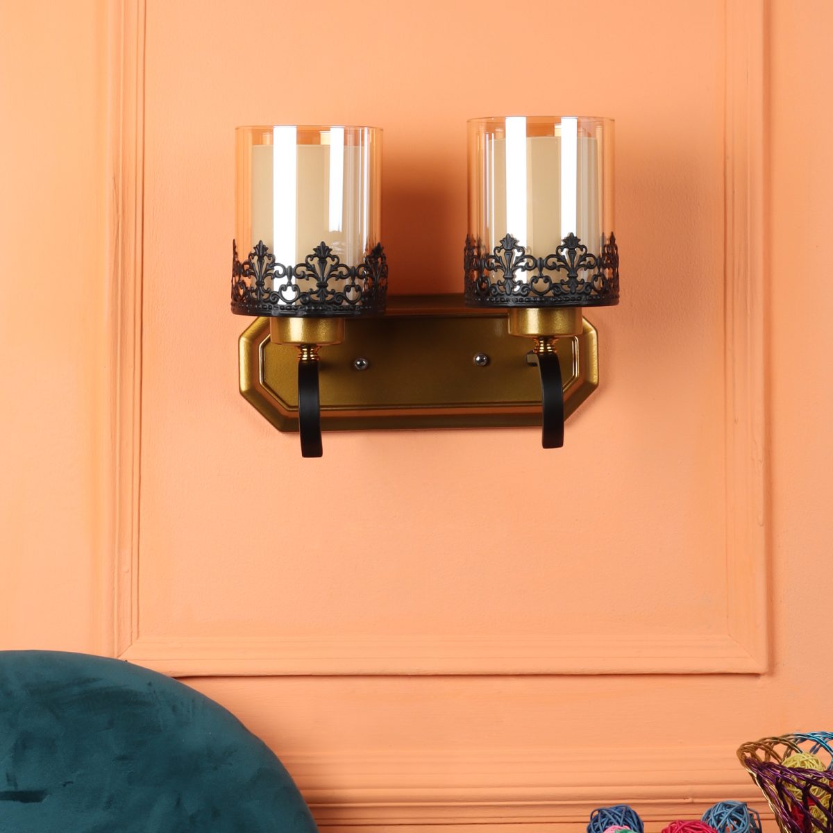 Antique gold, brown finish double wall light having round, cylindrical two layered champaign coloured glass. It is maintenance free, easy to remove glass and wash them, comes with an E27 holder, only the change of lamp is required, which is available locally everywhere. Application includes both residential and commercial premises wherever it matches with your interiors. Matching single wall light code – WL2729. Can be customized as per requirement in case of bulk quantity, LAMP NOT INCLUDED.